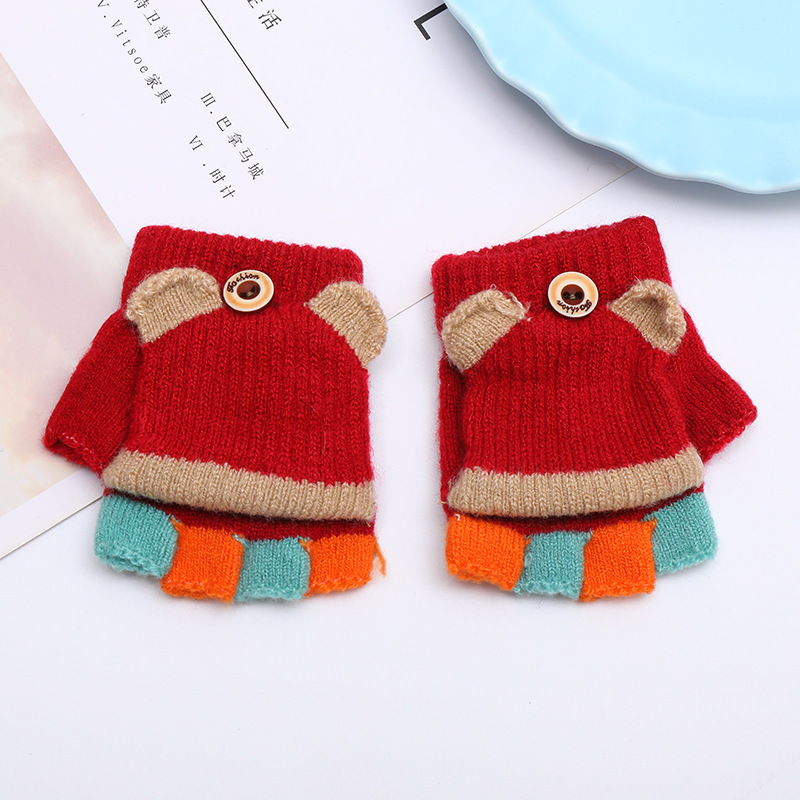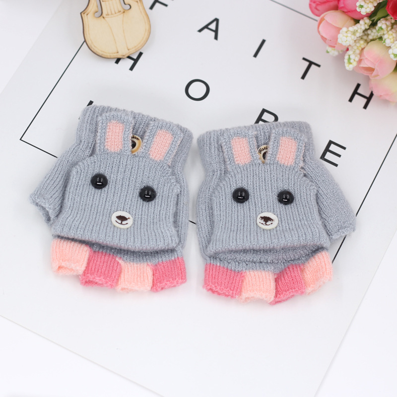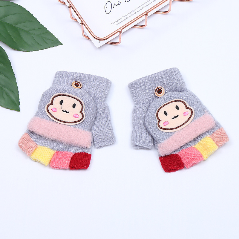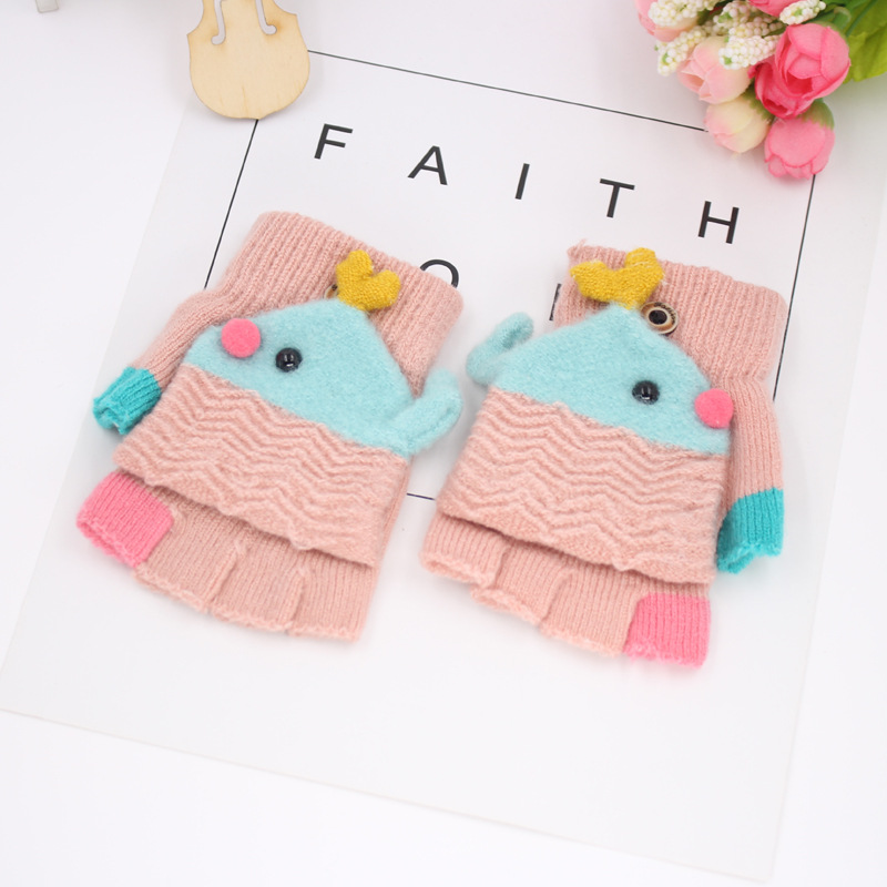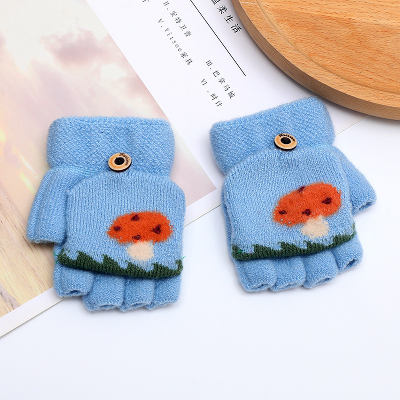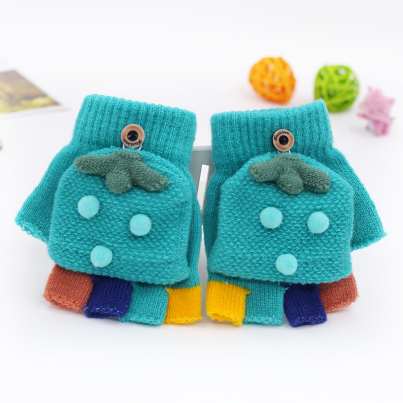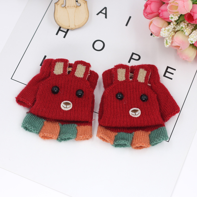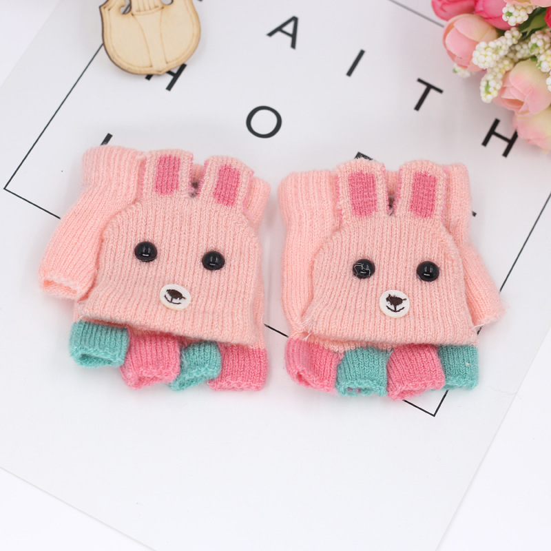 가을과 겨울 0-3 세 아기 장갑 뒤집기 아기 유아 어린이 절반 손가락 니트 따뜻한 귀여운