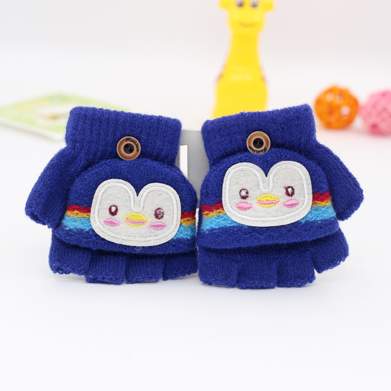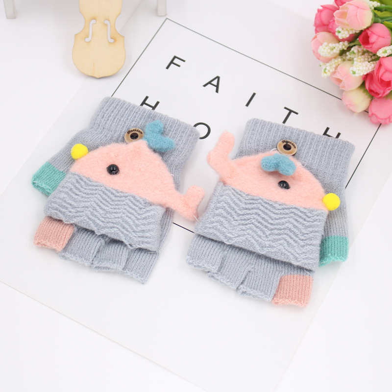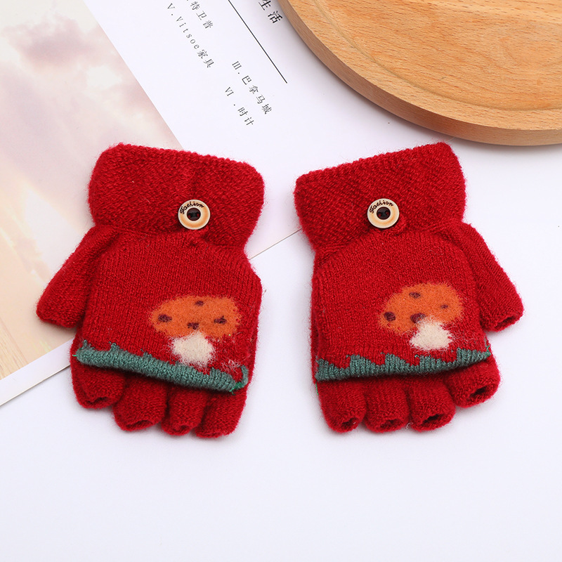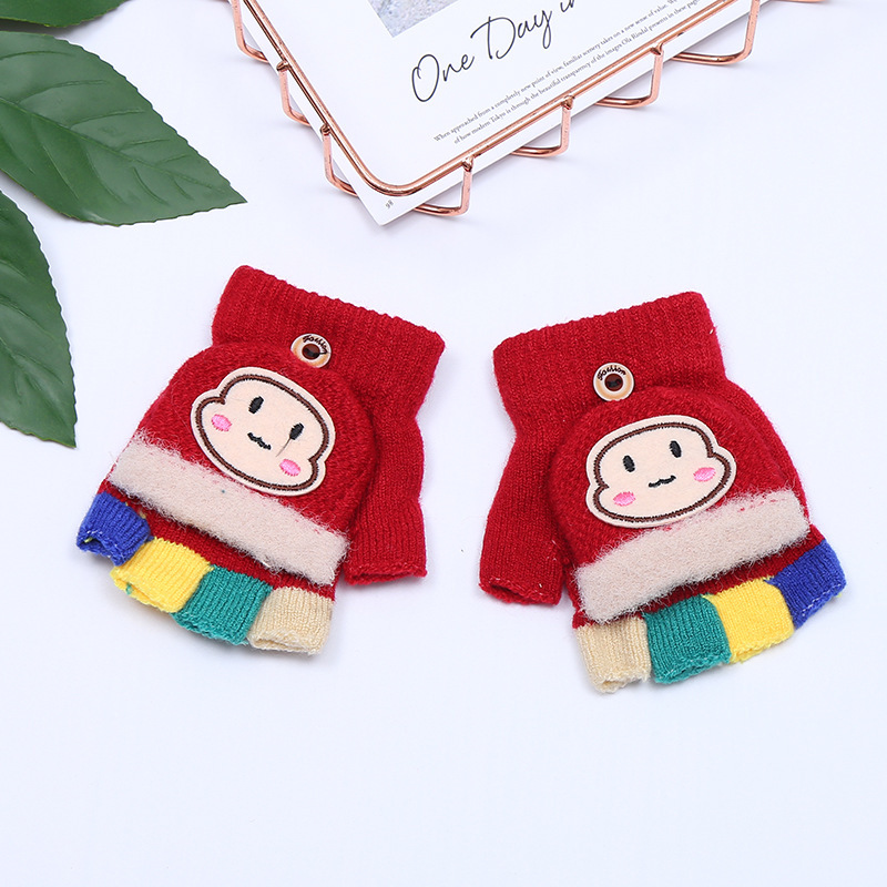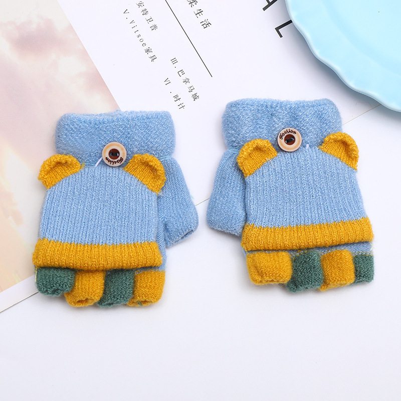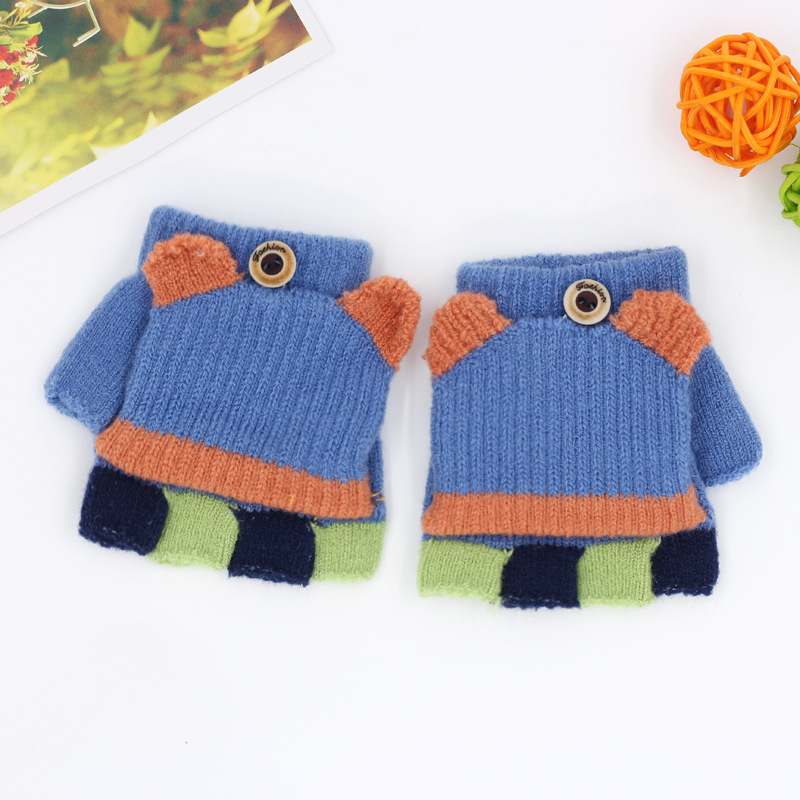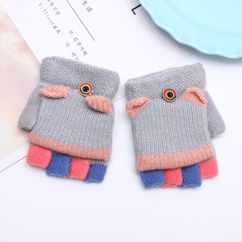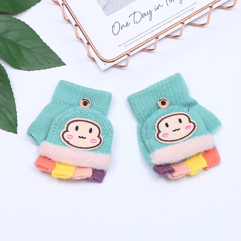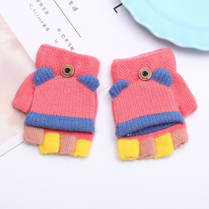 가을과 겨울 0-3 세 아기 장갑 뒤집기 아기 유아 어린이 절반 손가락 니트 따뜻한 귀여운