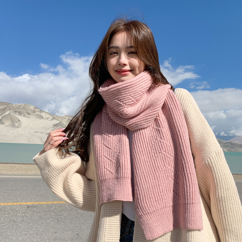 새로운 패션 스카프 여성용 겨울 모든 경기 학생을위한 한국식 단색 다이아몬드 격자 무늬 니트 모직 스카프