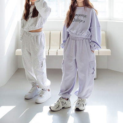 한국식 Ins Boys and Girls 가을 및 겨울 새 스포츠 세트 서양식 편지 인쇄 트랩 캐주얼 투피스 세트