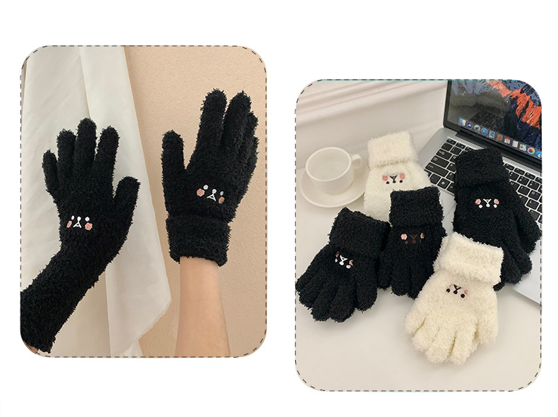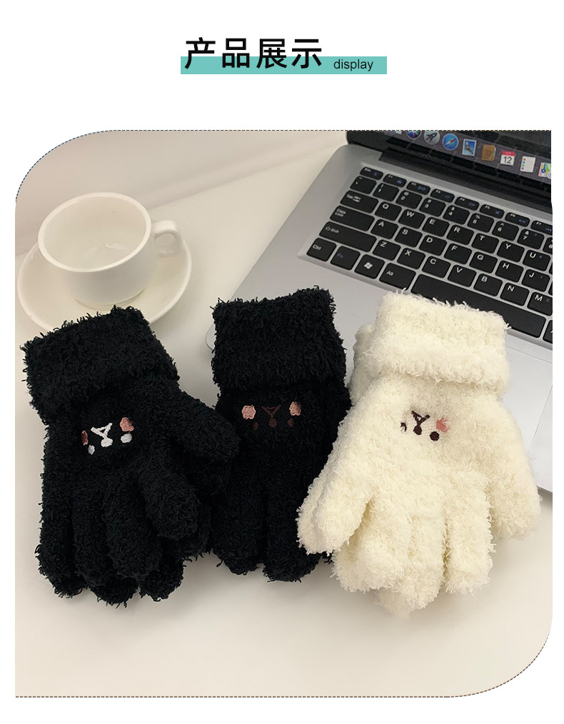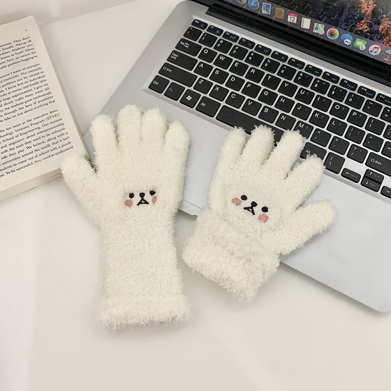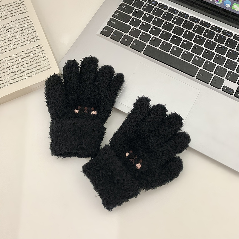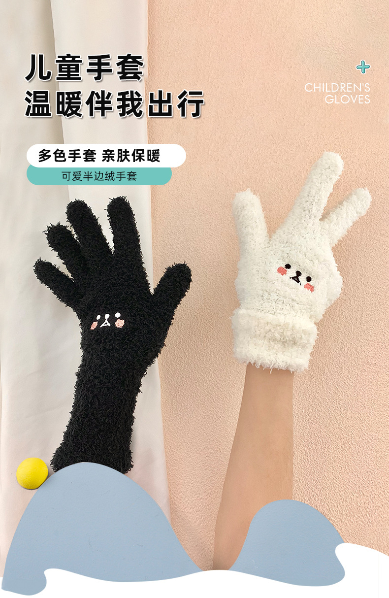 일본과 한국 어린이 반 벨벳 장갑 겨울 두꺼운 귀여운 자수 홍당무 곰 따뜻한 손가락 장갑 도매