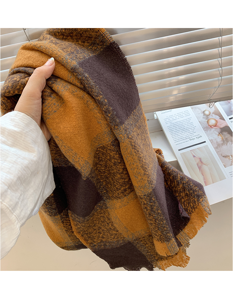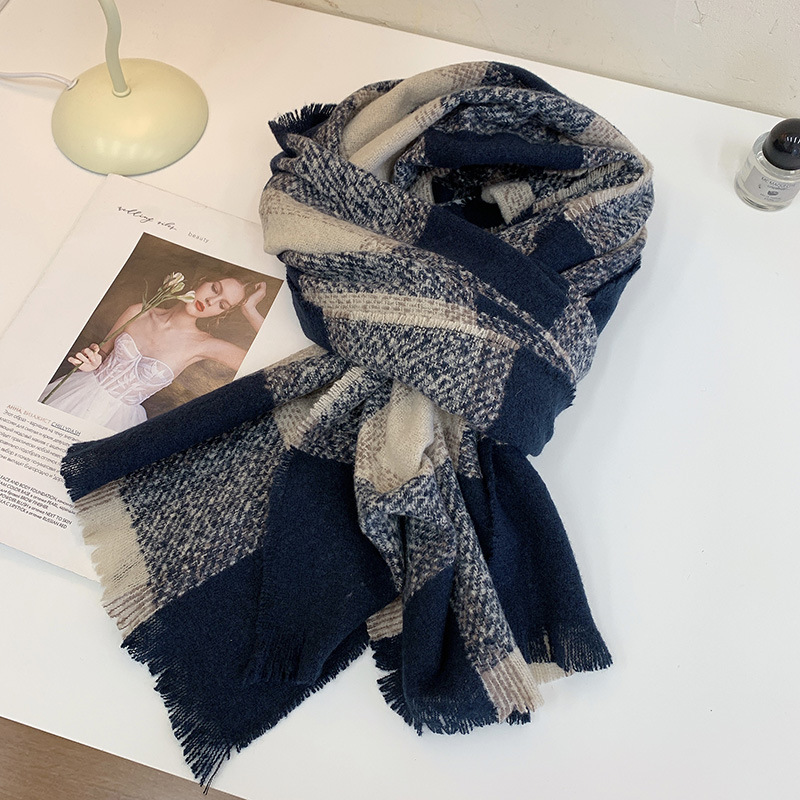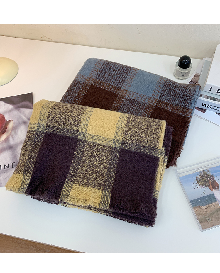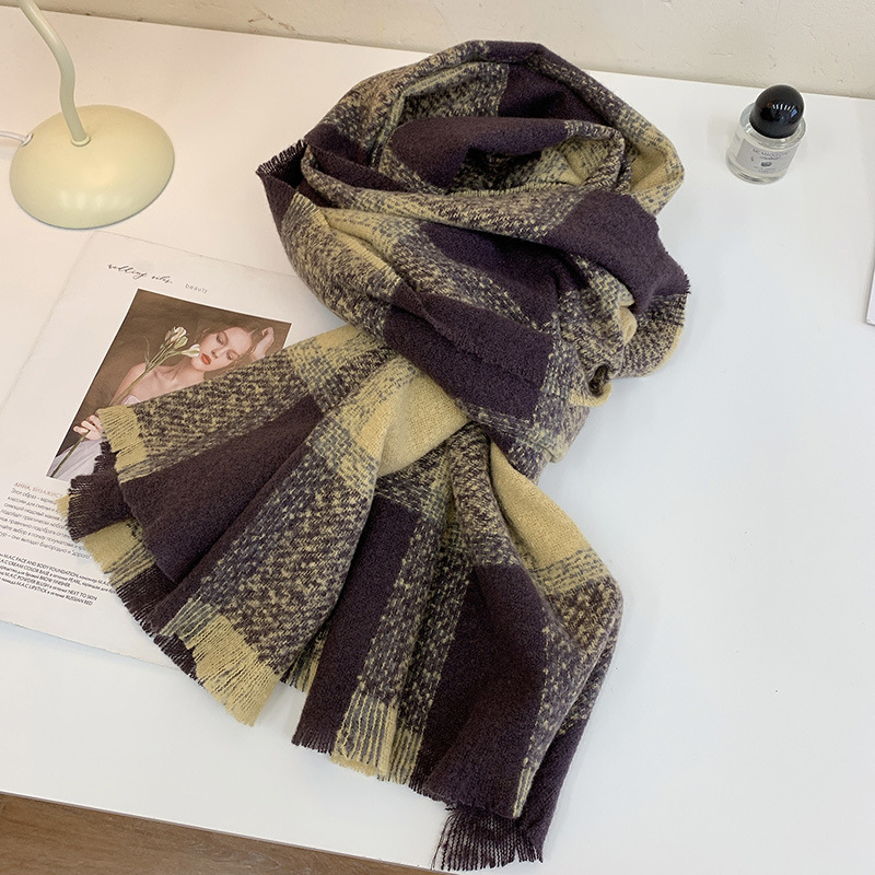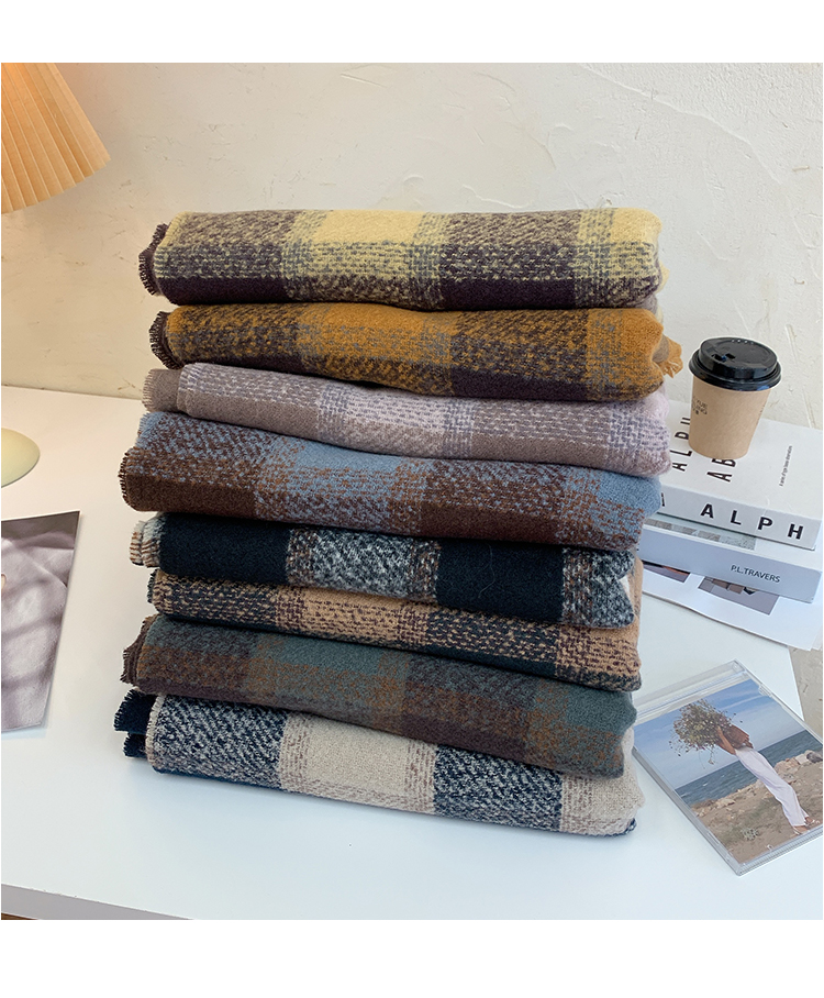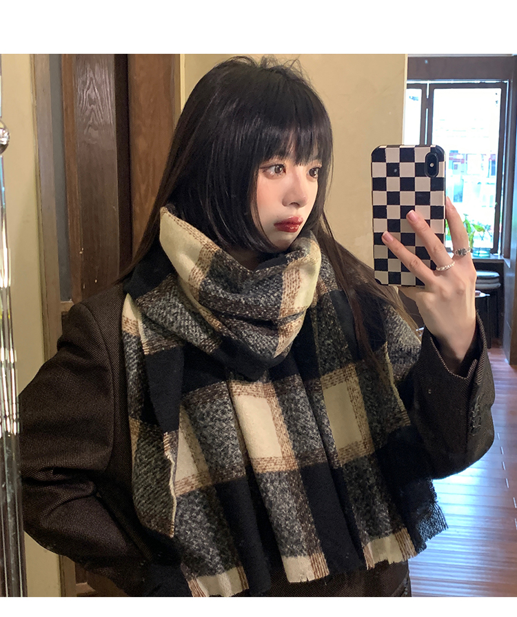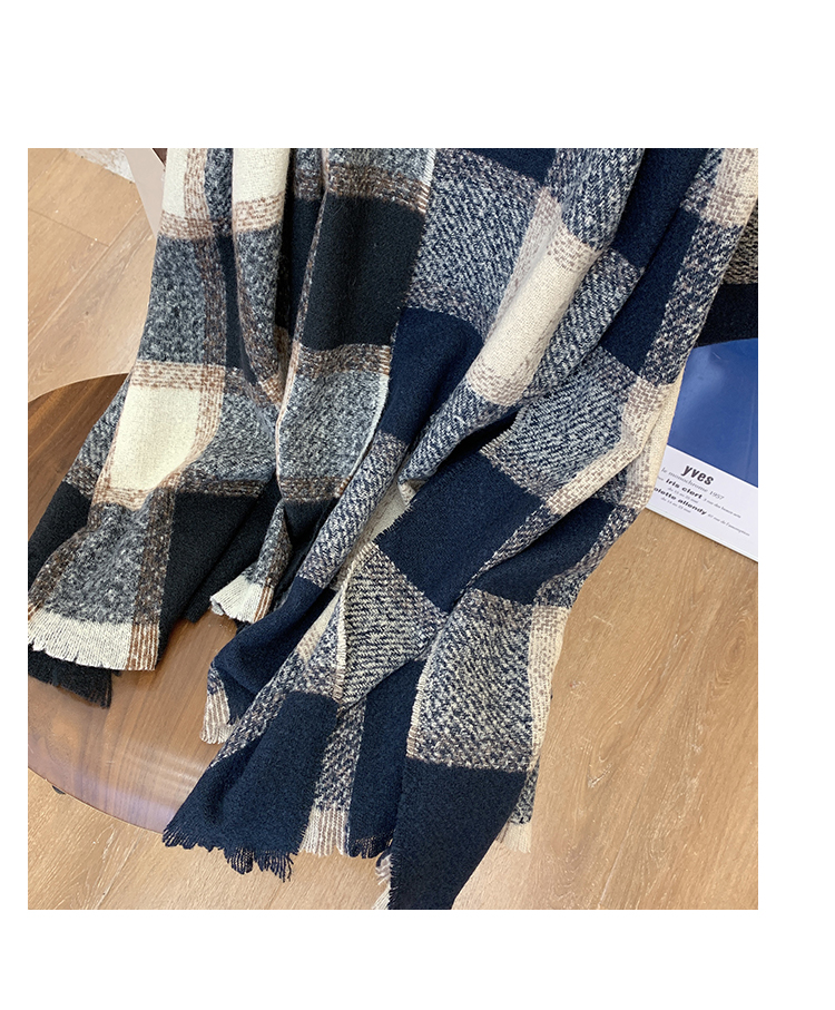 스카프 여성용 겨울 우아한 모든 매치 일본식 격자 무늬 캐시미어 숄 가을과 겨울 학생 따뜻한 두꺼운 스카프 남성 패션