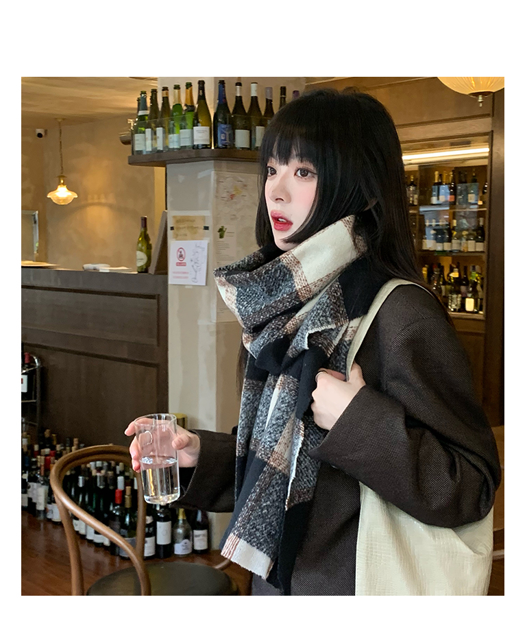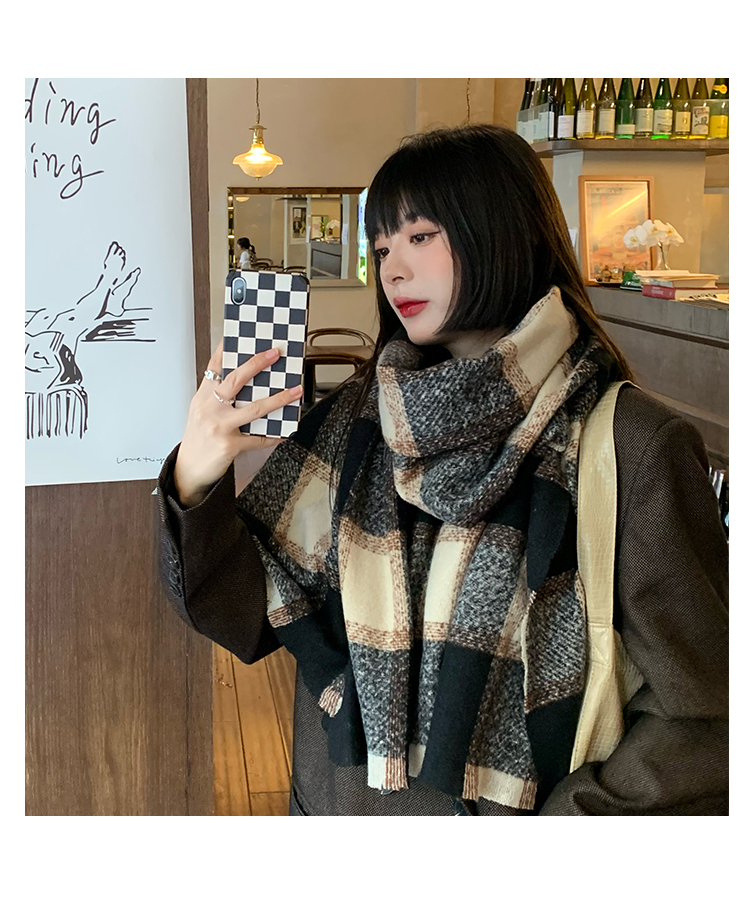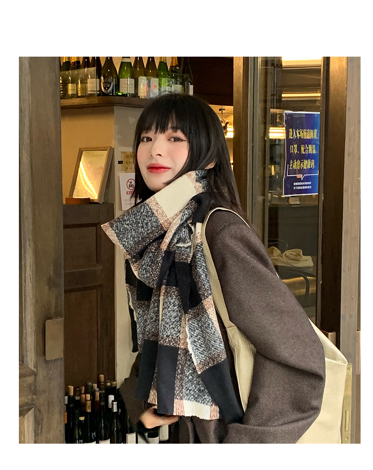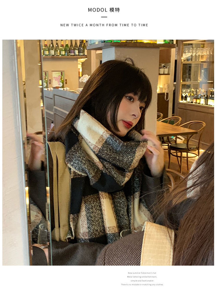 스카프 여성용 겨울 우아한 모든 매치 일본식 격자 무늬 캐시미어 숄 가을과 겨울 학생 따뜻한 두꺼운 스카프 남성 패션스토어 가기