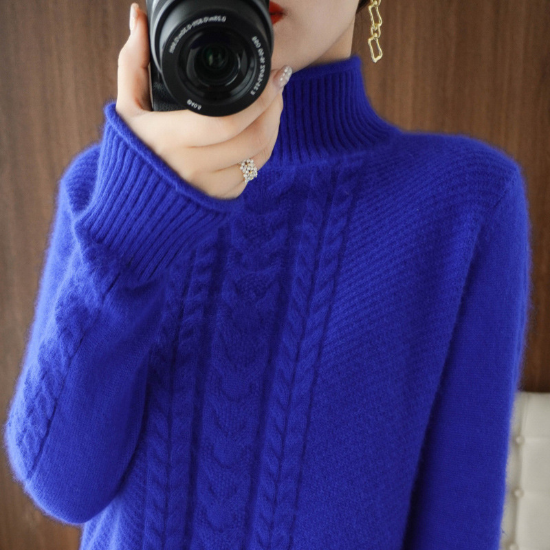 2024 가을 겨울 신상 하프 터틀넥 니트 여성용 두꺼운 루즈핏 슬림 니트 베이스 셔츠 스웨터 트렌디스토어 가기