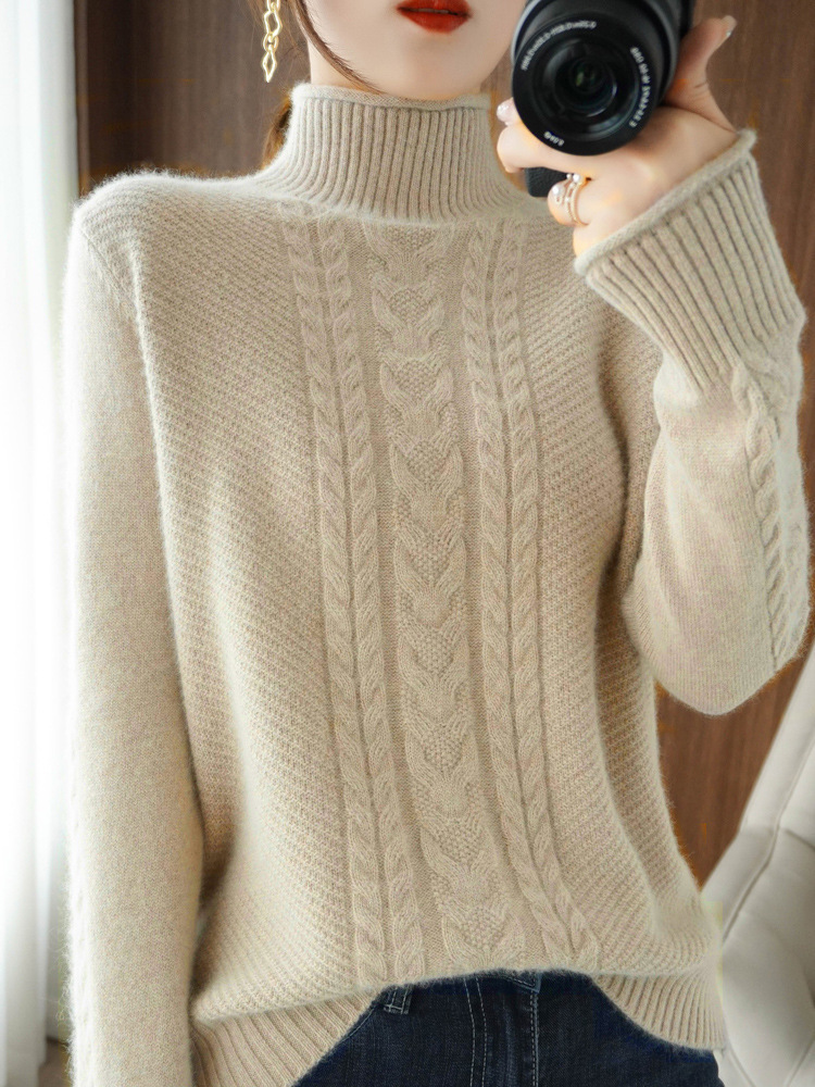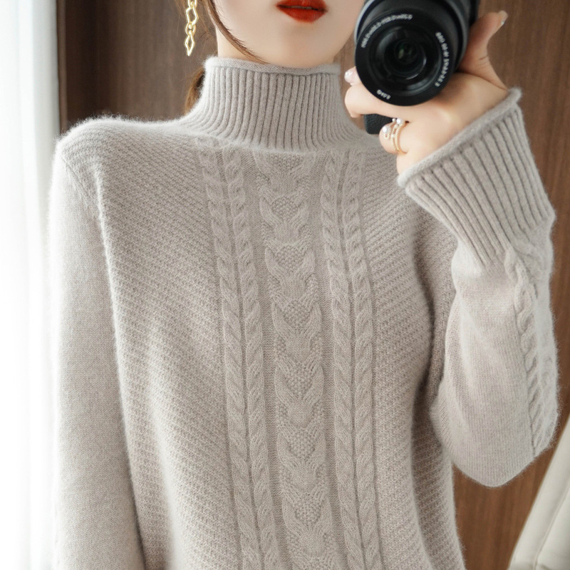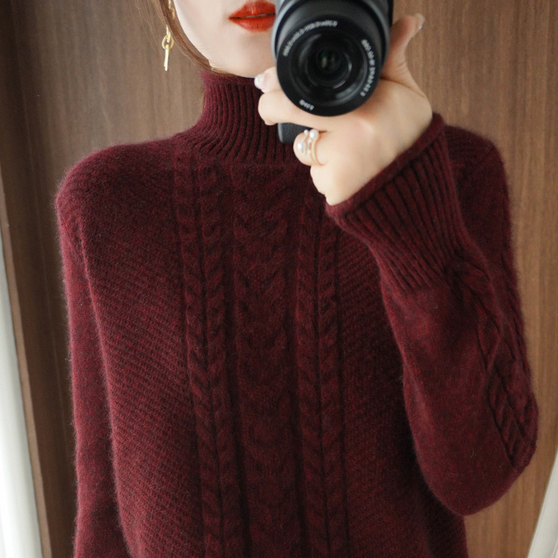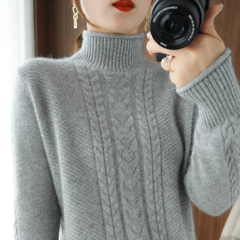 2024 가을 겨울 신상 하프 터틀넥 니트 여성용 두꺼운 루즈핏 슬림 니트 베이스 셔츠 스웨터 트렌디