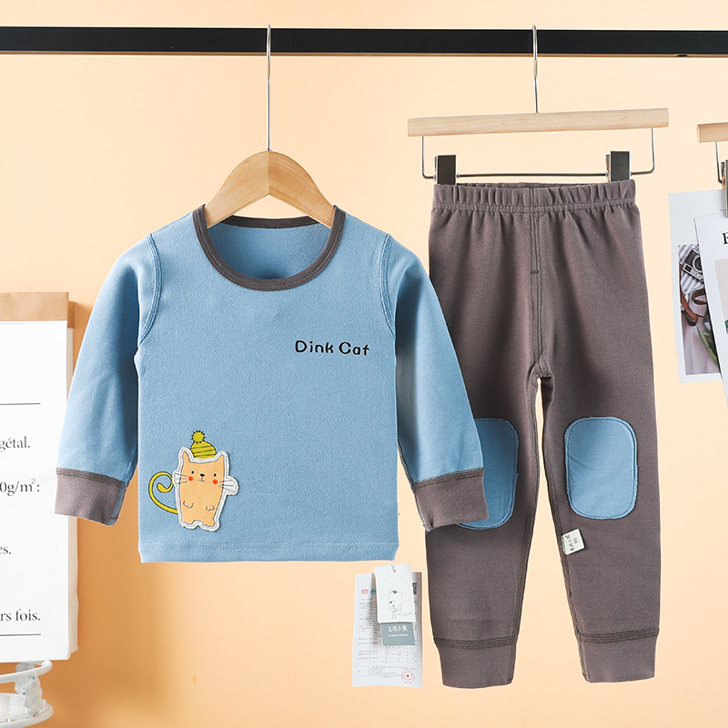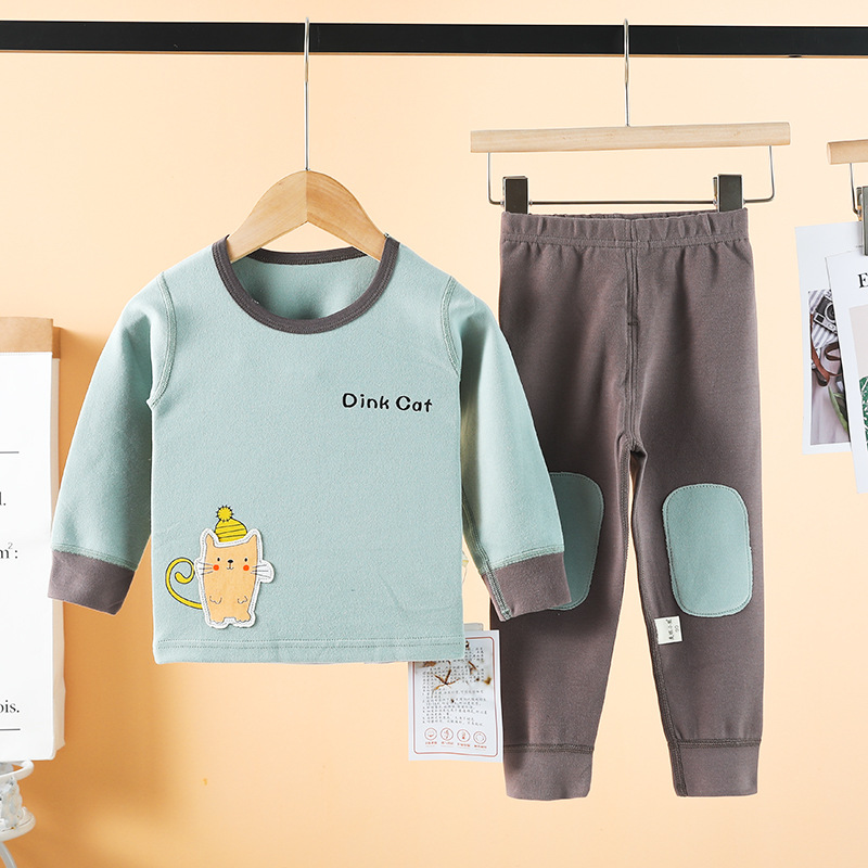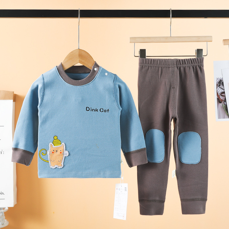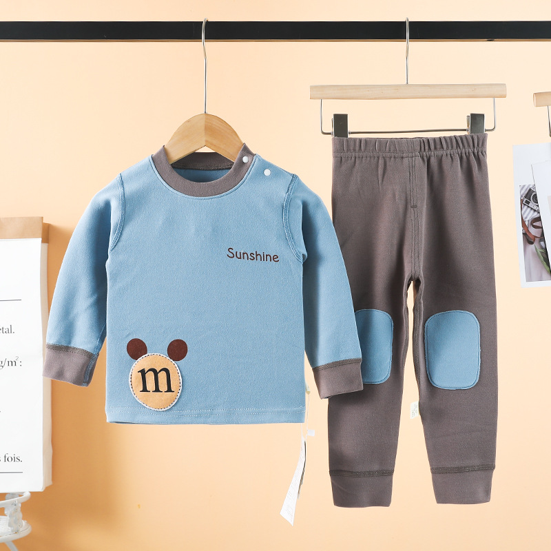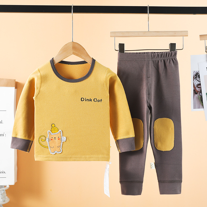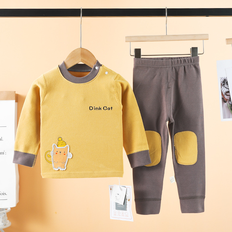 뼈없는 어린이 가을 옷과 바지 세트 시롱 남아 열 속옷 면 두꺼운 여아 아기 라인 옷 가을과 겨울