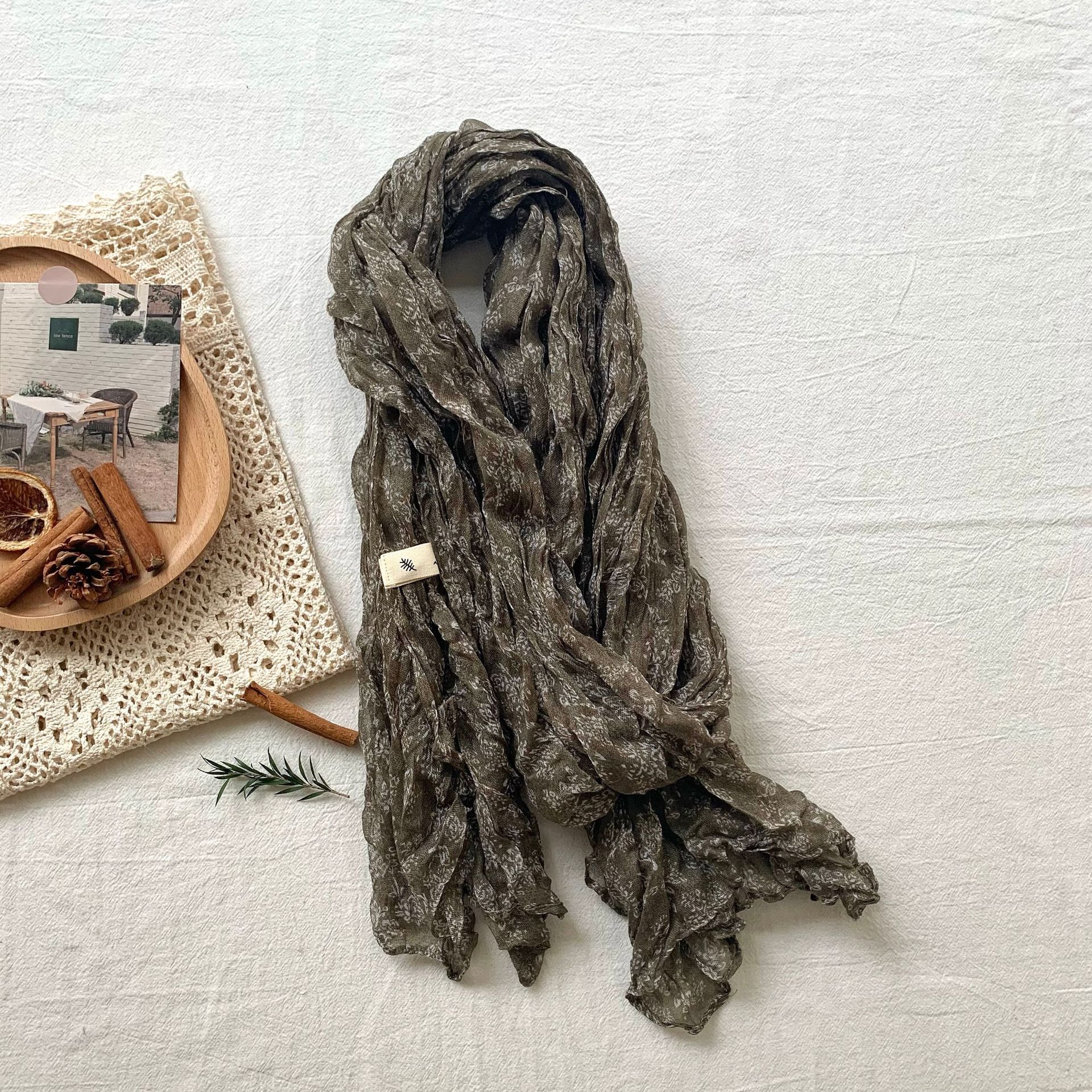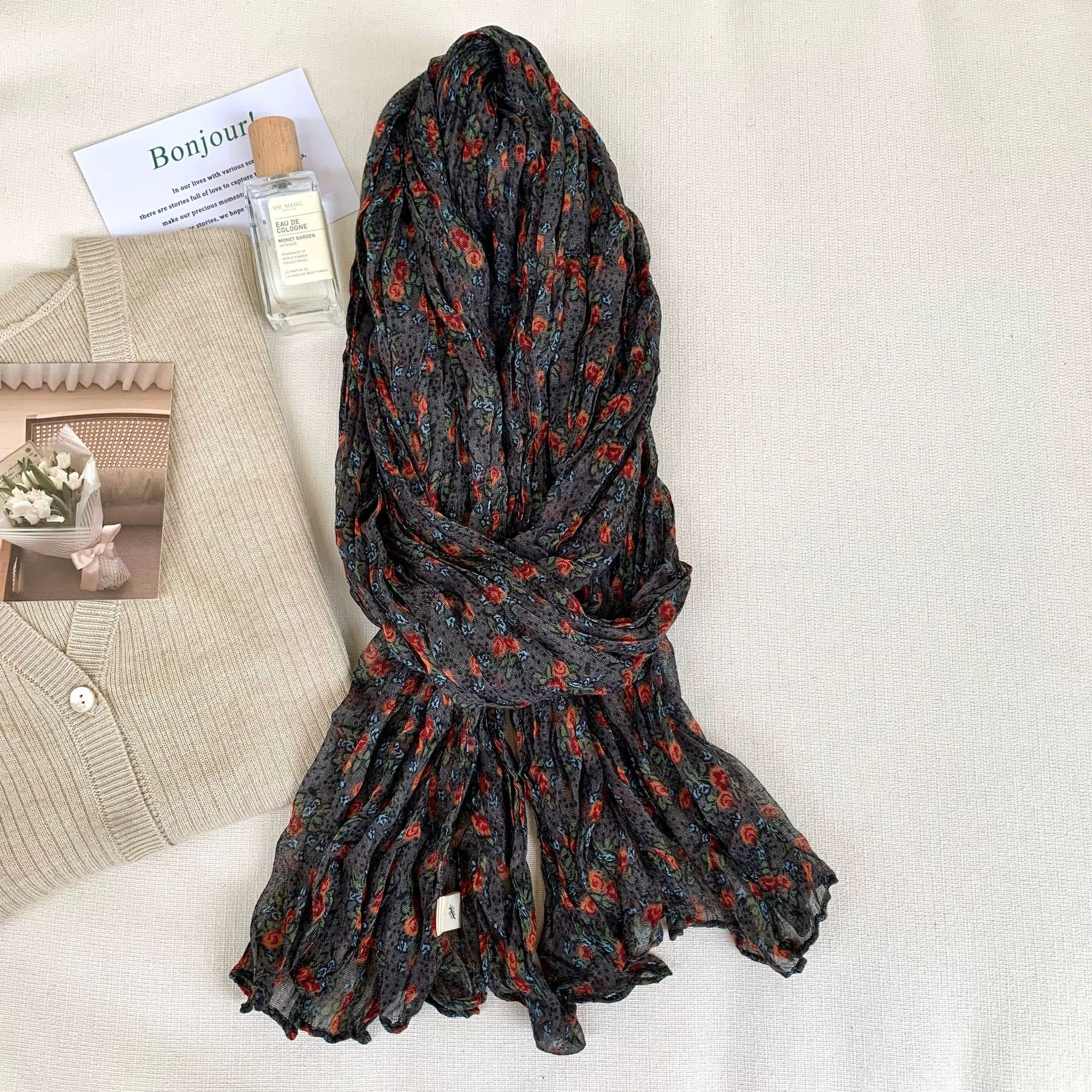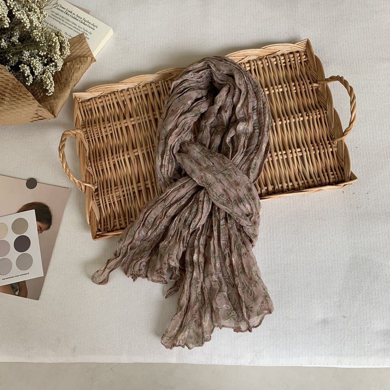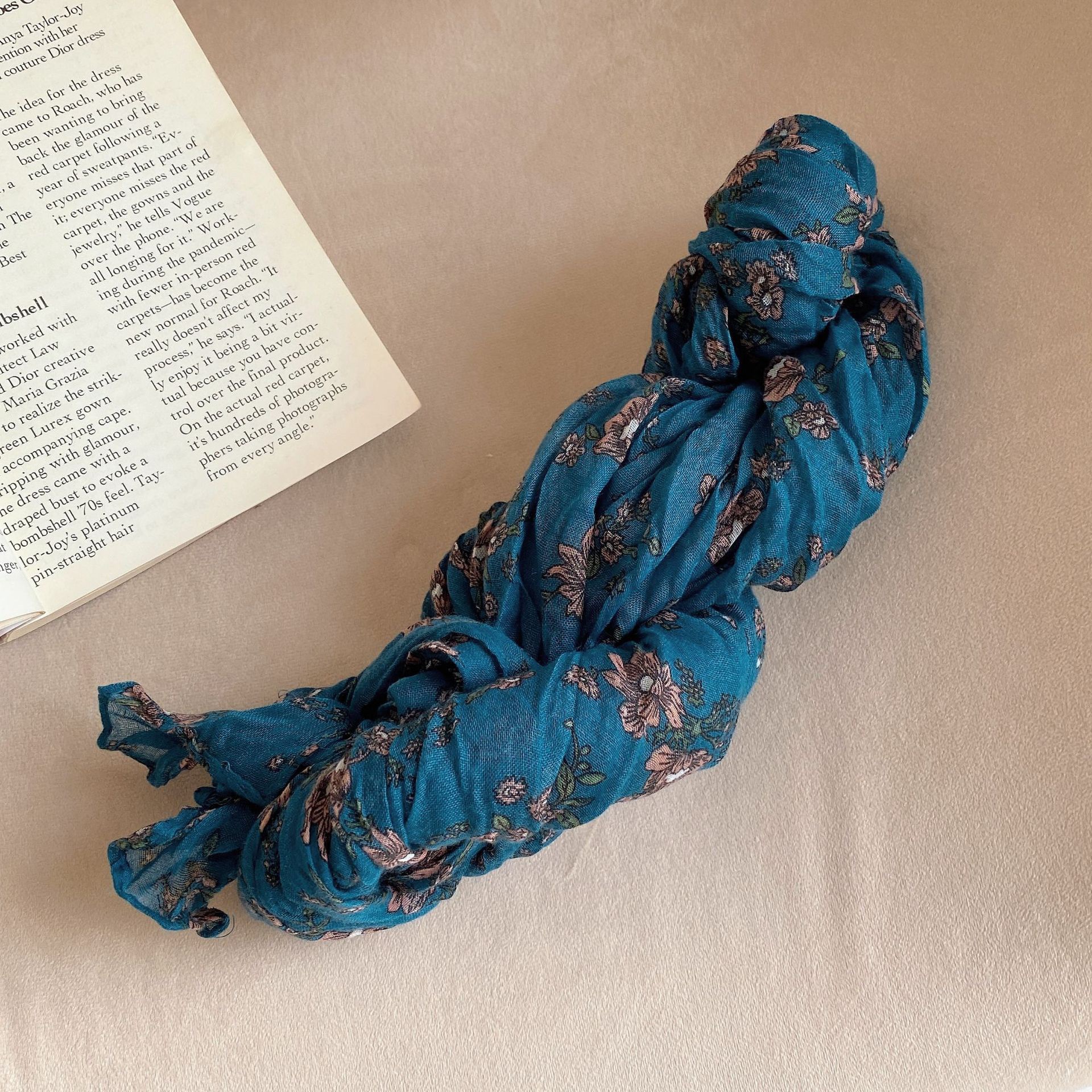 예술적 복고풍 부드러운 작은 꽃 복고풍 면과 린넨 스카프 여성의 여름 얇은 가을과 겨울 주름 긴 스카프 한국 스타일 실크 스카프