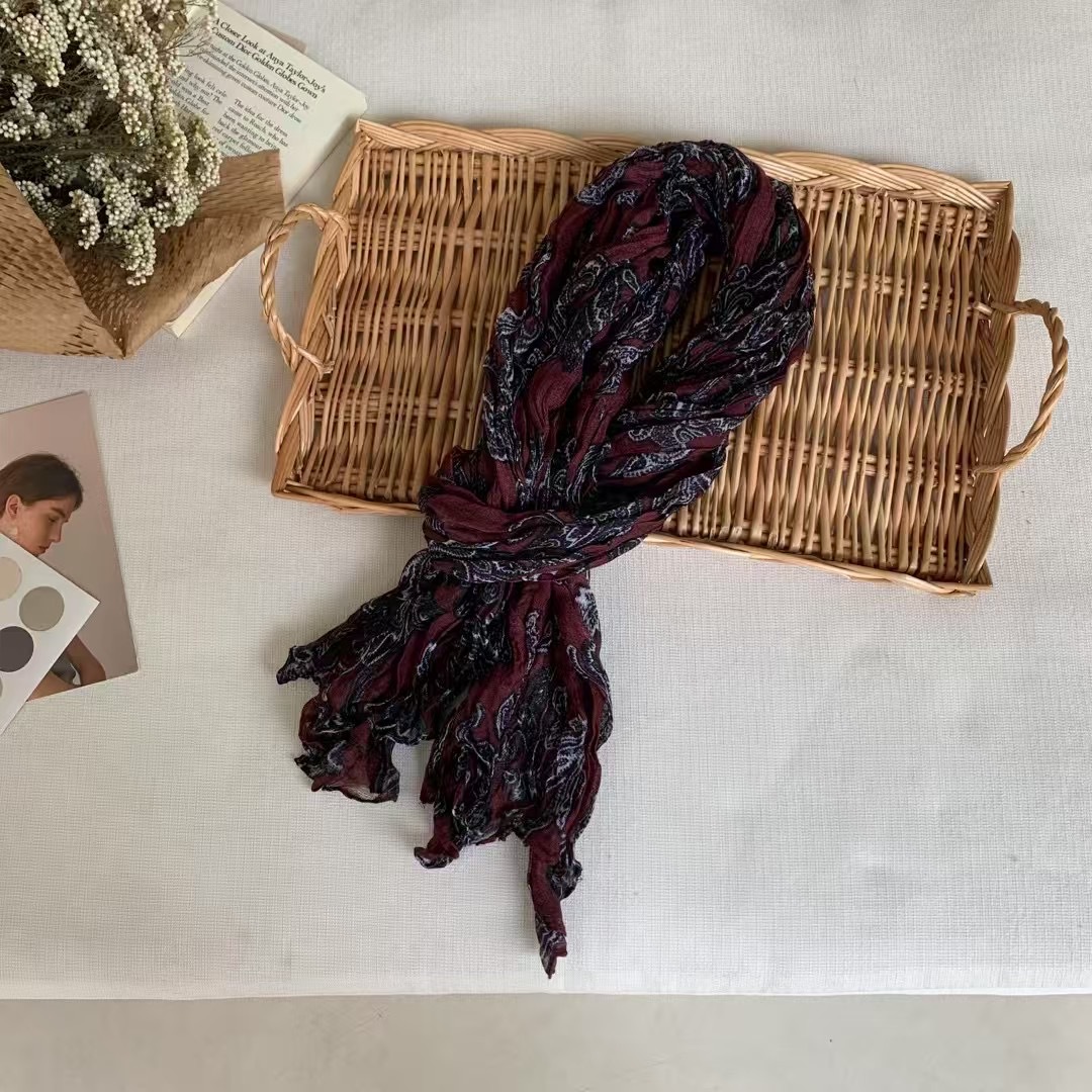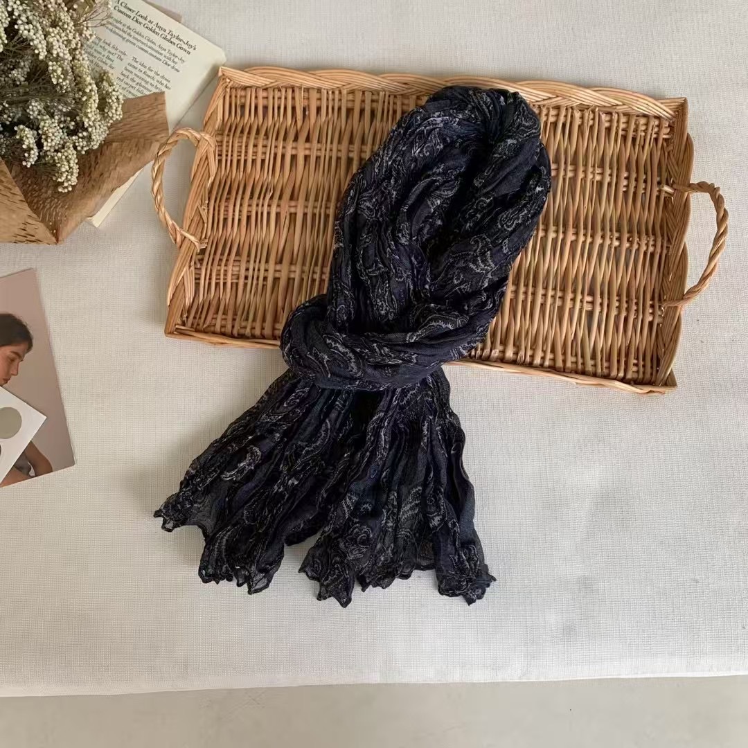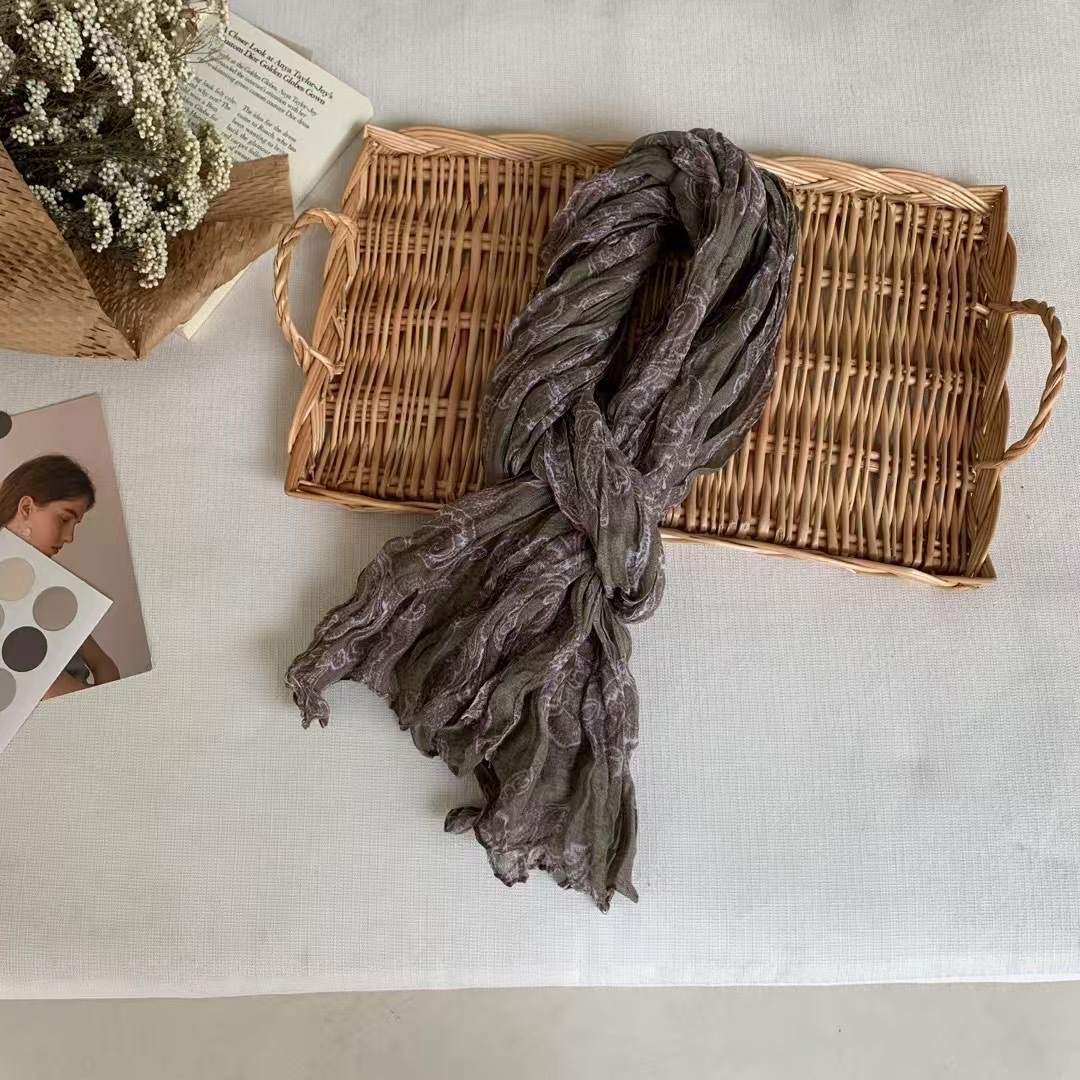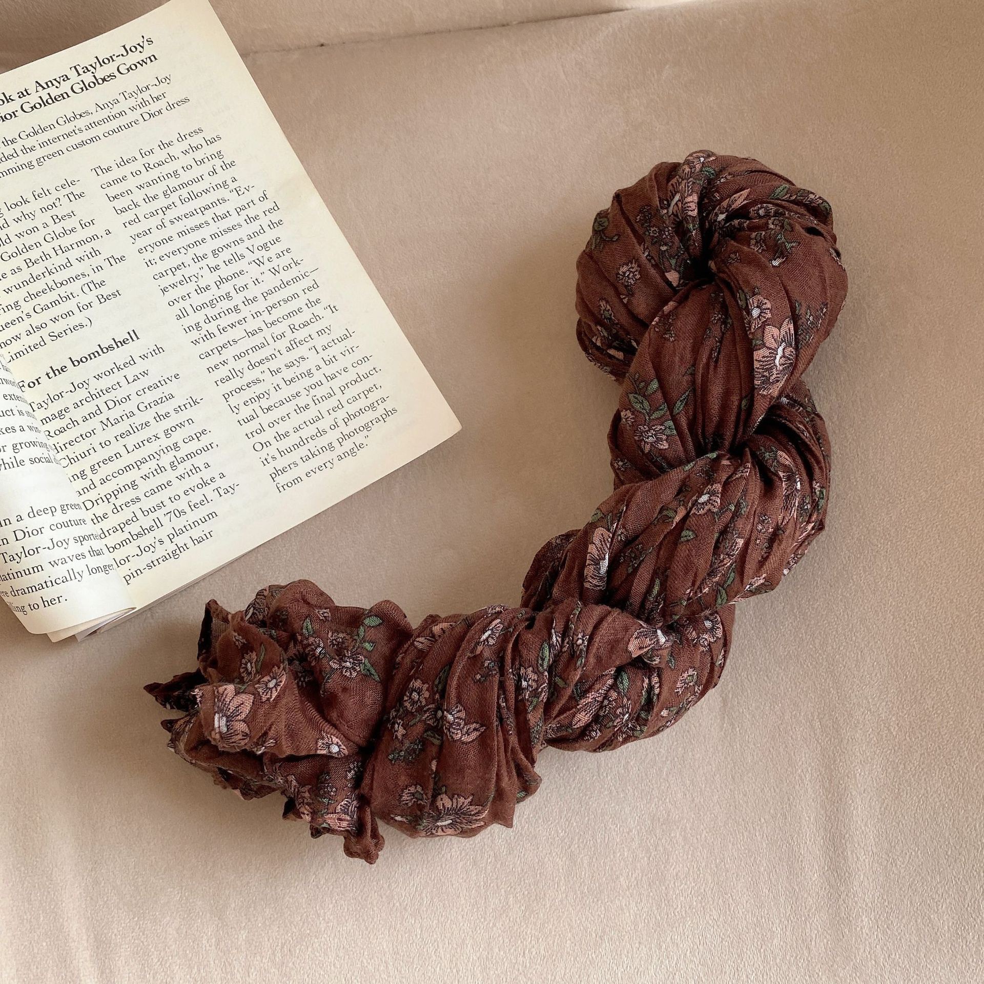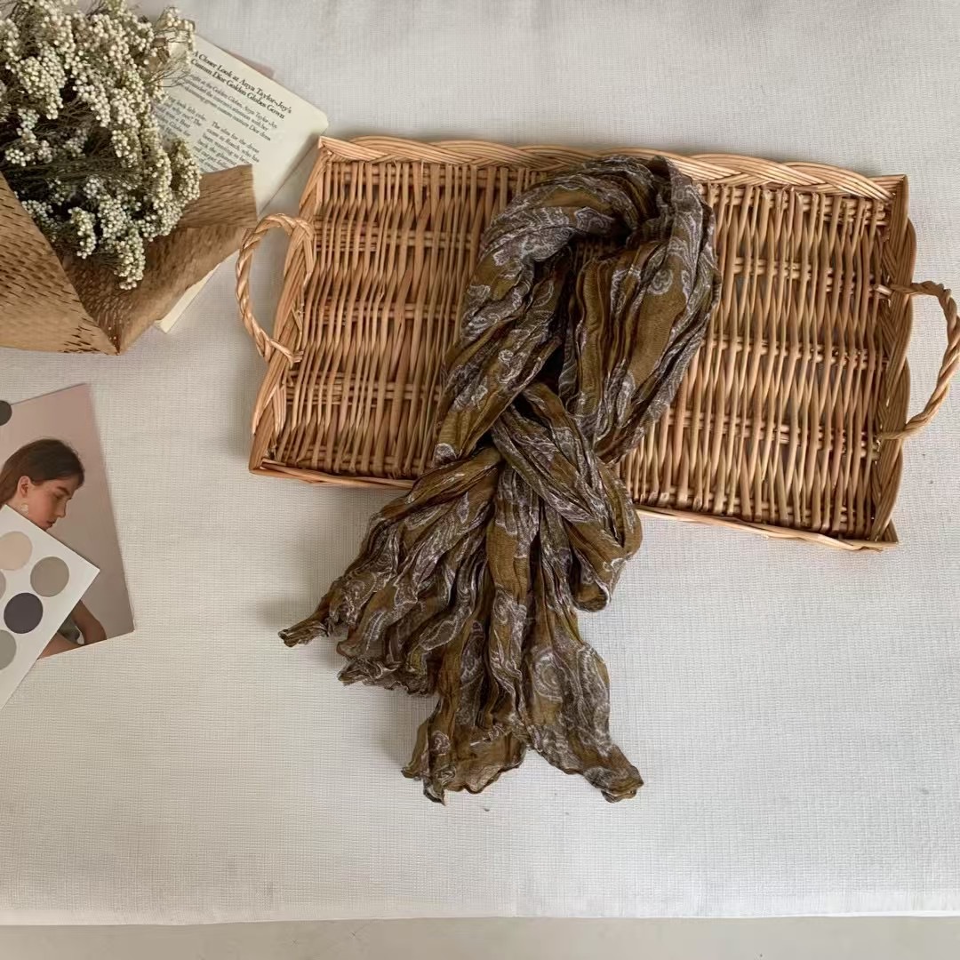 예술적 복고풍 부드러운 작은 꽃 복고풍 면과 린넨 스카프 여성의 여름 얇은 가을과 겨울 주름 긴 스카프 한국 스타일 실크 스카프