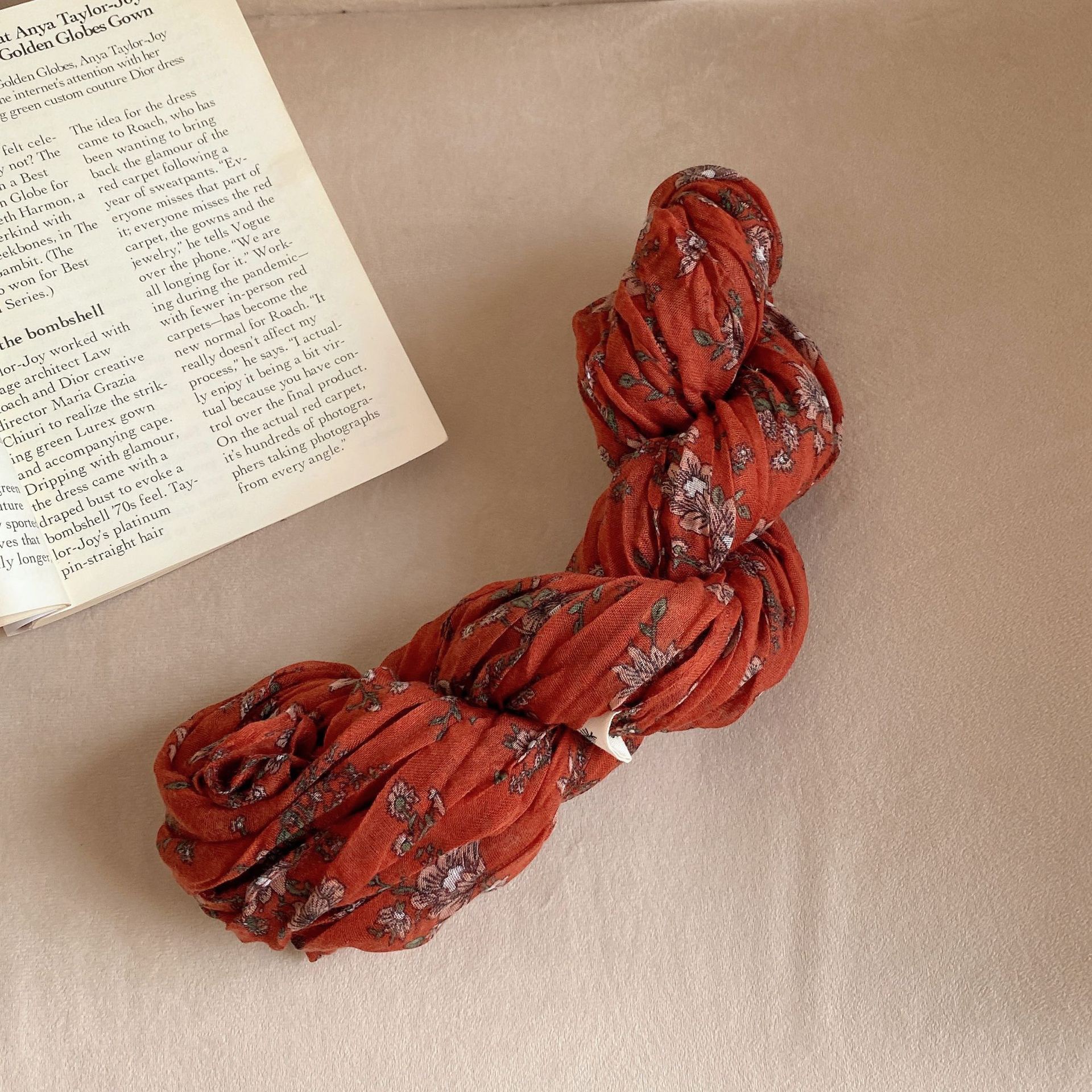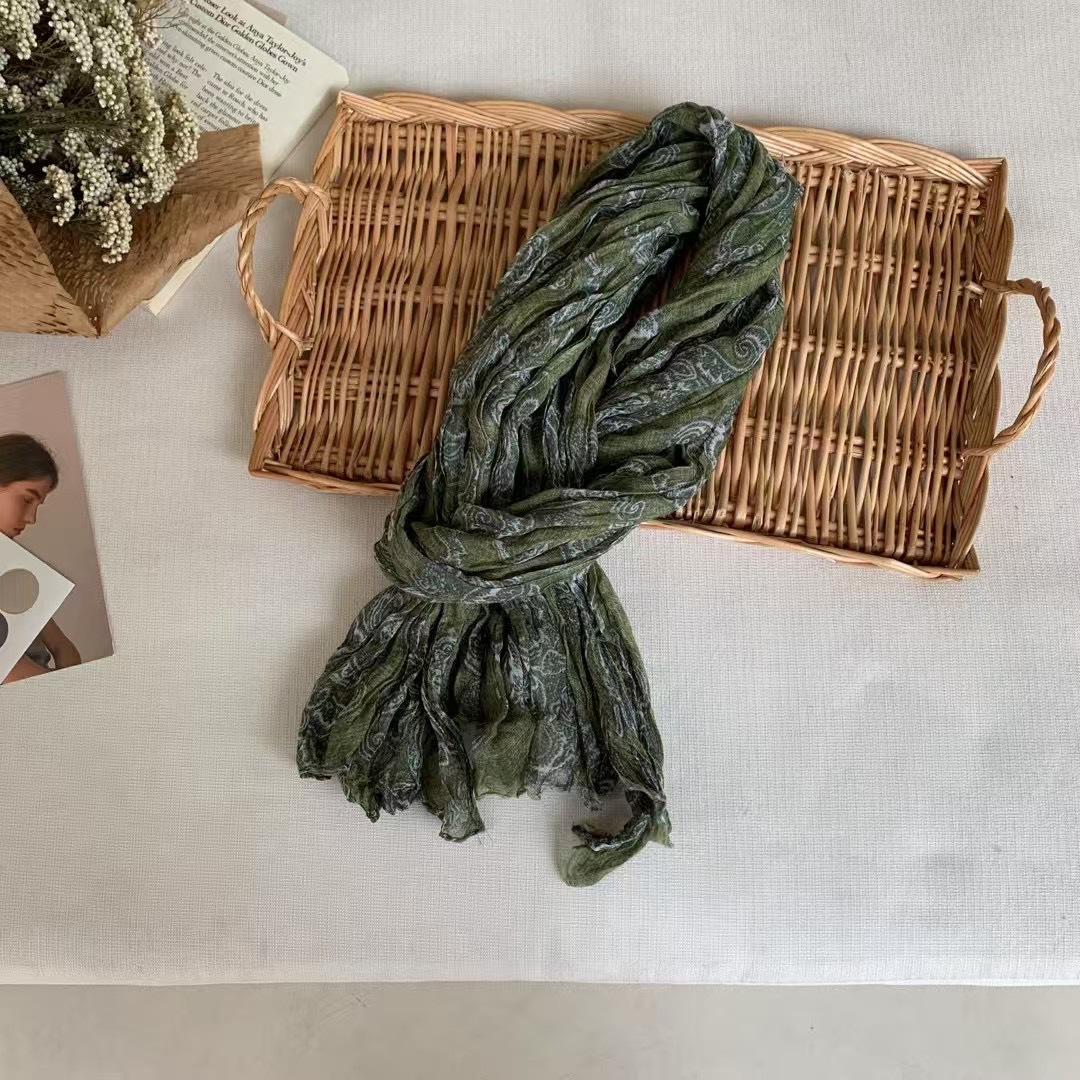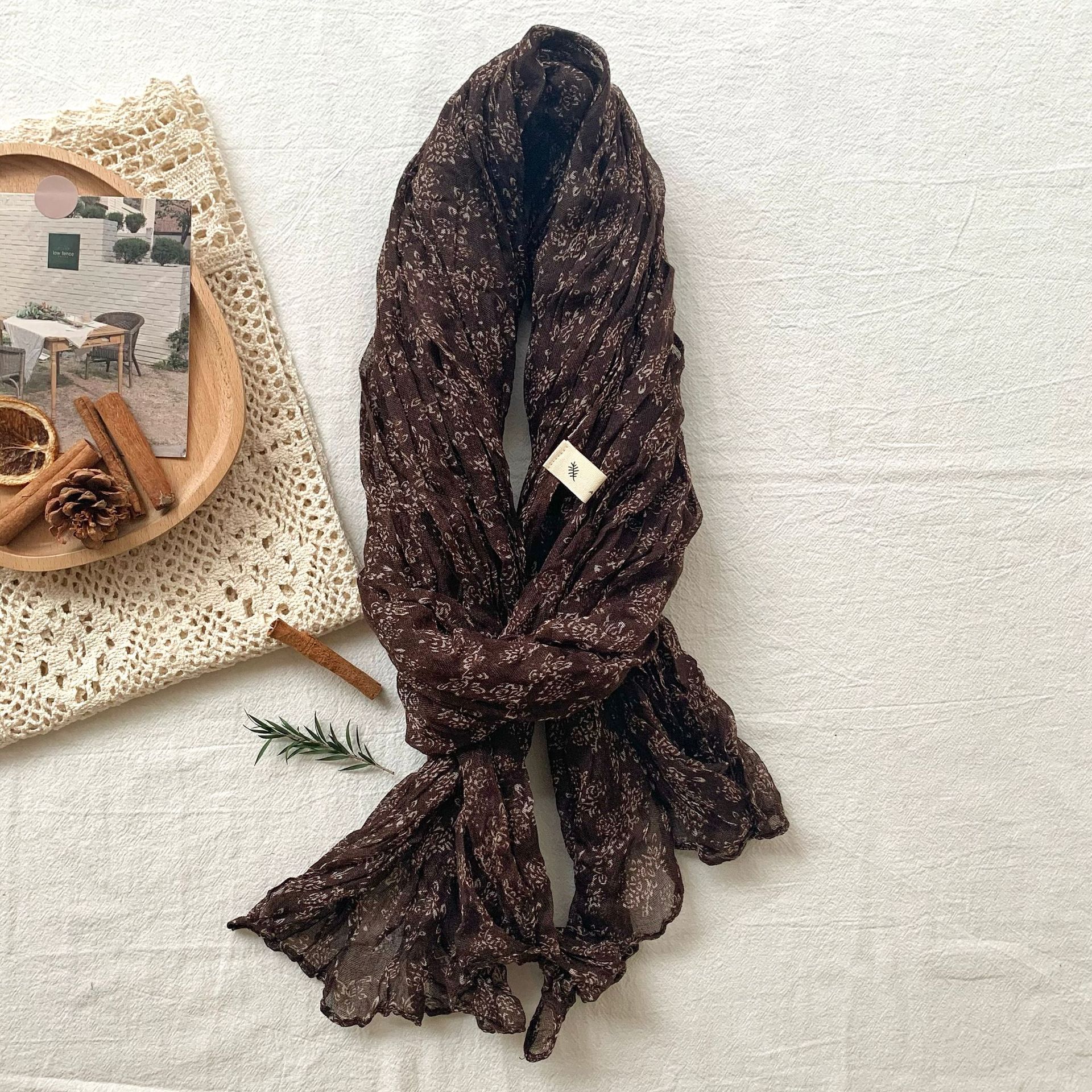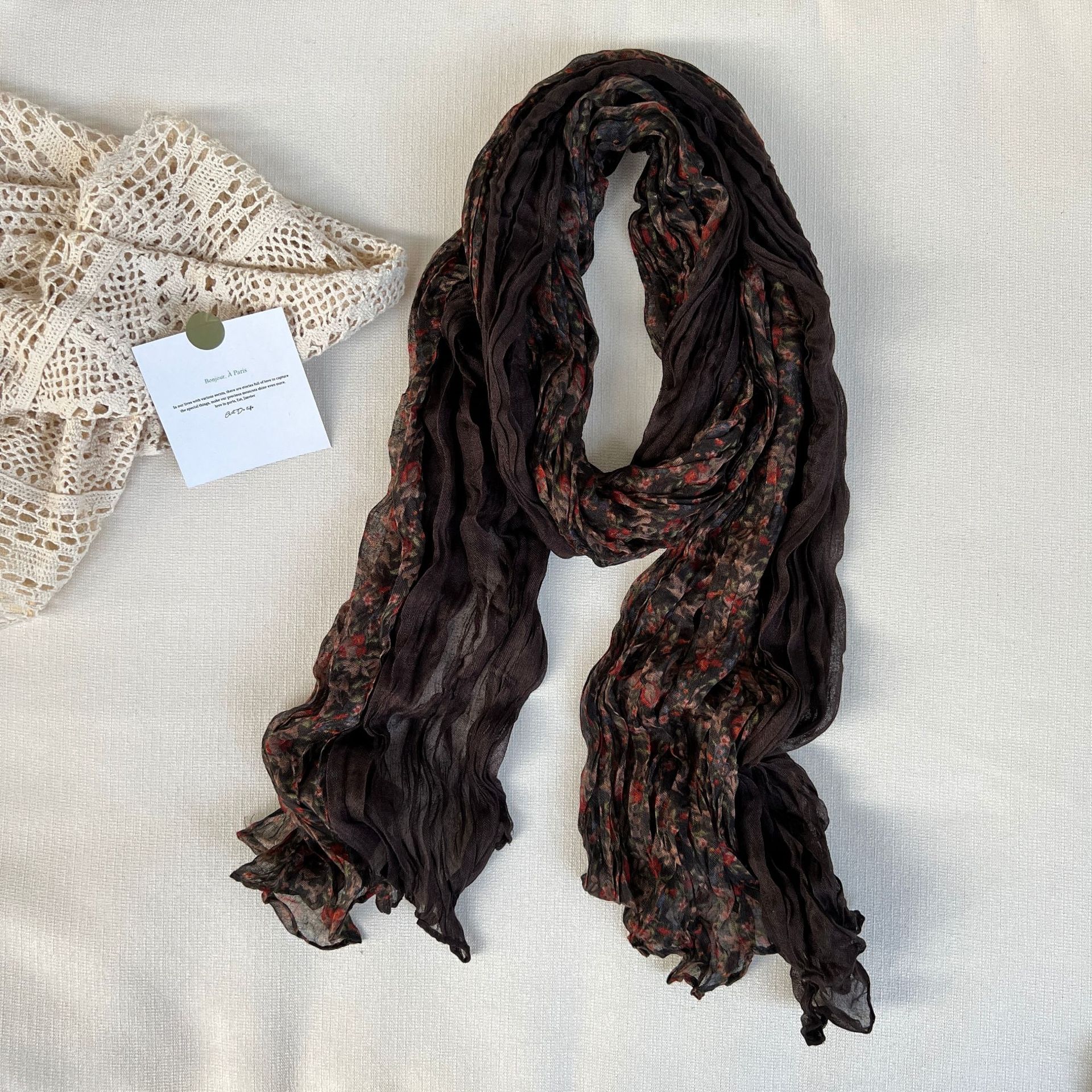 예술적 복고풍 부드러운 작은 꽃 복고풍 면과 린넨 스카프 여성의 여름 얇은 가을과 겨울 주름 긴 스카프 한국 스타일 실크 스카프