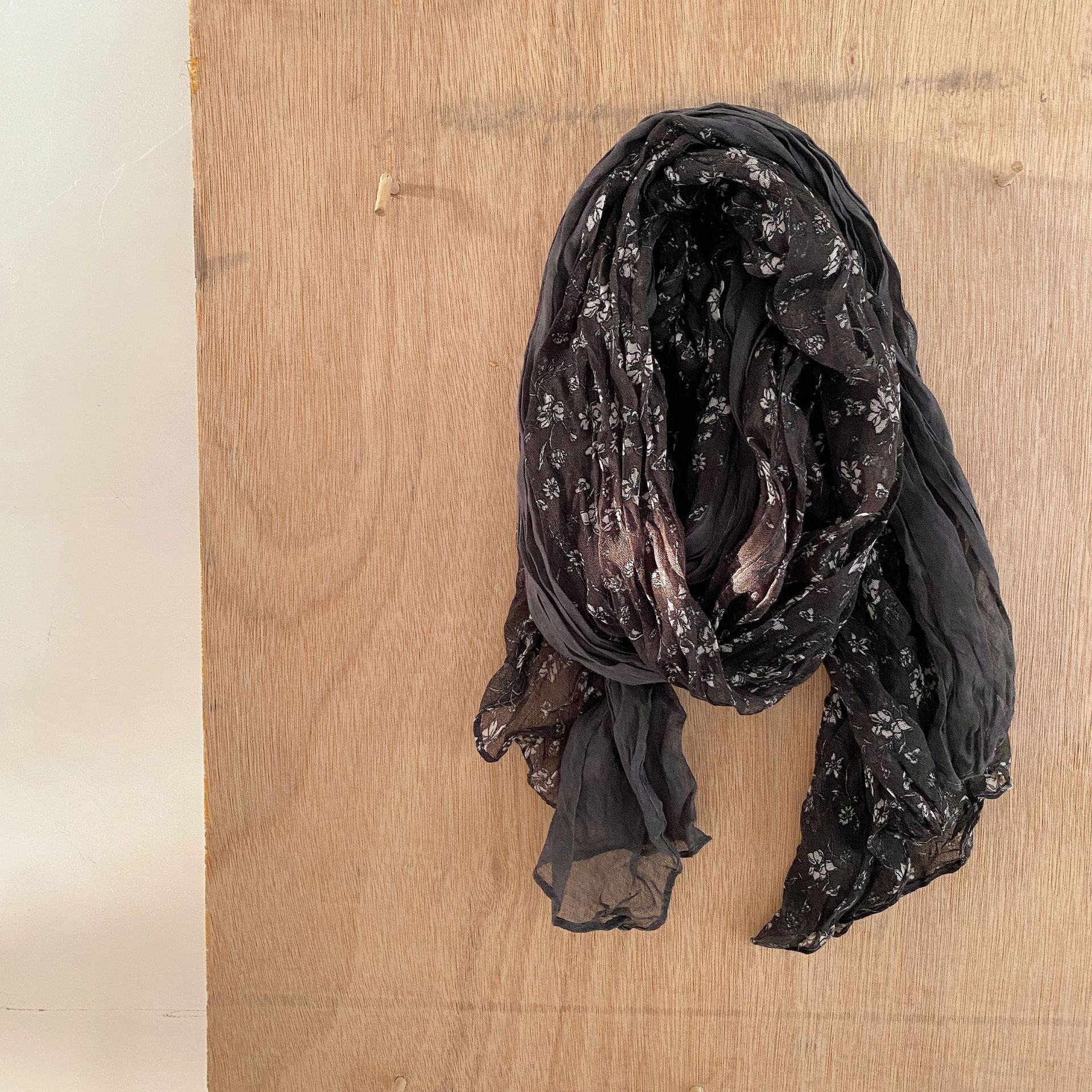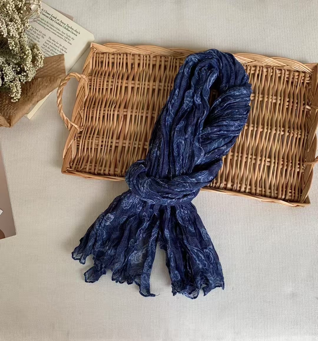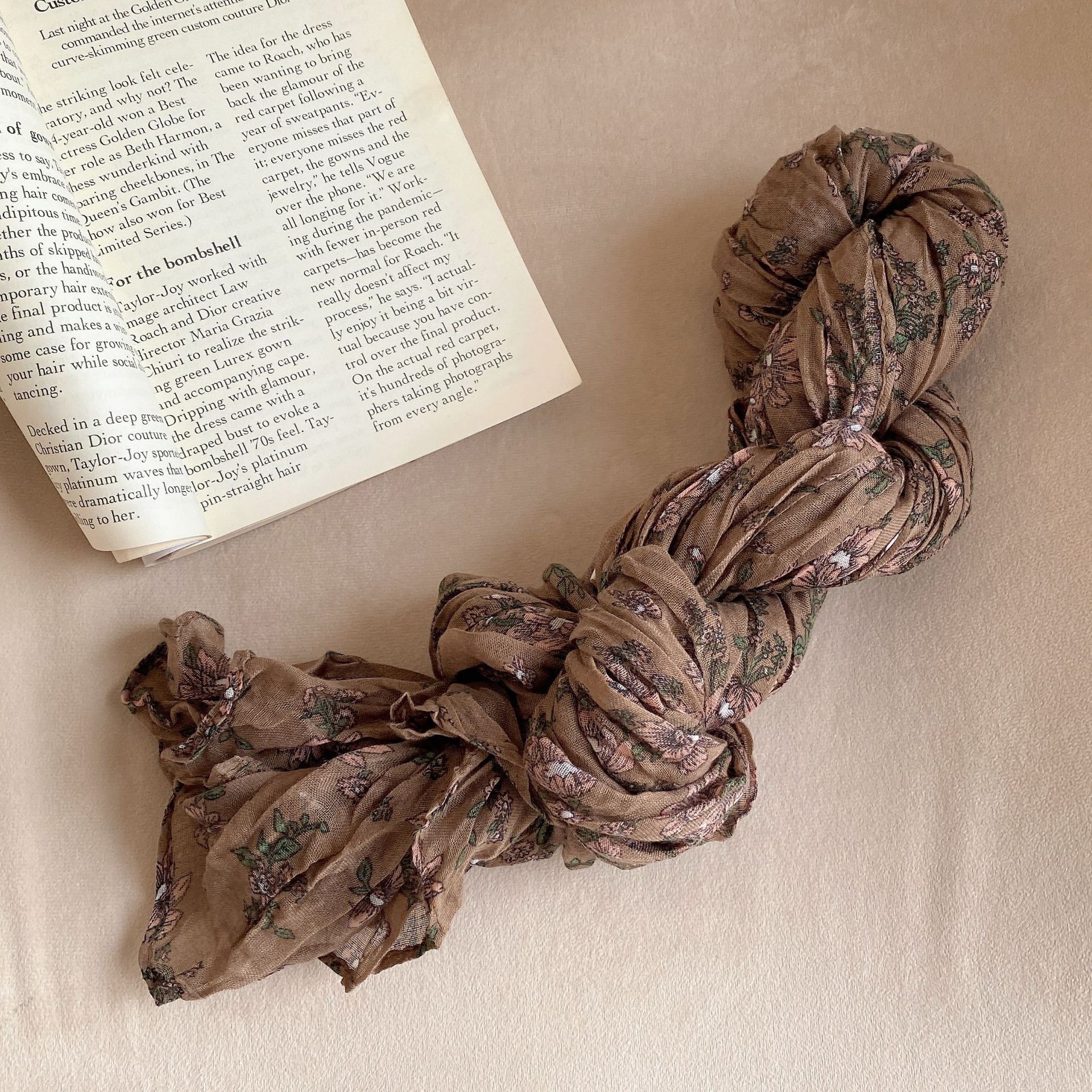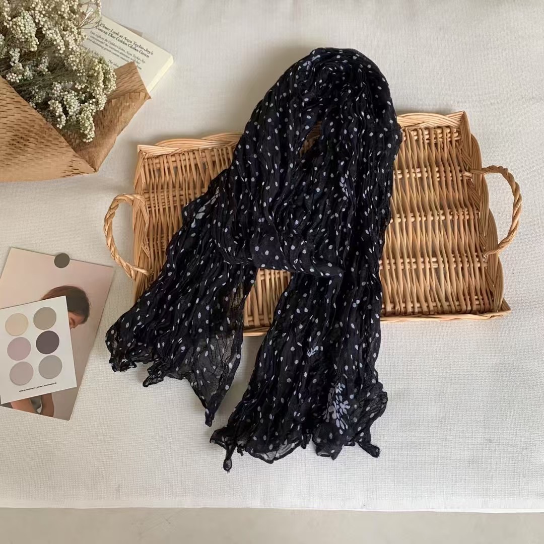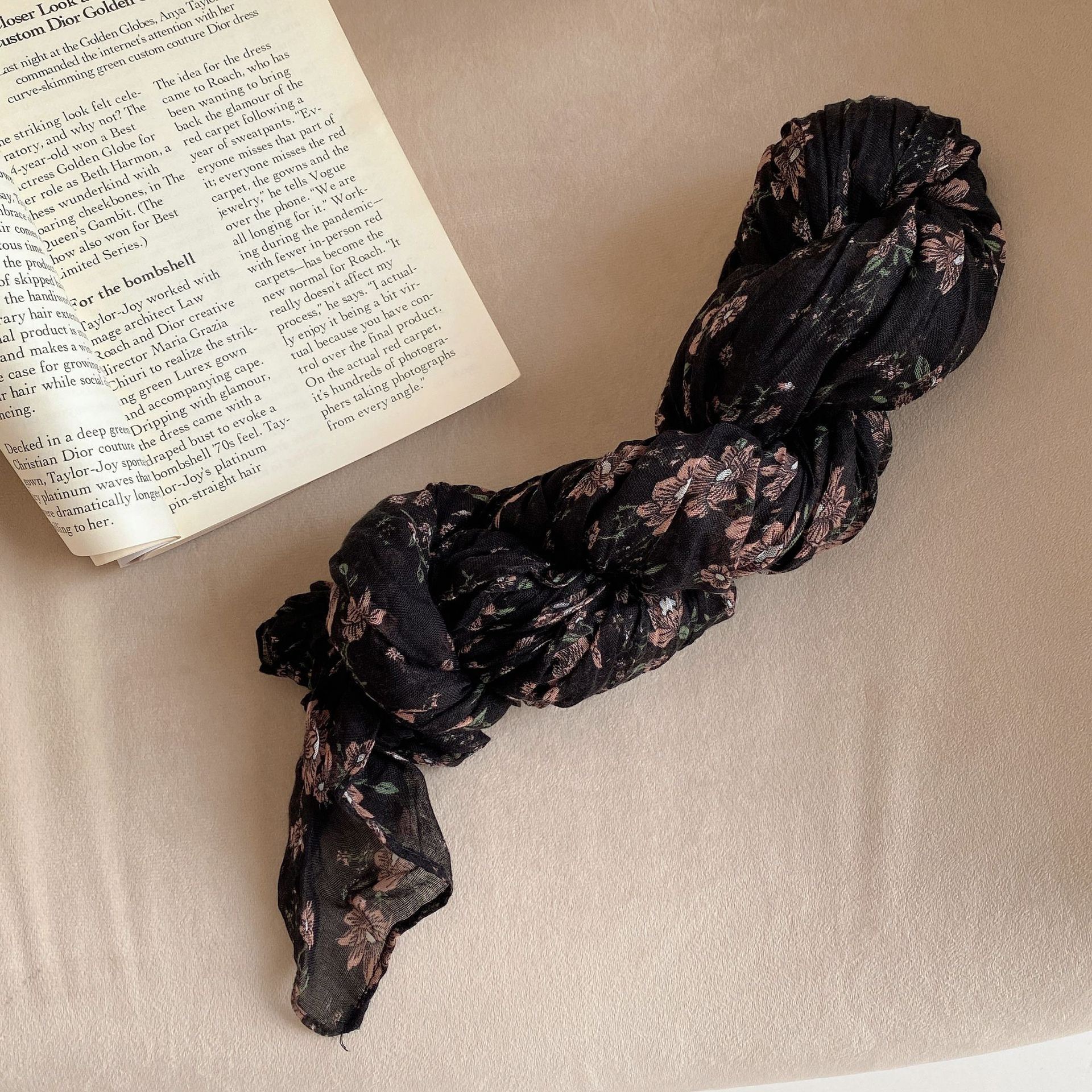 예술적 복고풍 부드러운 작은 꽃 복고풍 면과 린넨 스카프 여성의 여름 얇은 가을과 겨울 주름 긴 스카프 한국 스타일 실크 스카프