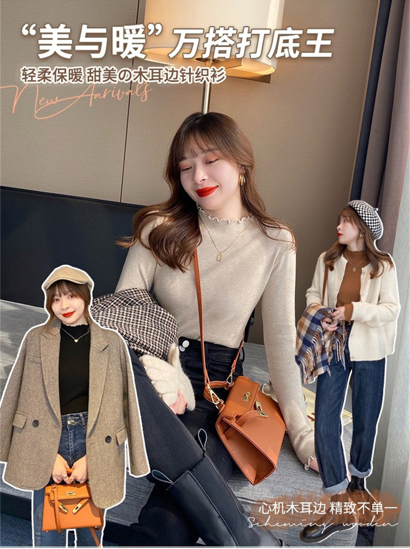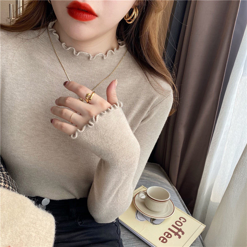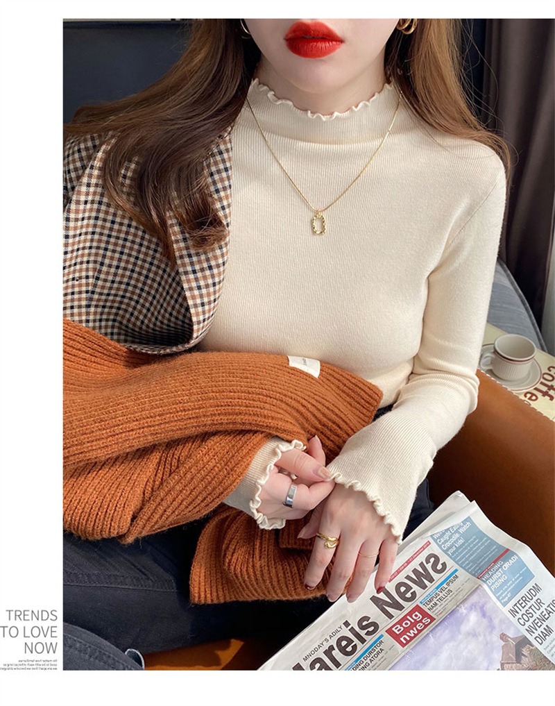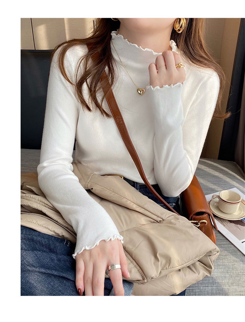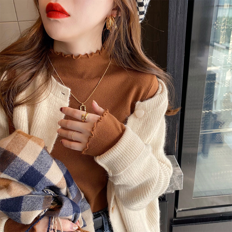 여성용 이너웨어 봄 가을 스타일리시 2025년 가을 신상 러플 반하이넥 스웨터 니트 상의스토어 가기
