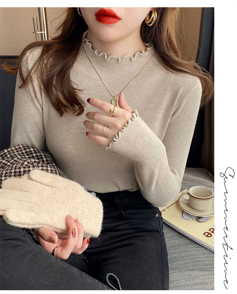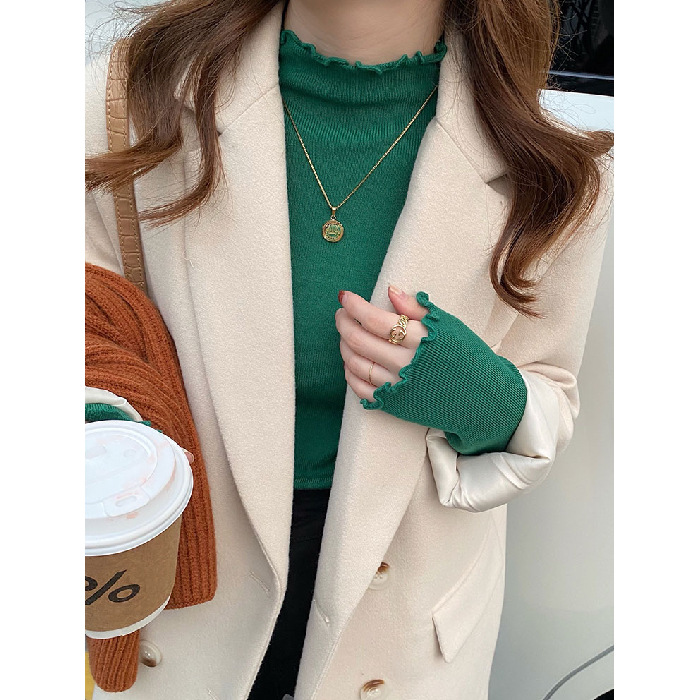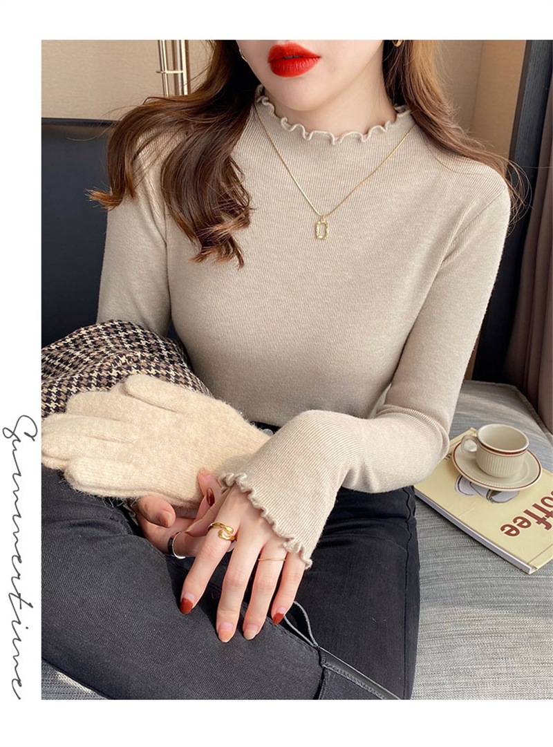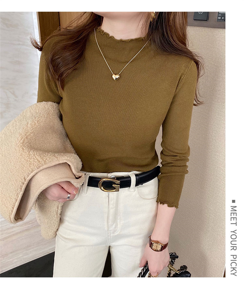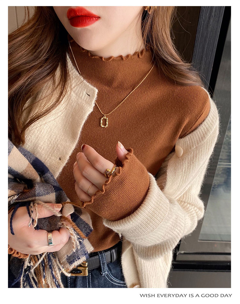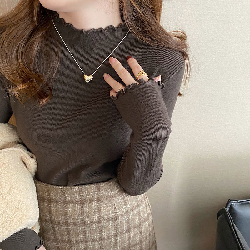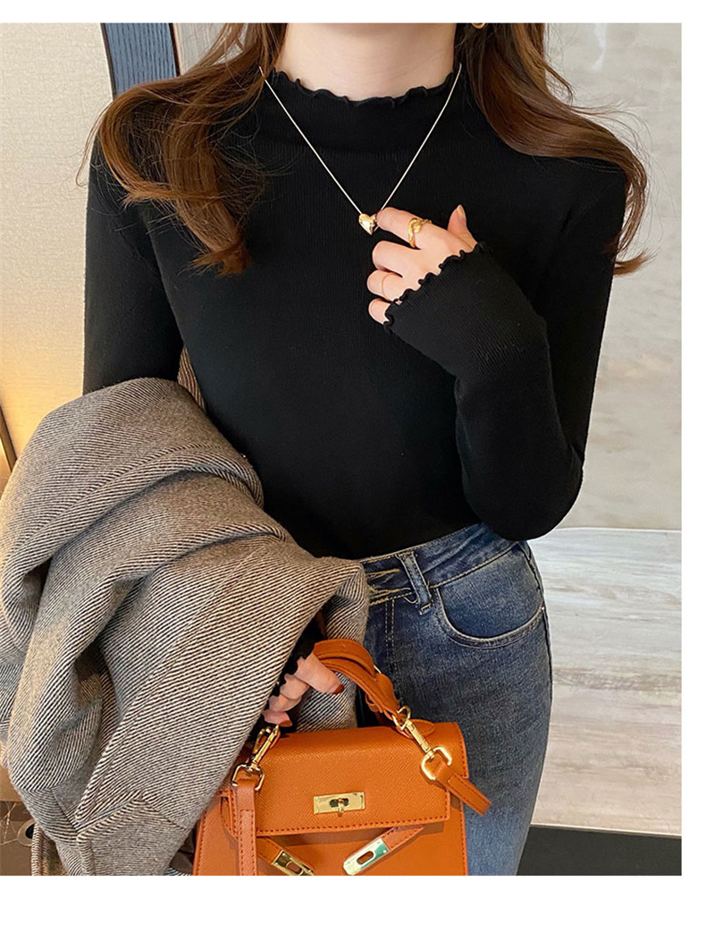 여성용 이너웨어 봄 가을 스타일리시 2025년 가을 신상 러플 반하이넥 스웨터 니트 상의