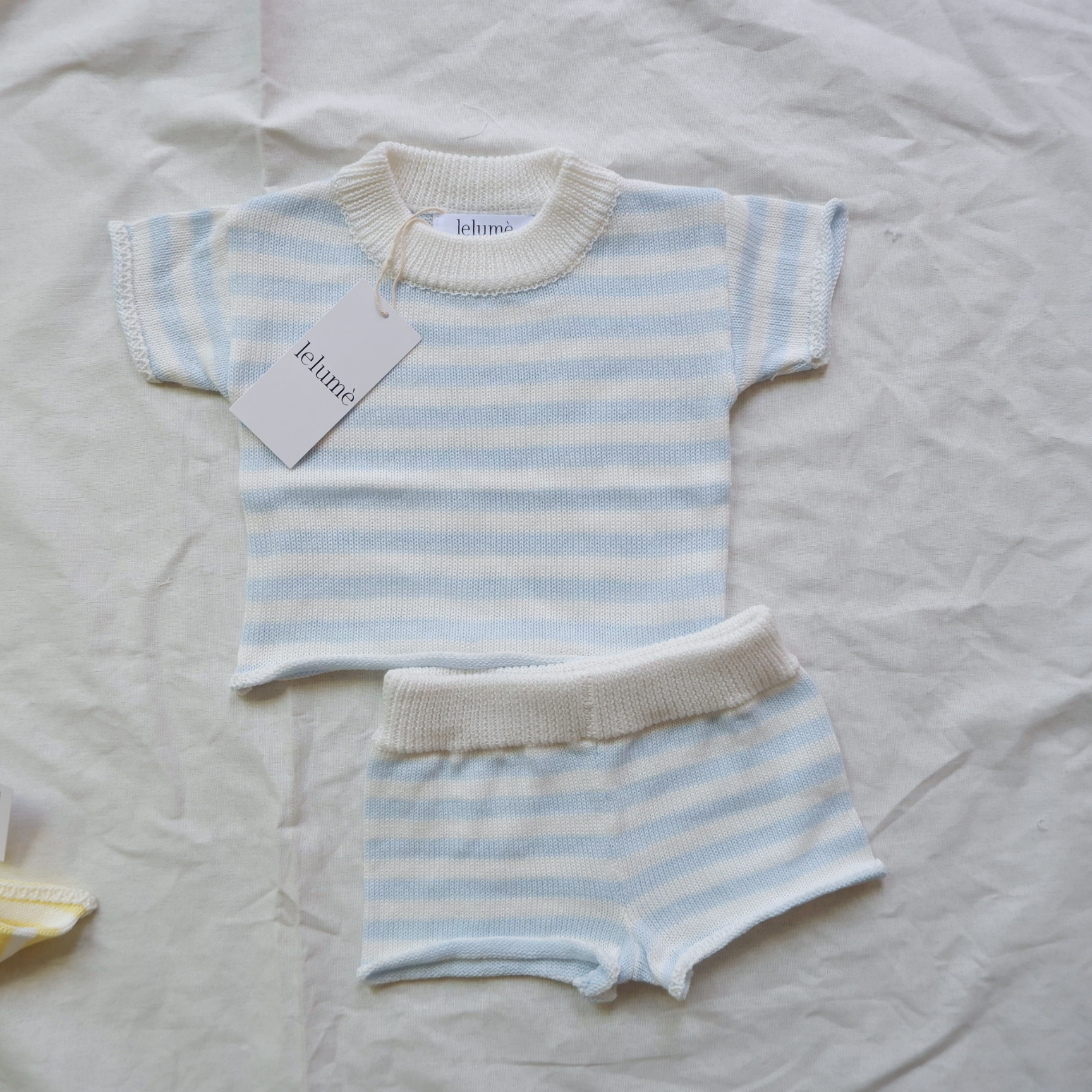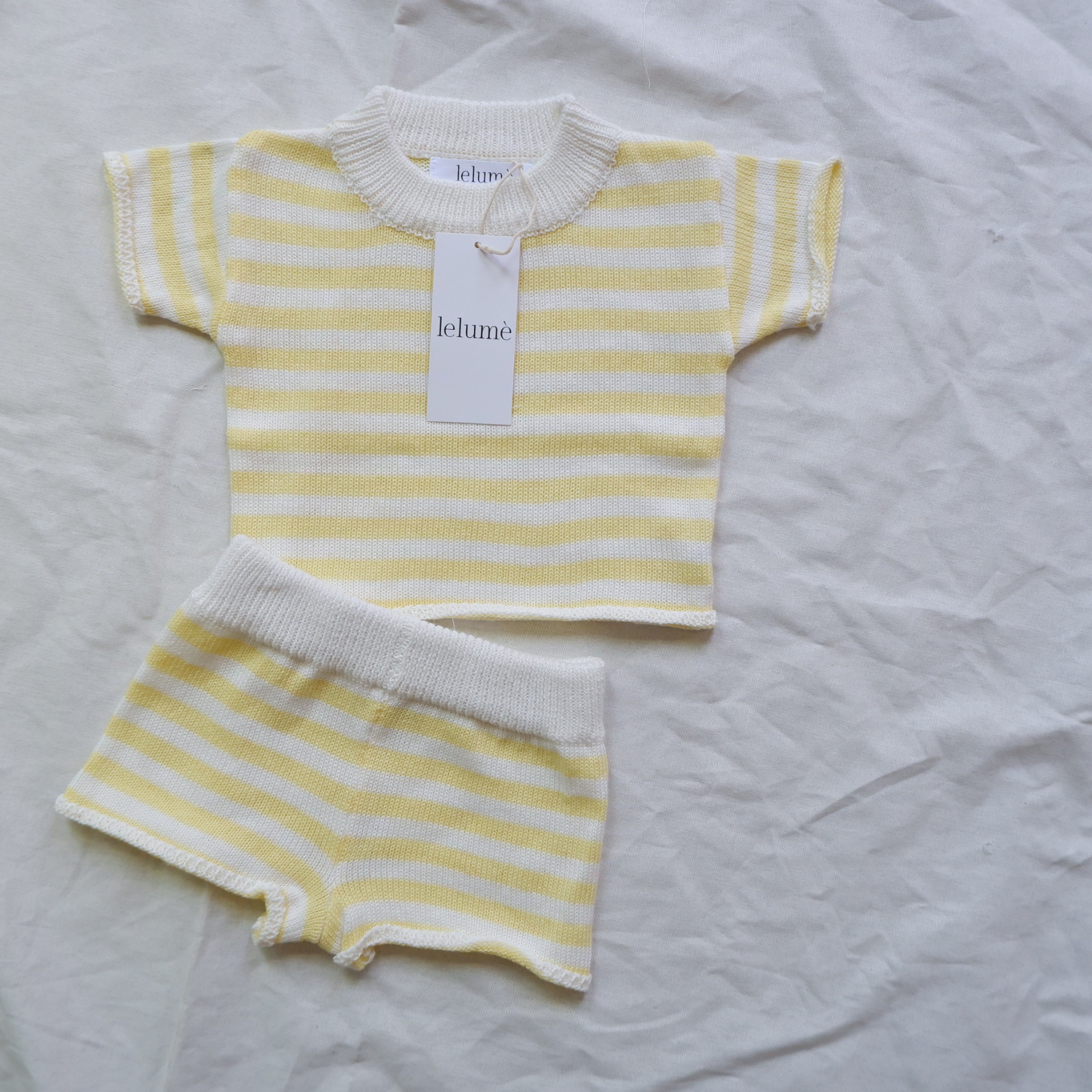 INS 뜨거운 판매 여자 아기 코튼 세트 스트라이프 서양식 반팔 반바지 니트 스웨터 투피스 세트스토어 가기