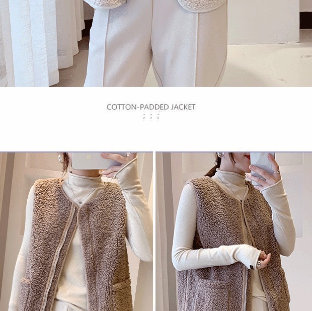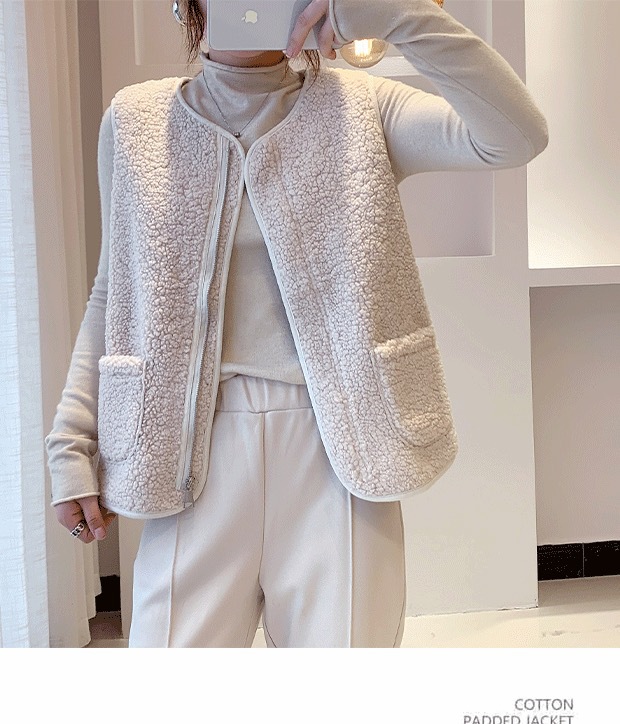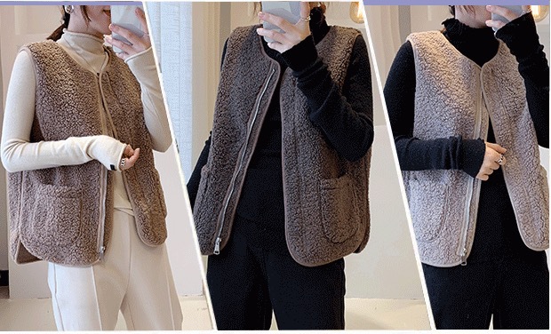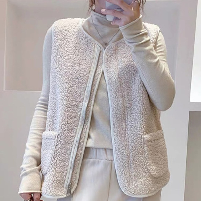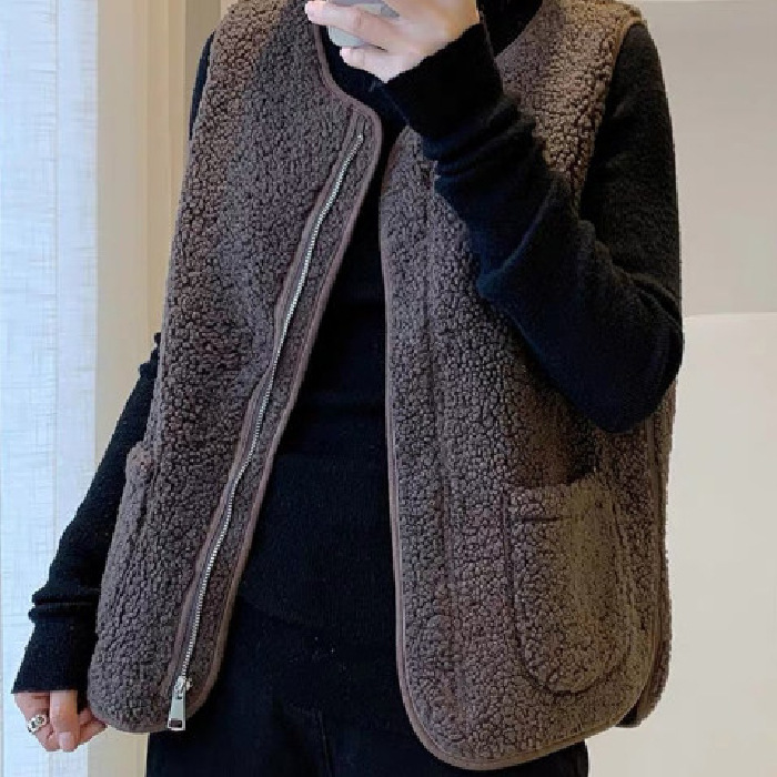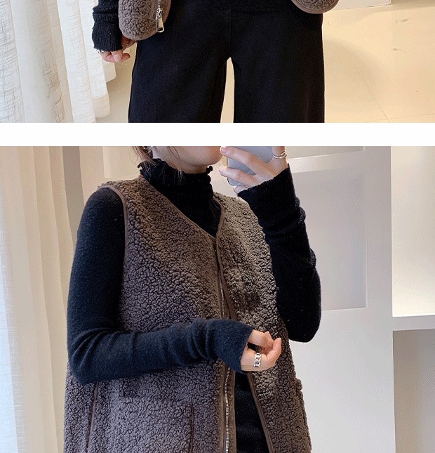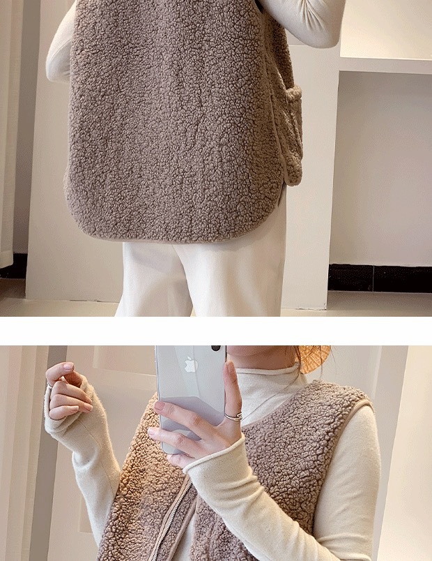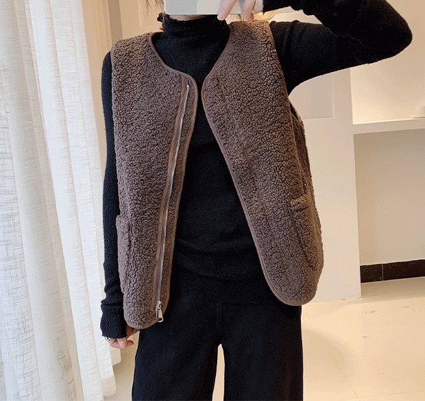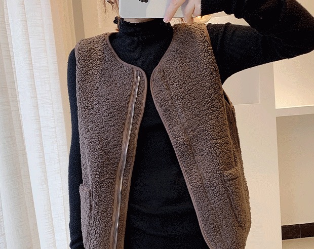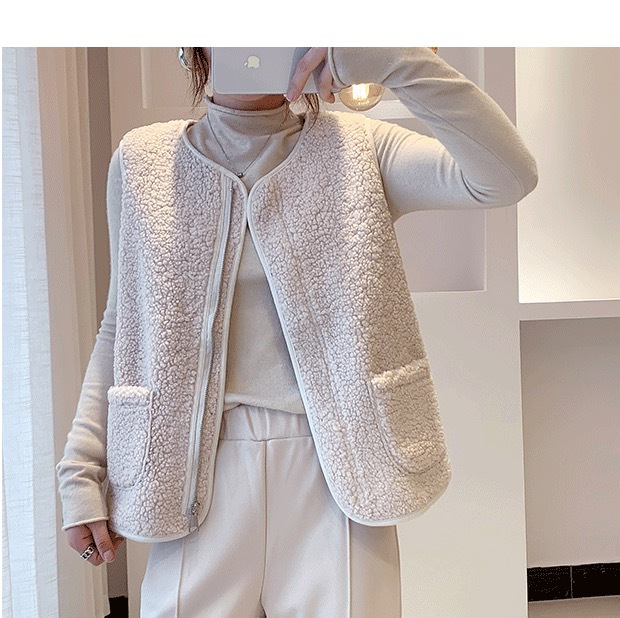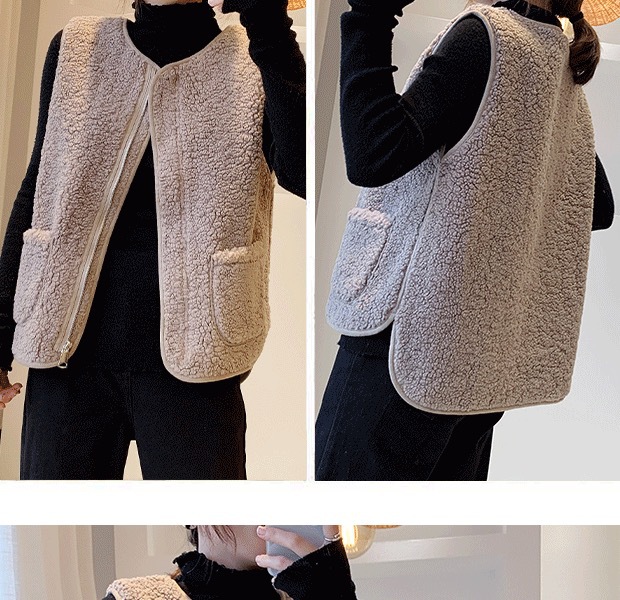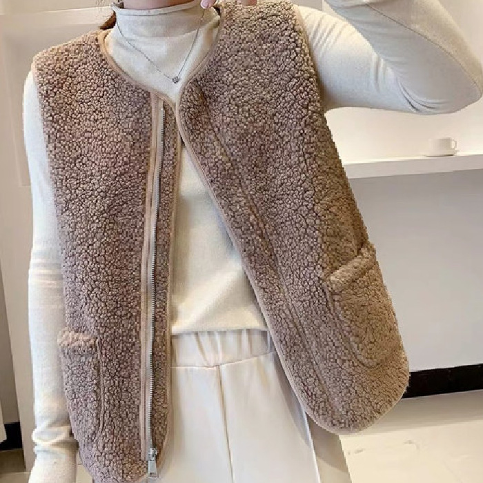 가을 여자의 모피 원피스 양고기 울 지퍼 조끼 코트 여자의 겨울 유행 모든 경기 짧은 조끼스토어 가기