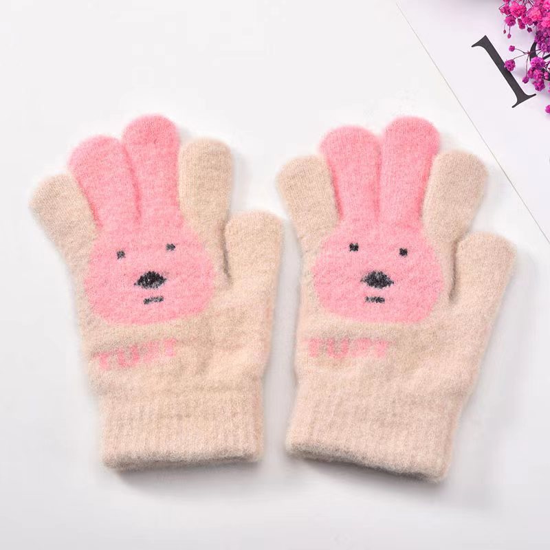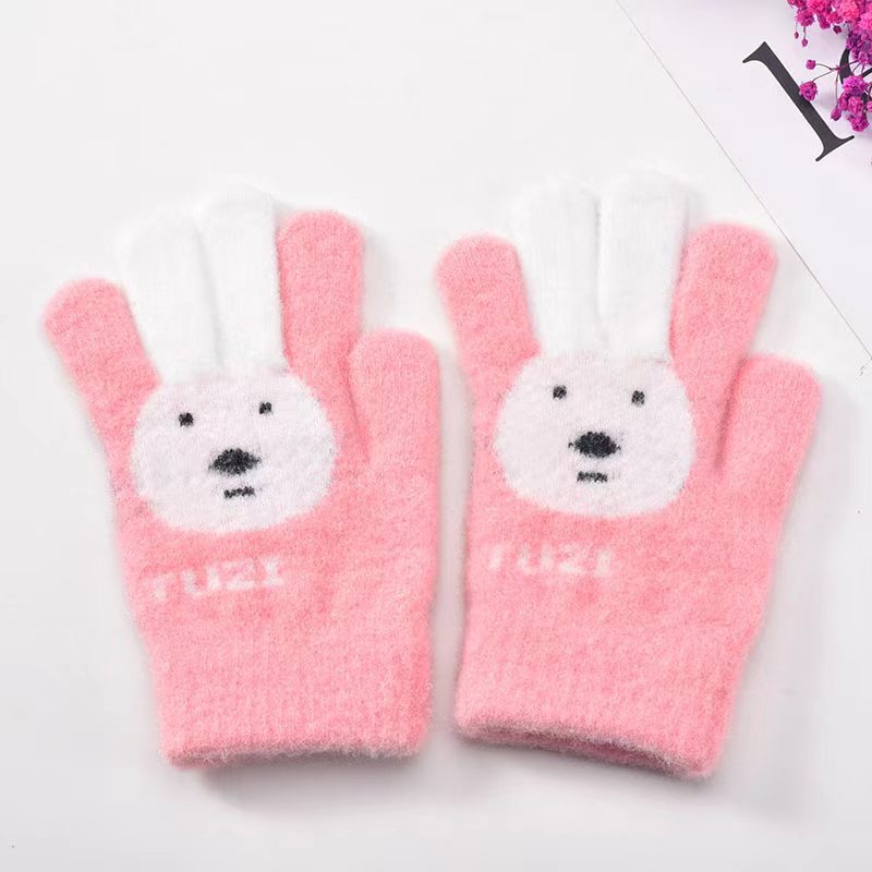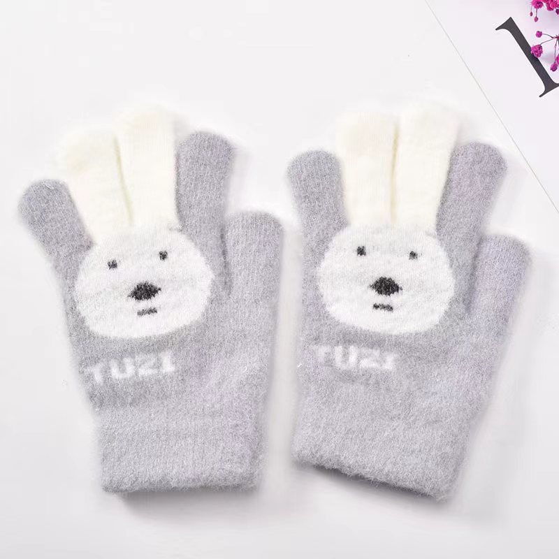 남성과 여성과 어린이를위한 겨울 장갑 귀여운 달콤한 토끼 니트 울 손가락 두꺼운 야외 방한 학생 따뜻한스토어 가기