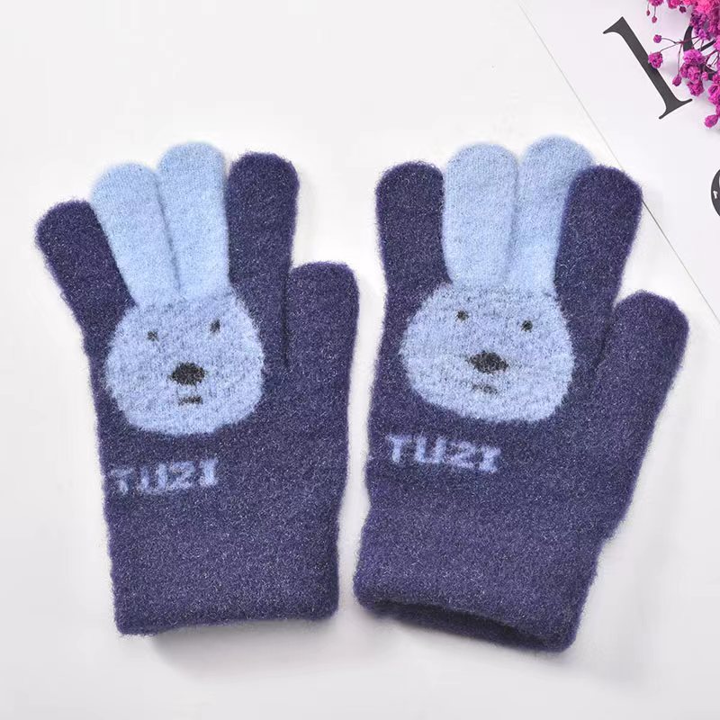 남성과 여성과 어린이를위한 겨울 장갑 귀여운 달콤한 토끼 니트 울 손가락 두꺼운 야외 방한 학생 따뜻한