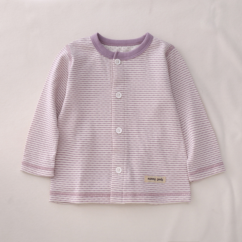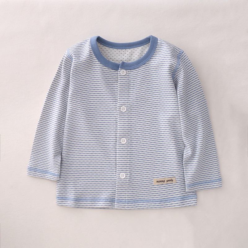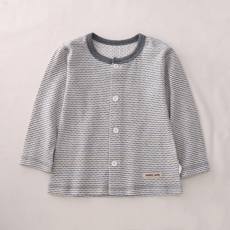 일본 가을과 겨울 두꺼운 어린이 탑 면 소프트 웜 스트라이프 베이스 셔츠 중소 어린이 전면 오픈 탑스토어 가기