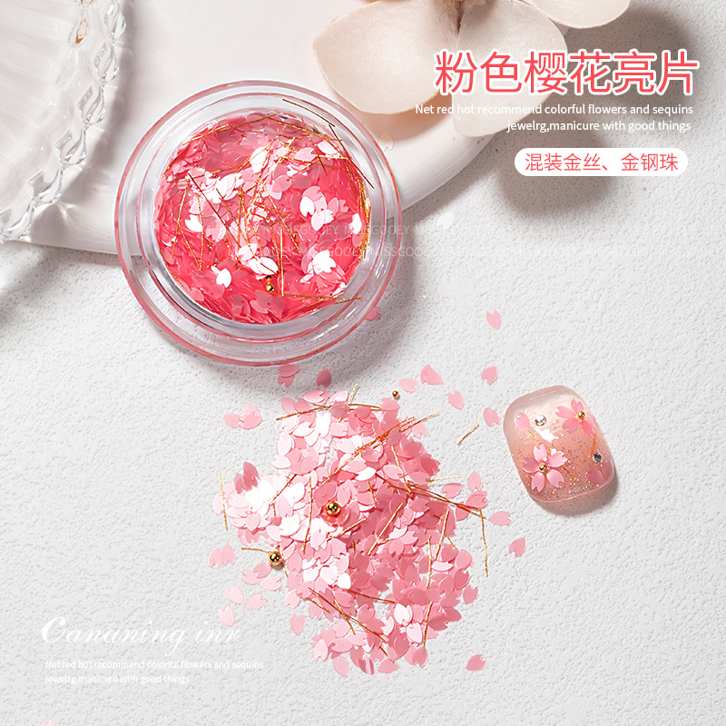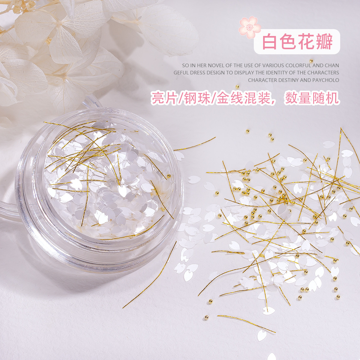 2023 새로운 일본 네일 아트 벚꽃 꽃잎 스팽글 스틸 볼 화이트 다섯 꽃잎 꽃 네일 패치 장식 드릴스토어 가기