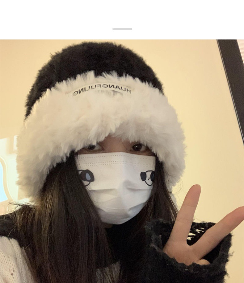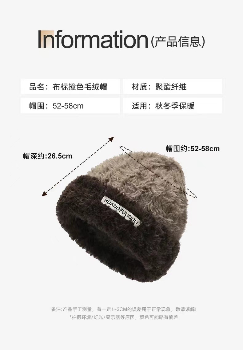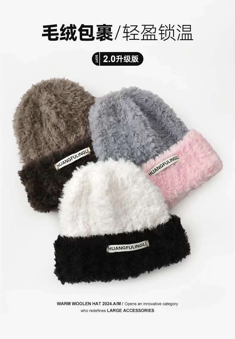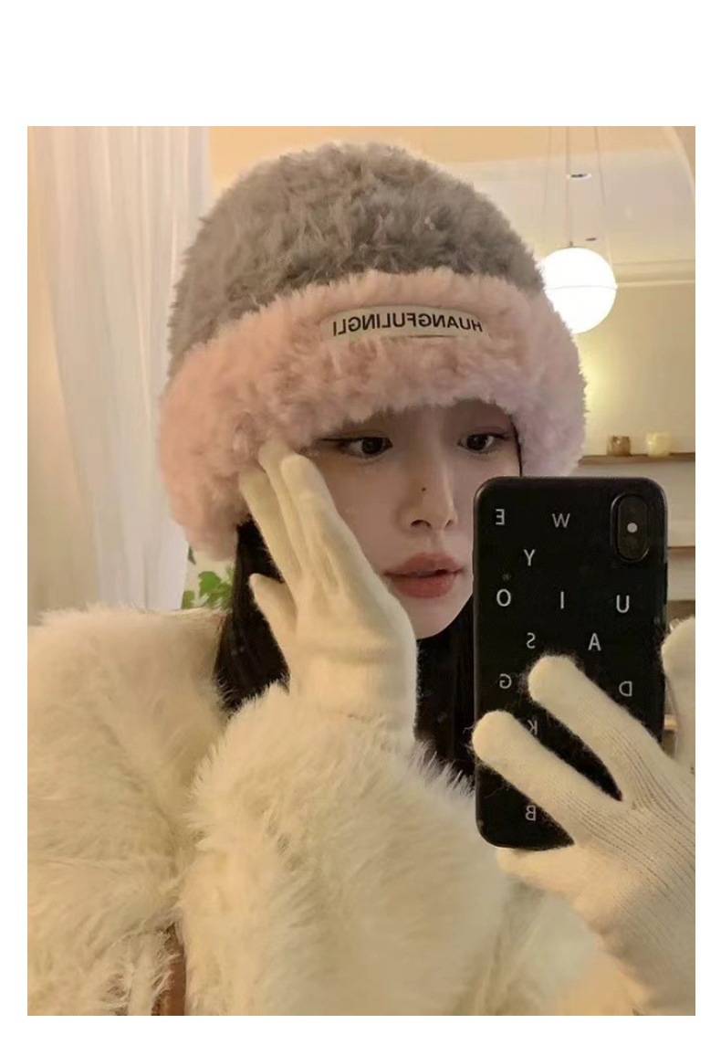 모자 여성 가을, 겨울 한국어 버전 귀여운 플러시 모자 플러스 벨벳 두꺼운 풀오버 니트 모자 따뜻한 귀 보호 모직 모자스토어 가기