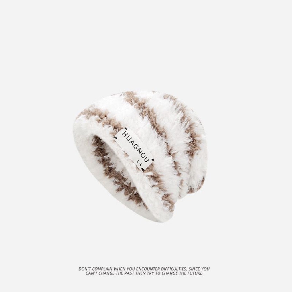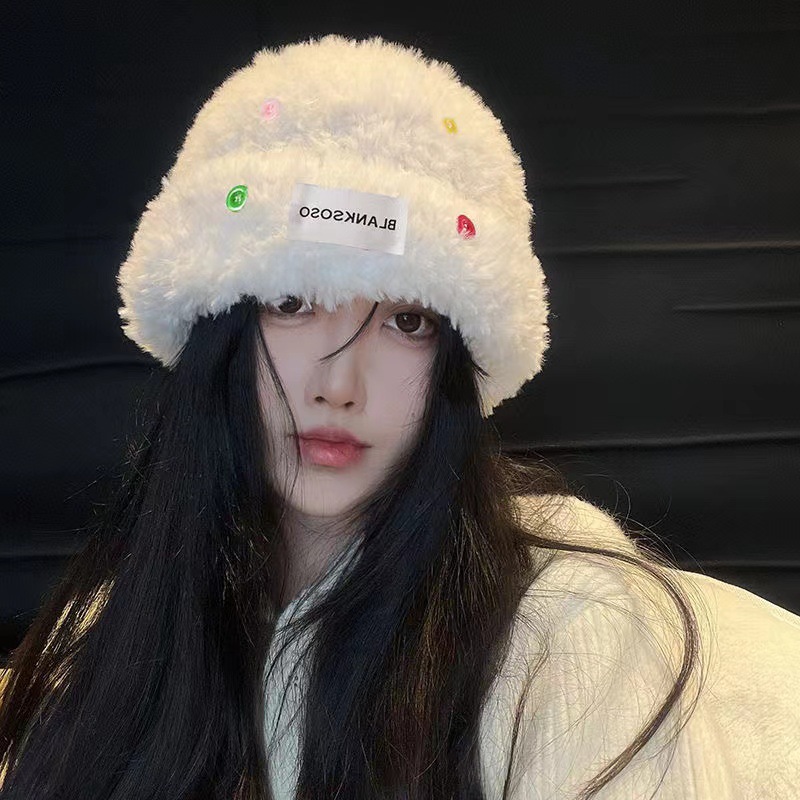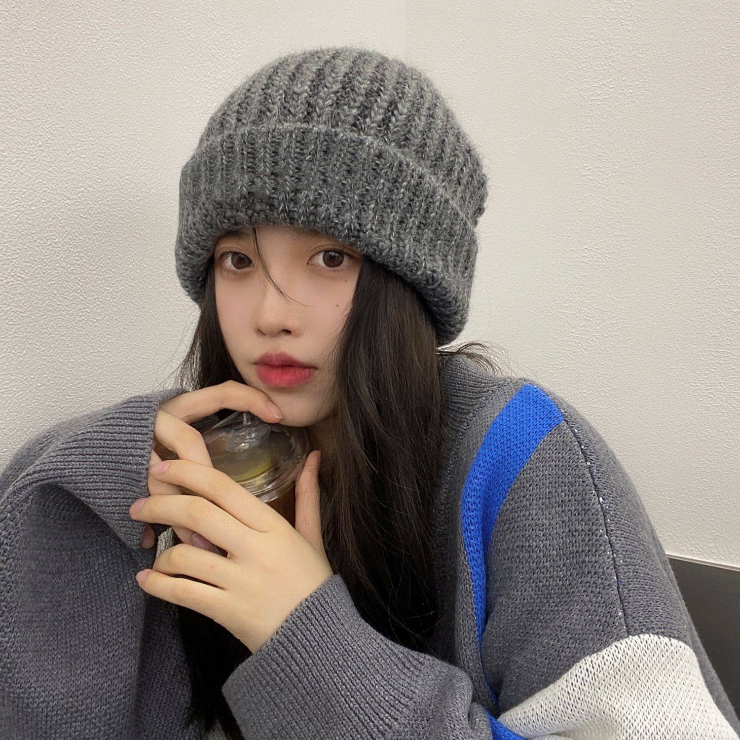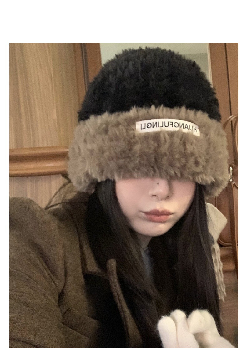 모자 여성 가을, 겨울 한국어 버전 귀여운 플러시 모자 플러스 벨벳 두꺼운 풀오버 니트 모자 따뜻한 귀 보호 모직 모자스토어 가기