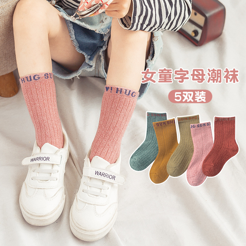 소년 양말 2022 가을과 겨울 새 편지 어린이 튜브 양말 빗질면 소년과 소녀 학생 양말 제조 업체 도매스토어 가기