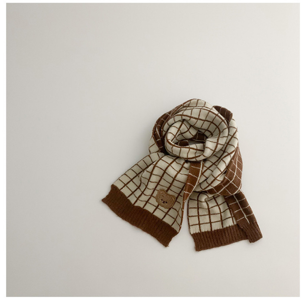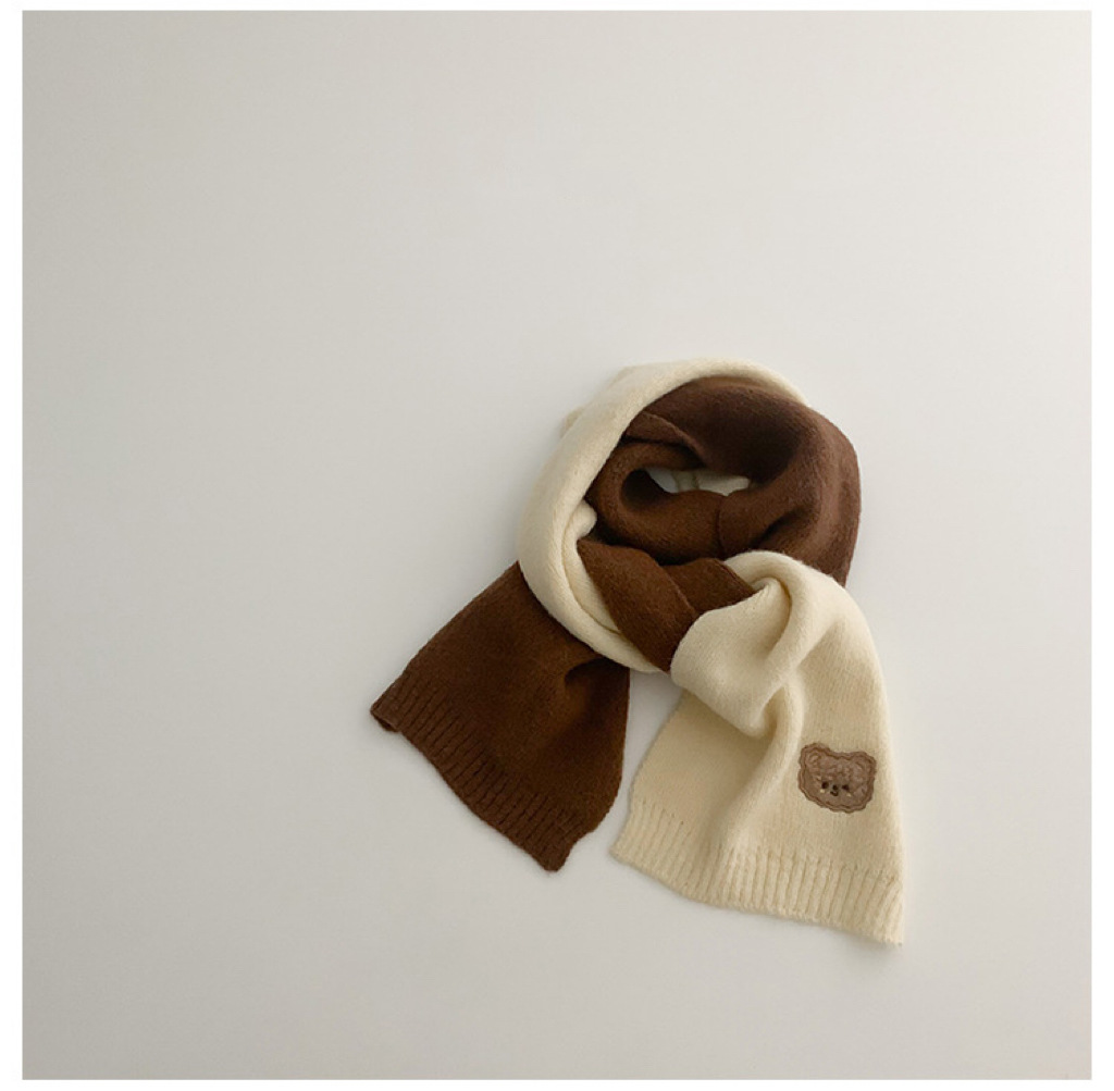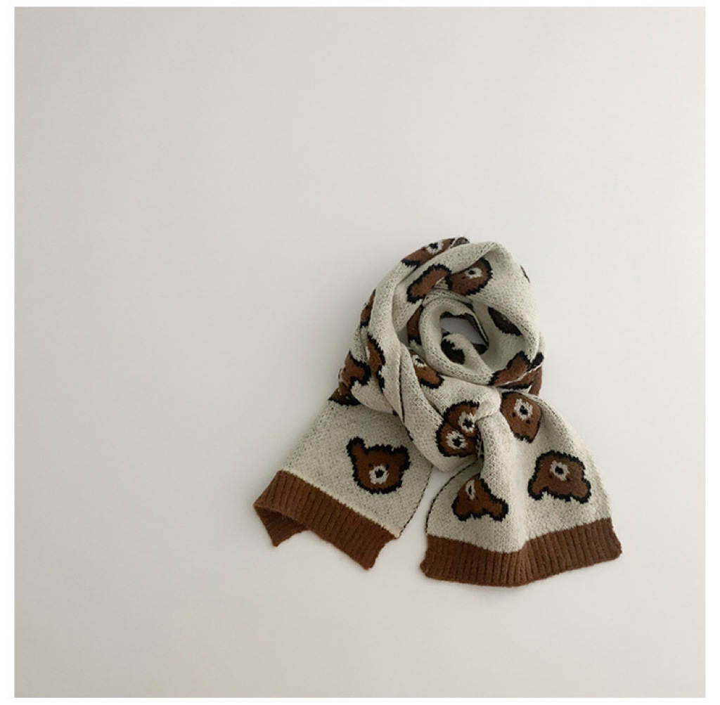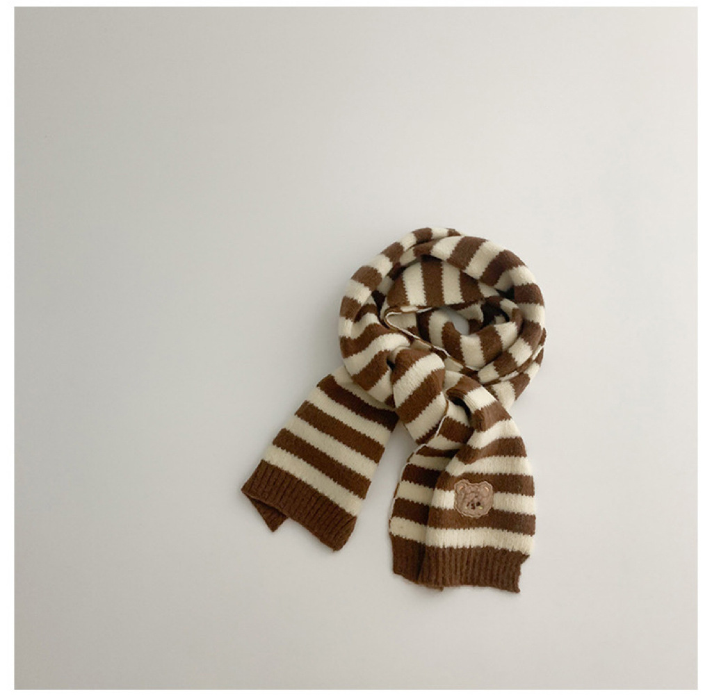 한국 스타일 어린이 스카프 겨울 슈퍼 귀여운 줄무늬 곰 아기 소년과 소녀 양모 스카프 아기 따뜻한 목 소매