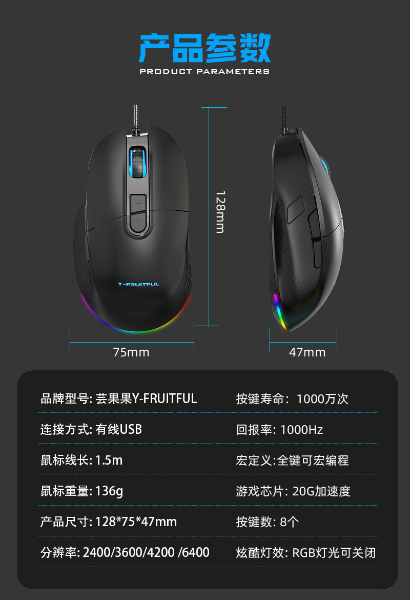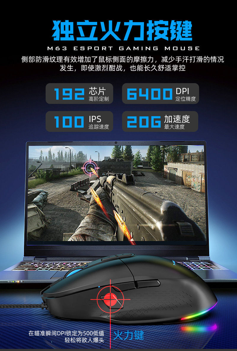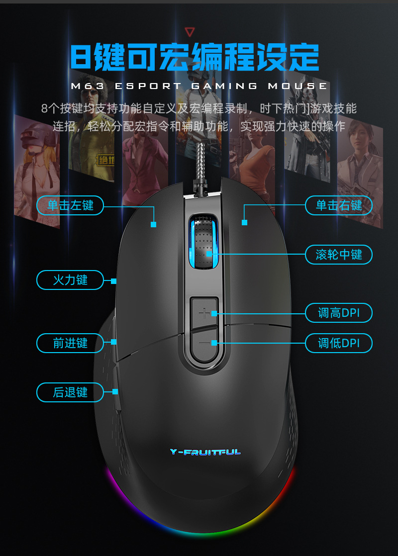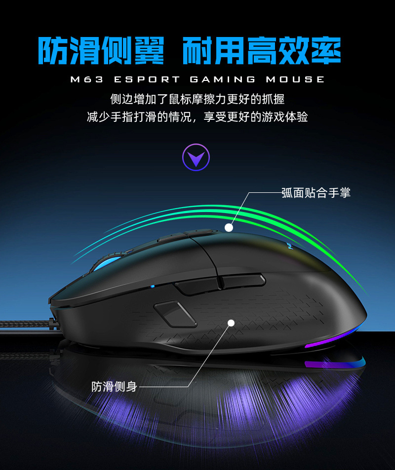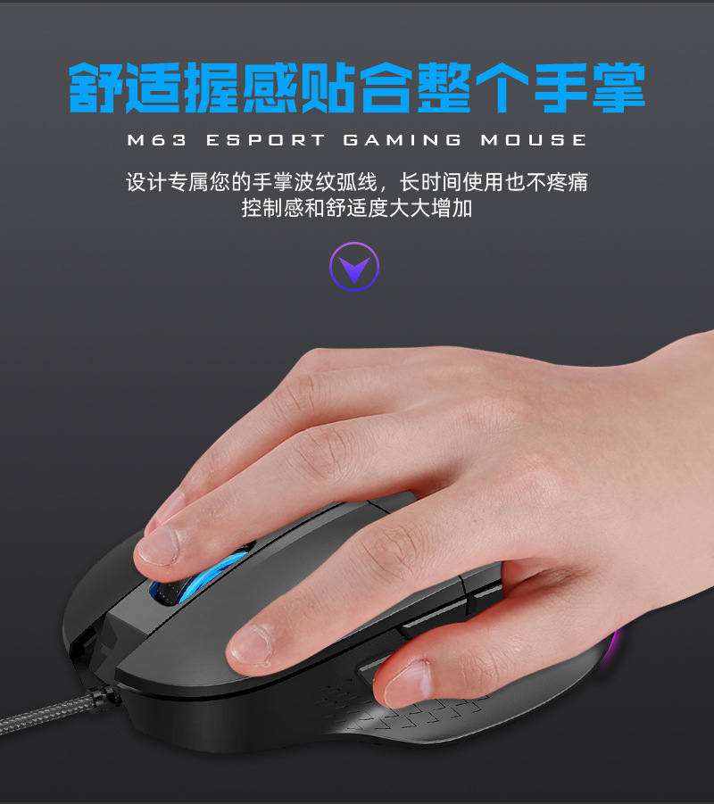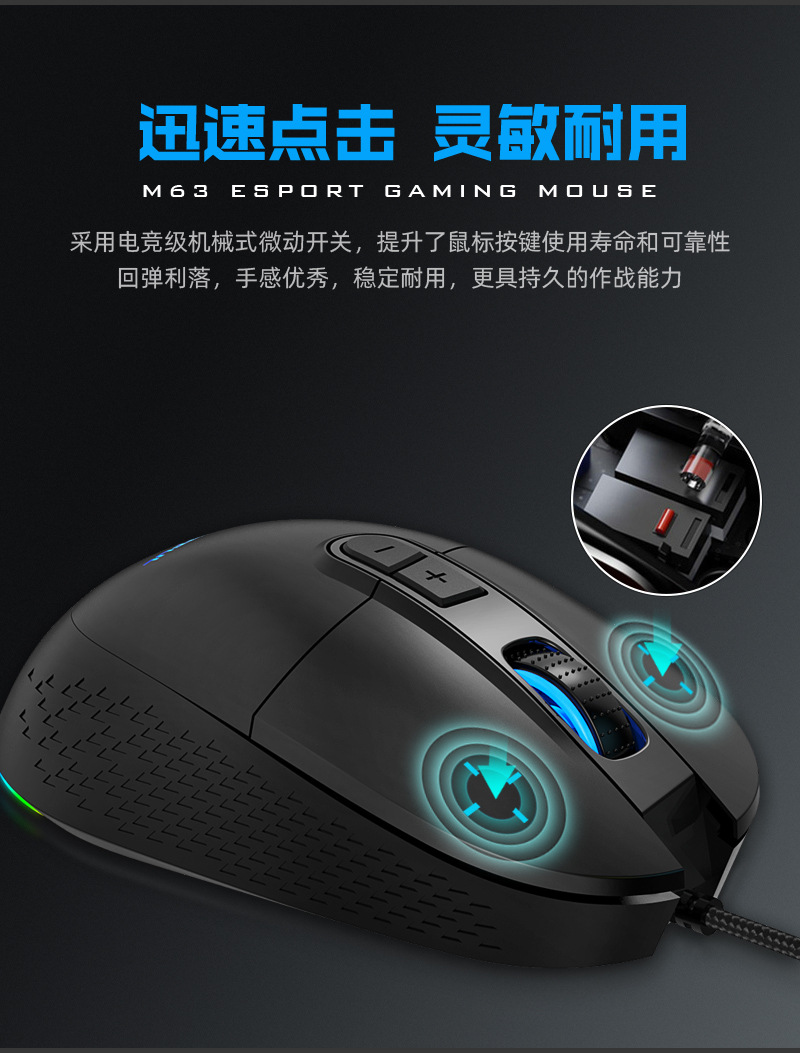 M63 게임용 마우스 RGB 사용자 정의 매크로 마우스 usb 유선 마우스 컴퓨터 사무실 노트북 크로스 보더스토어 가기