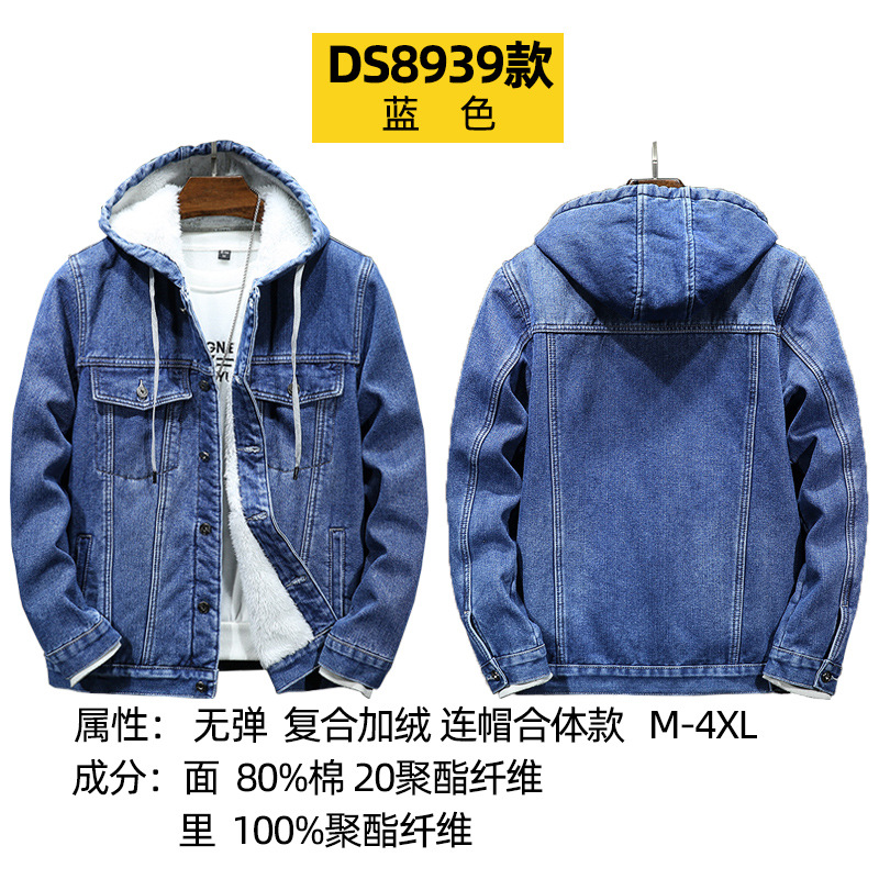 젊은 남성을 위한 새로운 두꺼운 따뜻한 남성 재킷 겨울 모조 셰르파 원피스 후드 벨벳 데님 재킷스토어 가기