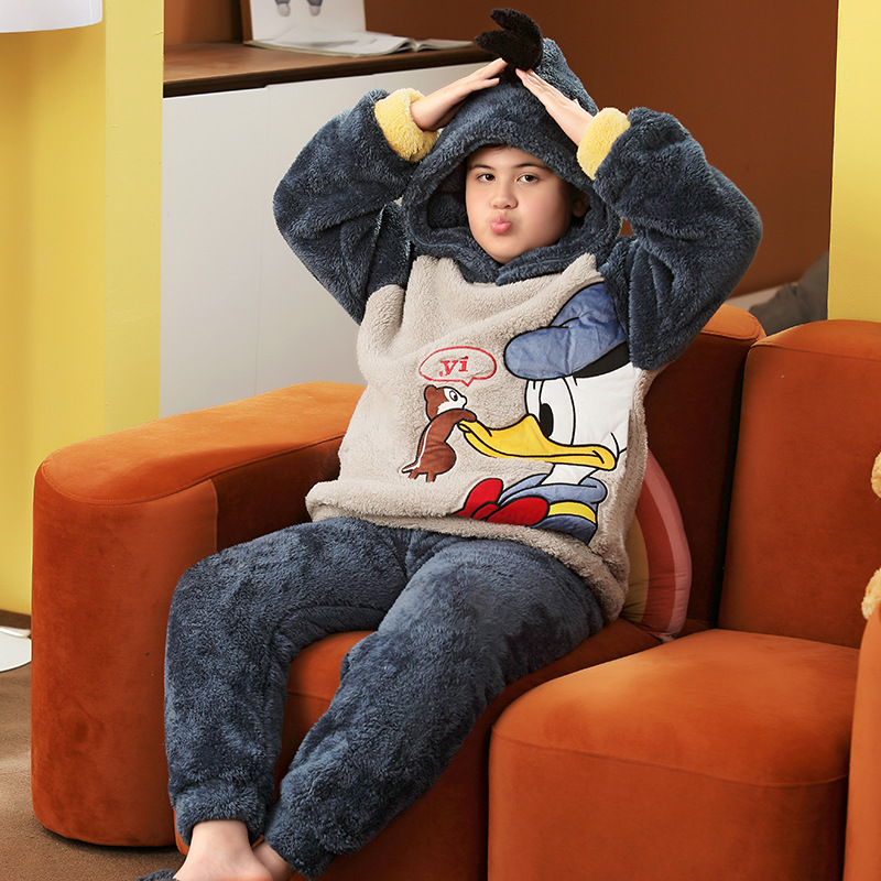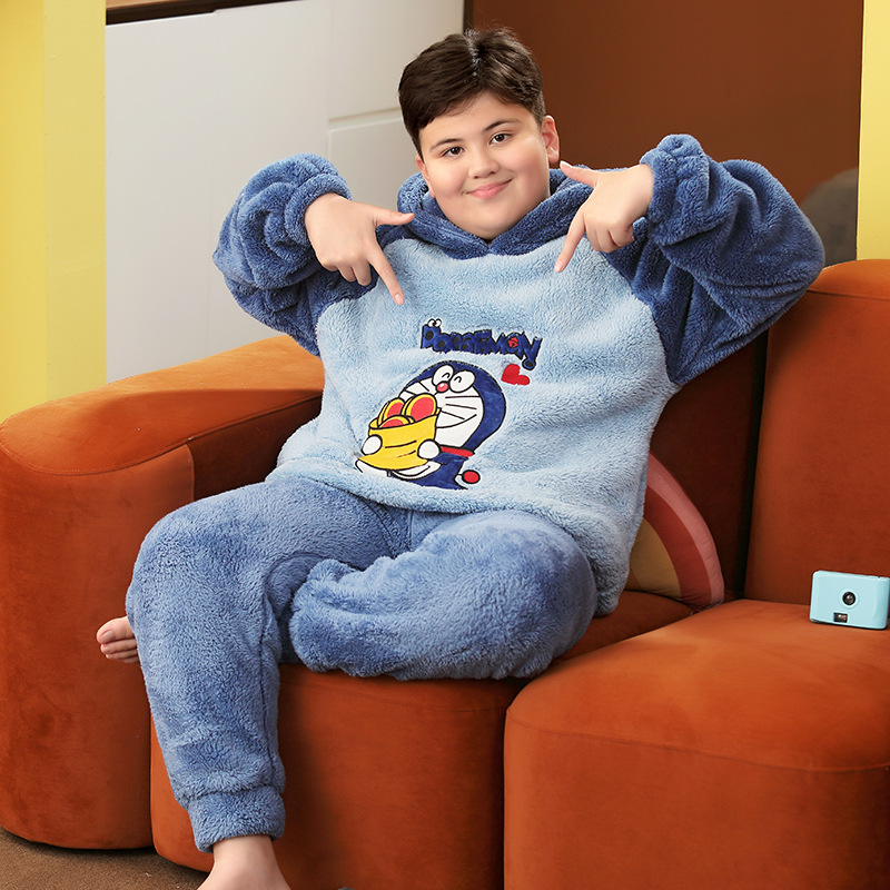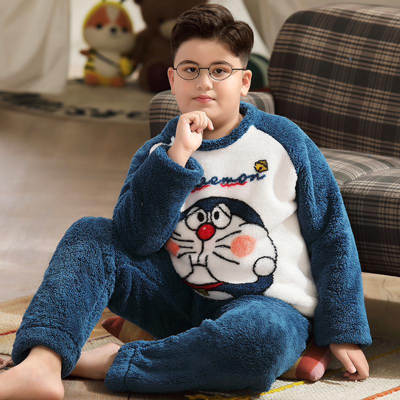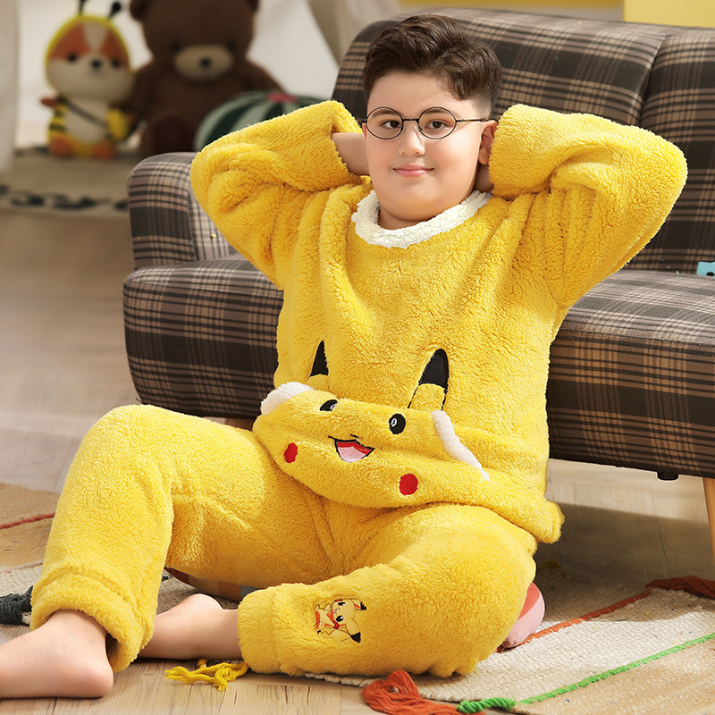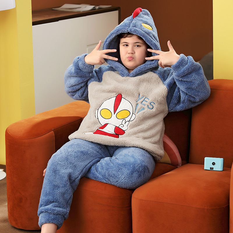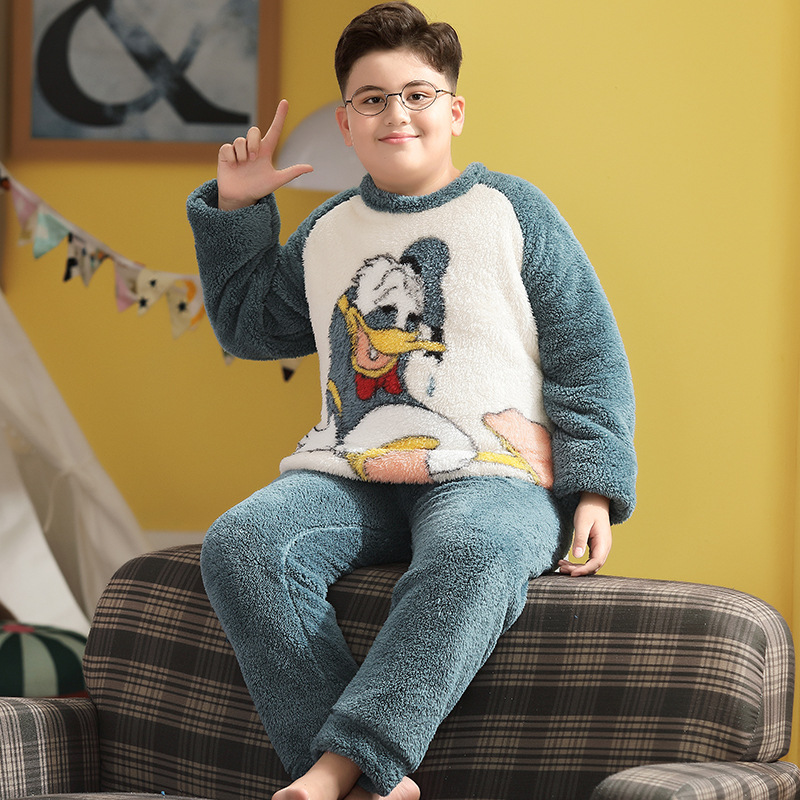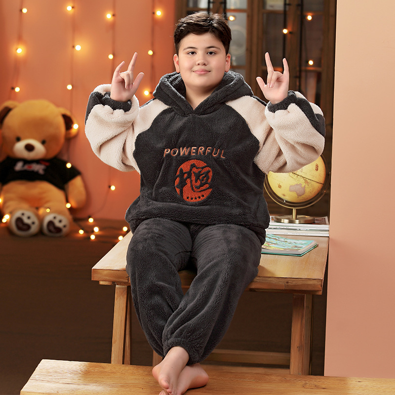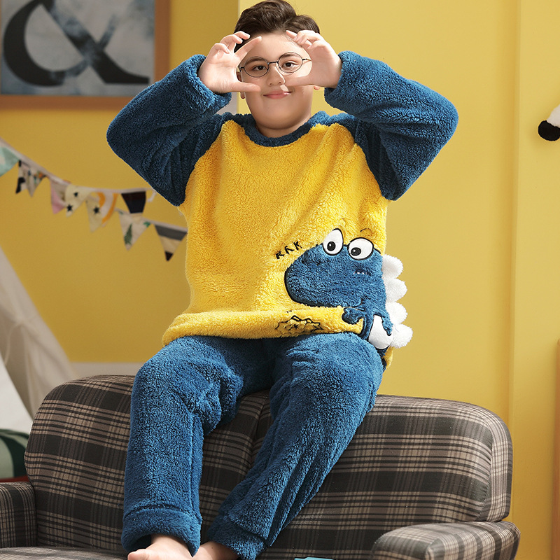 가을과 겨울에 소년을위한 뚱뚱한 아이들의 플란넬 잠옷 특대 두꺼운 산호 양털 가정 옷 세트