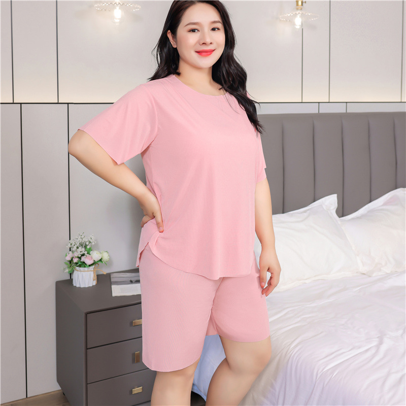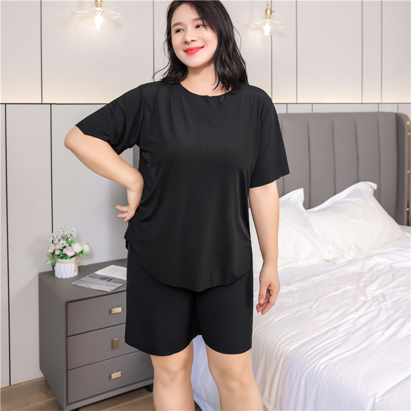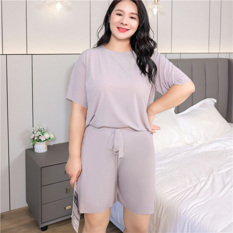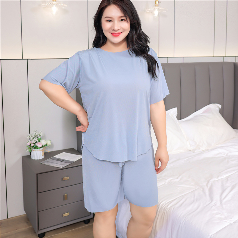 여성을위한 여름 대형 얼음 실크 정장 100kg 지방 mm 느슨한 가정 의류 플러스 지방 확대 캐주얼 반팔 정장 잠옷