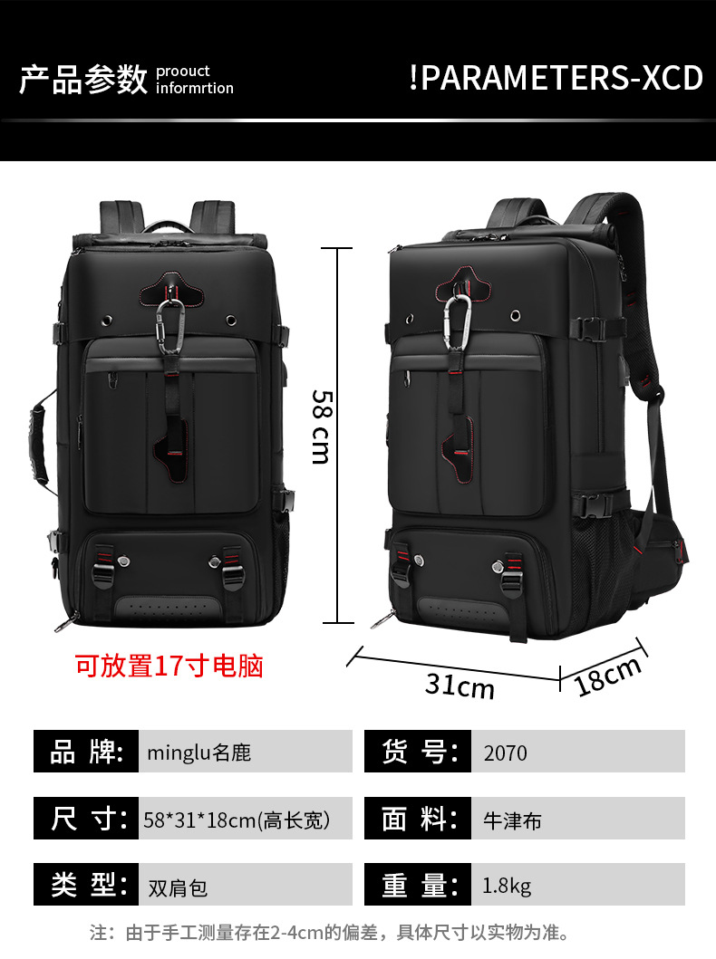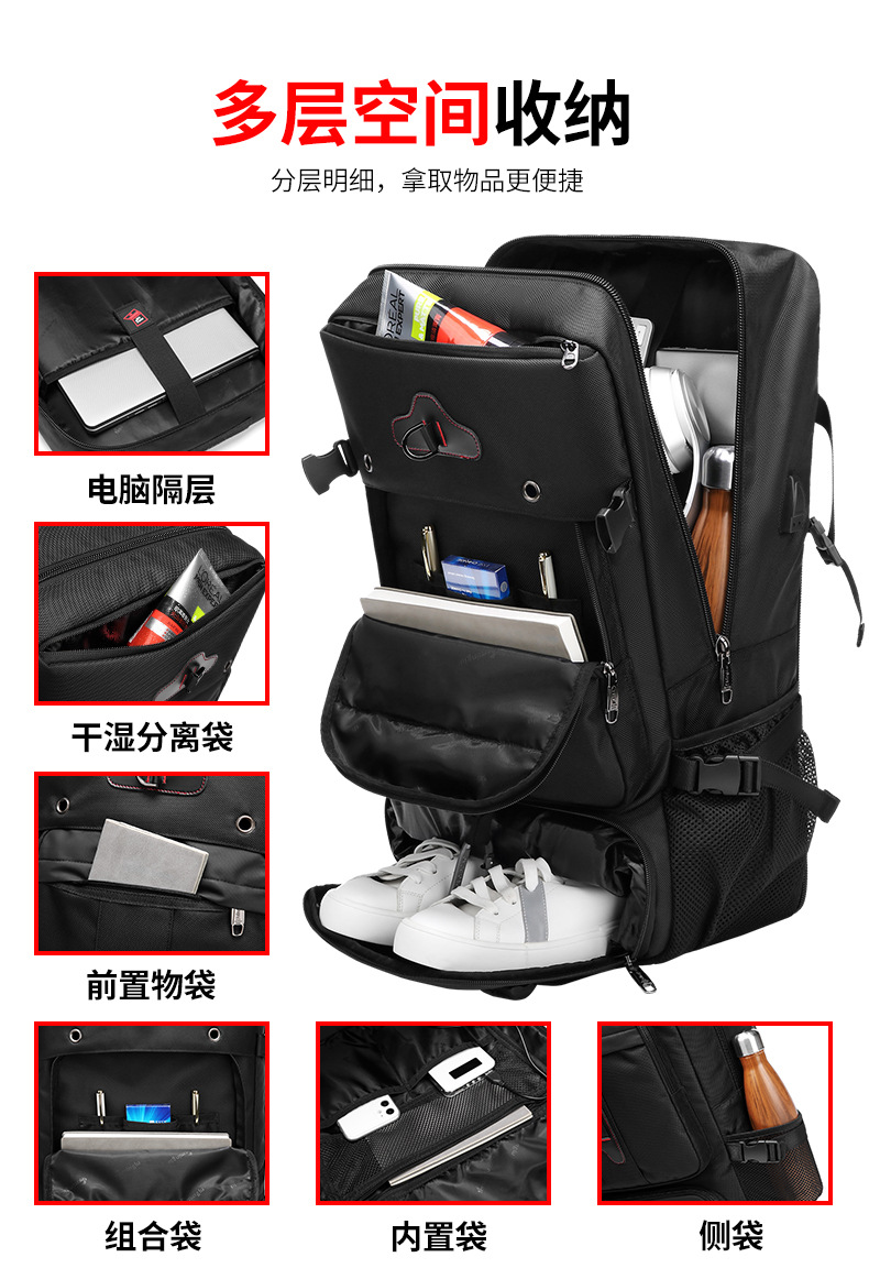여행 가방 남성용 대용량 건식 및 습식 분리 배낭 다기능 방수 배낭 수하물 가방 야외 등산 가방