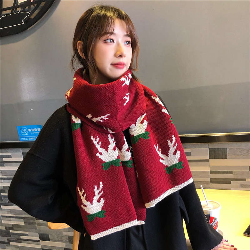 크리스마스 새끼 사슴 엘크 울 니트 스카프 여성용 가을과 겨울 학생 겨울 모든 매치 스카프 한국 스타일 부드러운 소녀의 숄