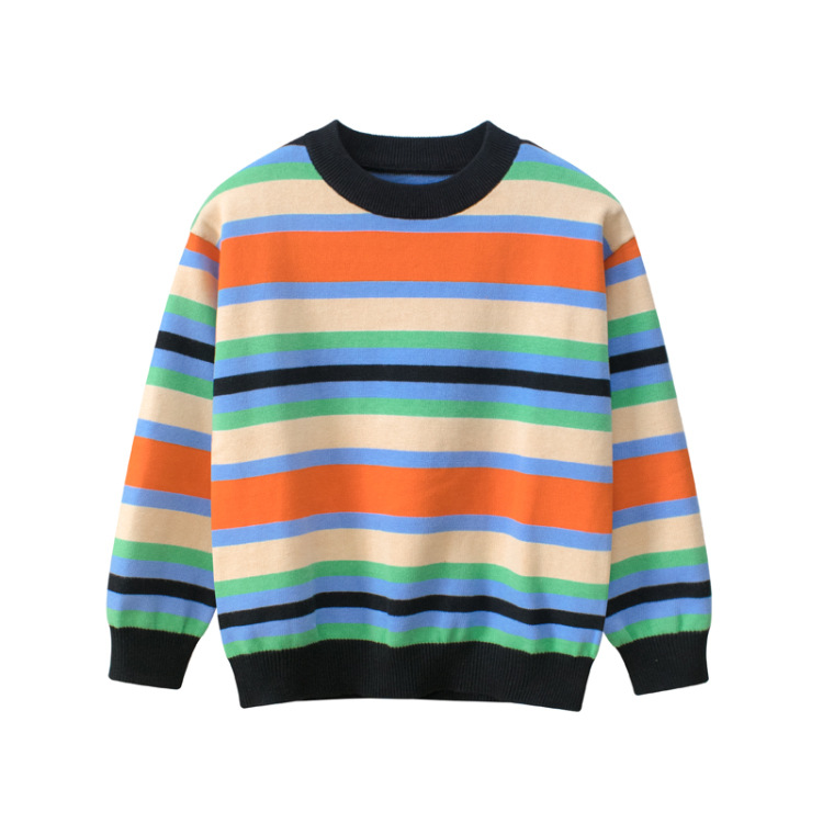 GRRR 브랜드 아동복 가을 겨울 신상품 2024 중대형 아동 스트라이프 니트 스웨터 남아용 원피스 도매스토어 가기