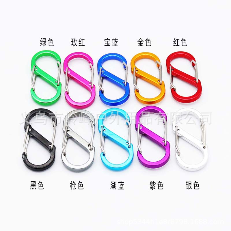 5号S型登山扣 钢丝弹簧扣 户外背包挂钩 铝合金8字扣钥匙扣批发