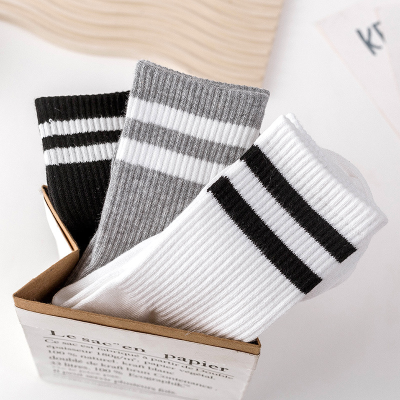 한국 스타일 흑백 스타킹 커플 스트라이프 바 하이탑 양말 남성 및 여성 스포츠 양말 개인 스케이트 보드 유행 양말