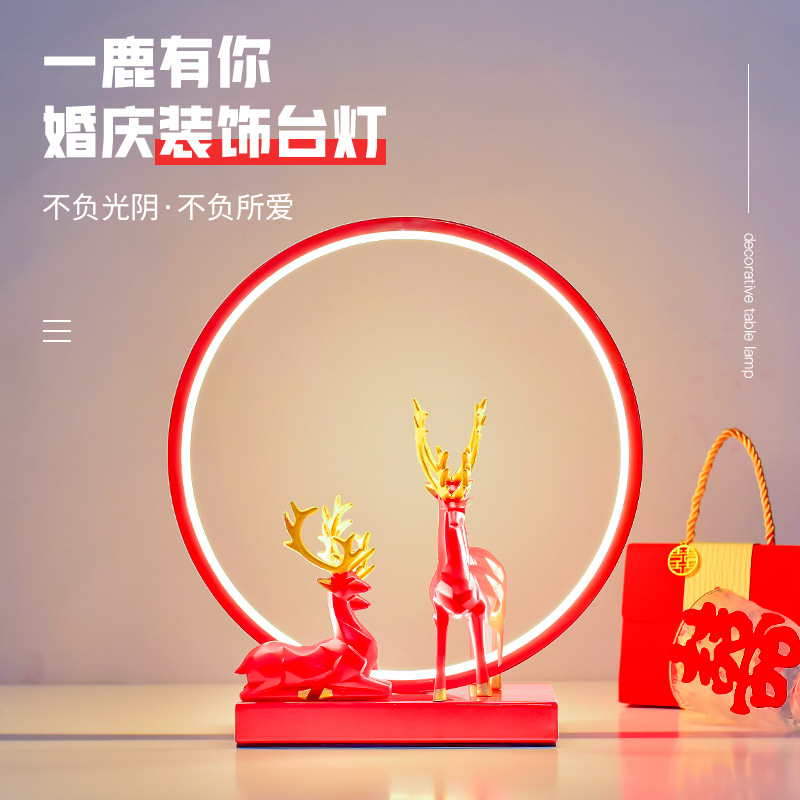 사슴 한 마리가 당신에게 결혼식 레드 Everbright 램프 웨딩 침실 머리맡 축제 테이블 램프 웨딩 룸 신부 지참금 램프스토어 가기