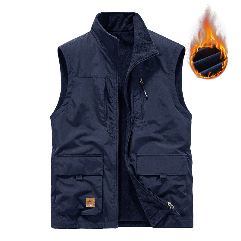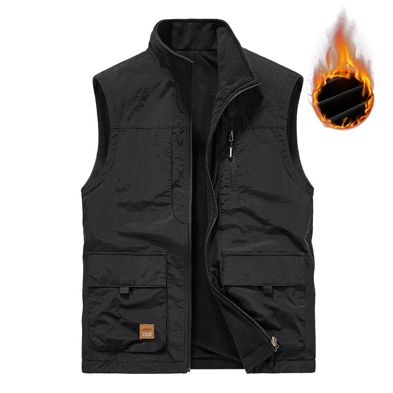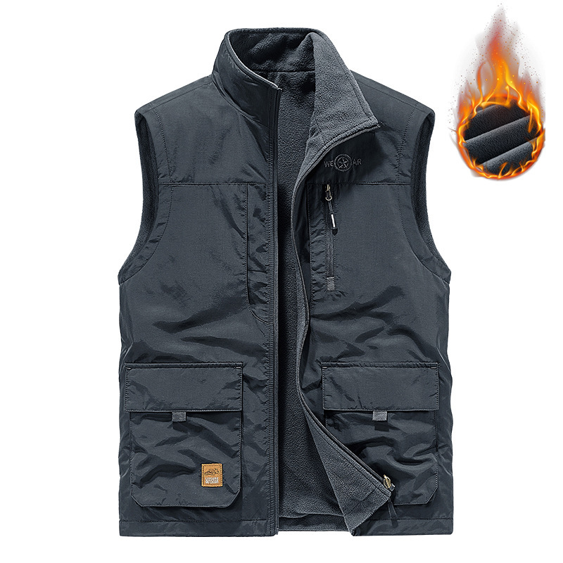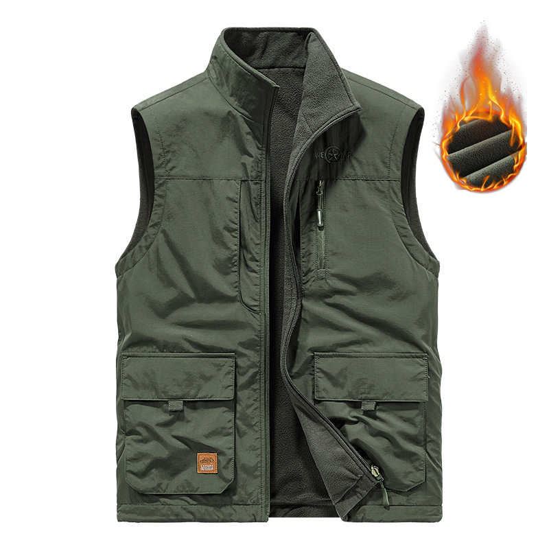 새로운 남성 캐주얼 기모 양면 양복 조끼 가을과 겨울 멀티 백 사진 조끼 야외 양복 조끼 따뜻한 코트스토어 가기