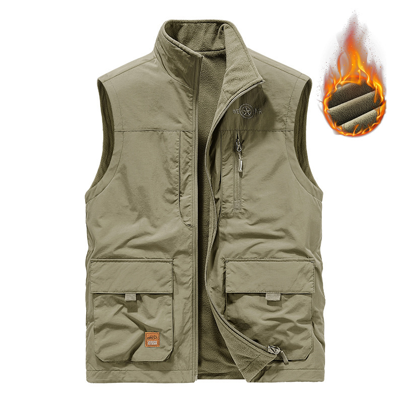 새로운 남성 캐주얼 기모 양면 양복 조끼 가을과 겨울 멀티 백 사진 조끼 야외 양복 조끼 따뜻한 코트