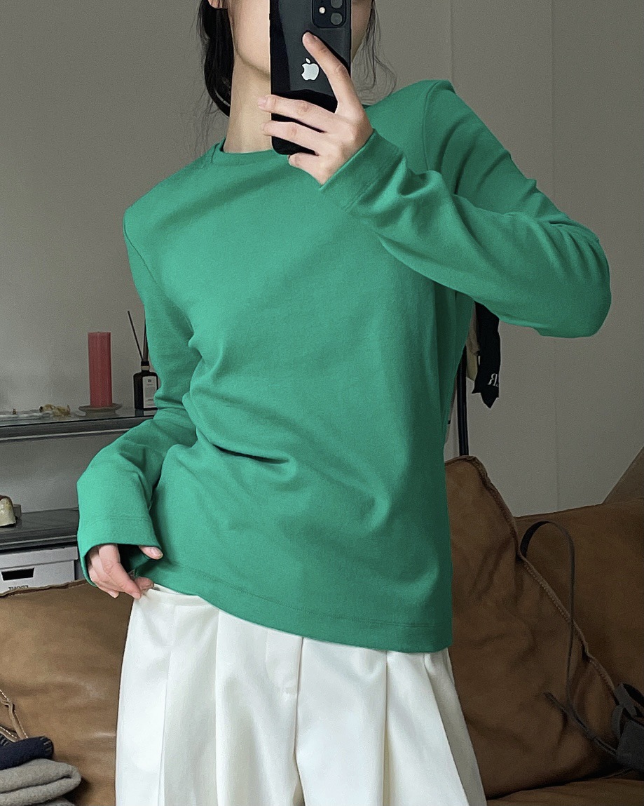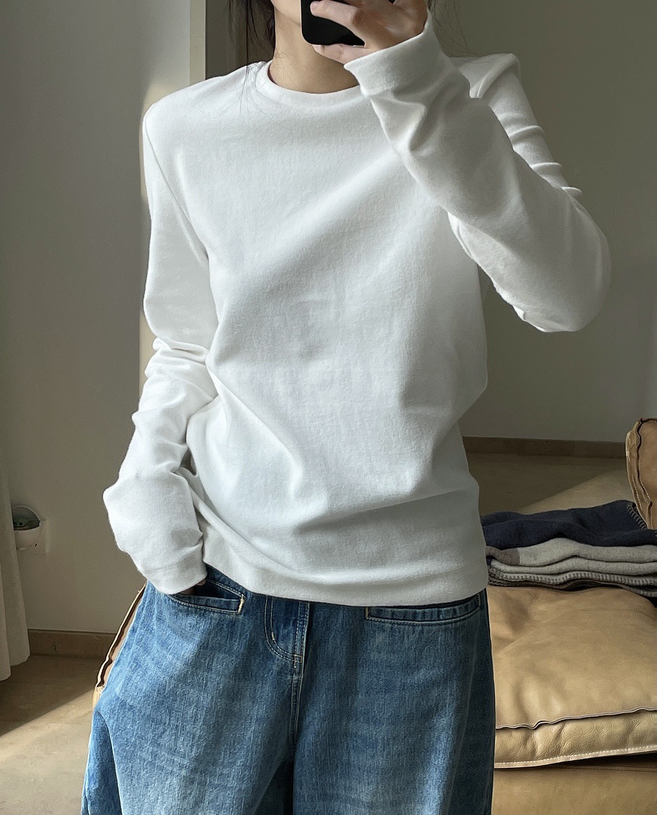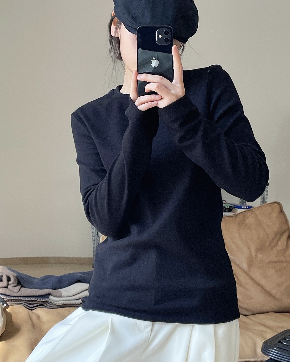 "개인 스타일" 가을과 겨울 새로운 심플 베이직 라운드 넥 티셔츠 여성용 느슨한 슬리밍 소프트 내부 재킷스토어 가기