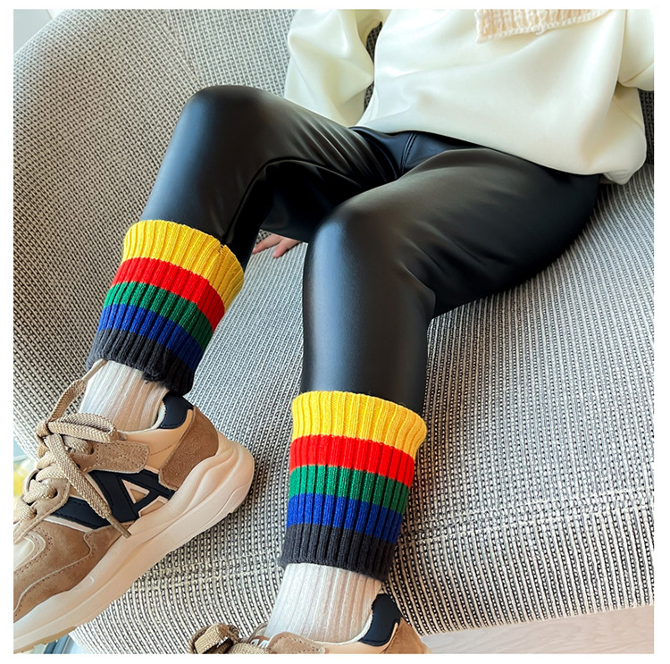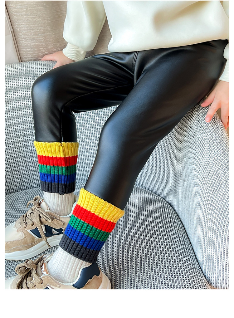 Niufan 여아 기모 두꺼운 가죽 바지 겨울 2022 새로운 원피스 벨벳 어린이 여성 레깅스 인터넷 인기 스트리트 팬츠스토어 가기