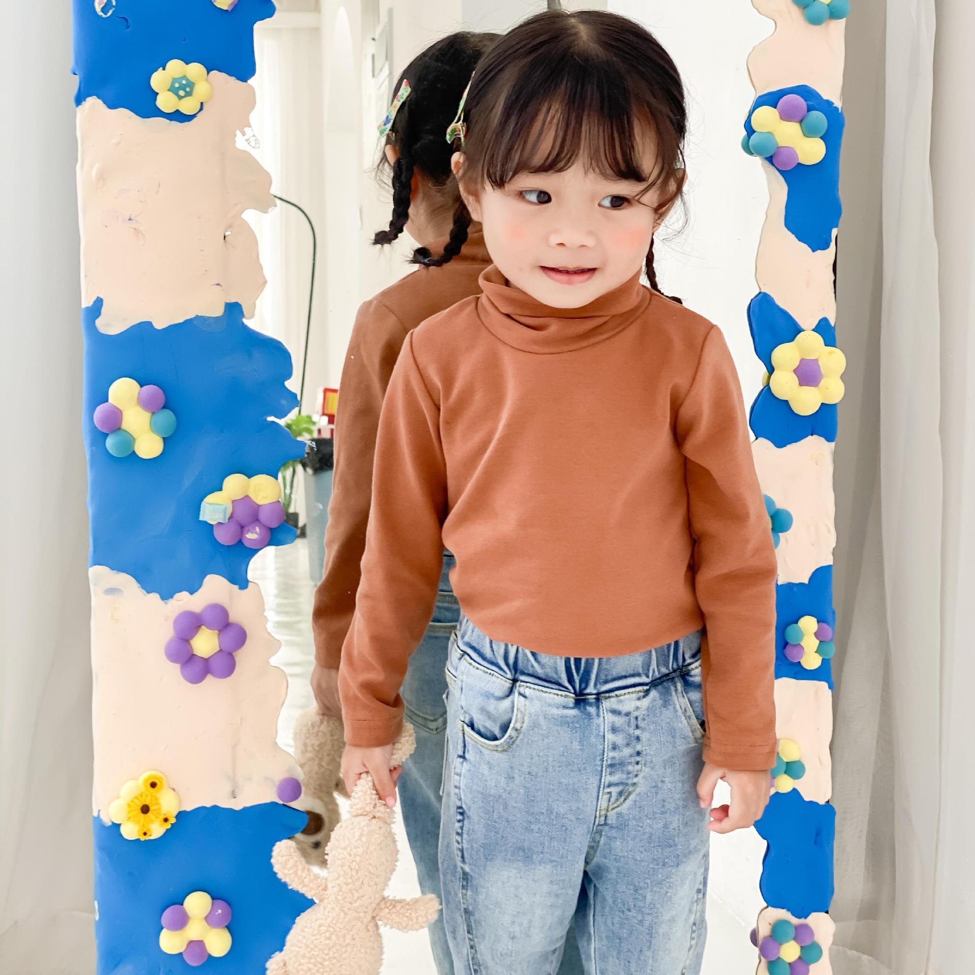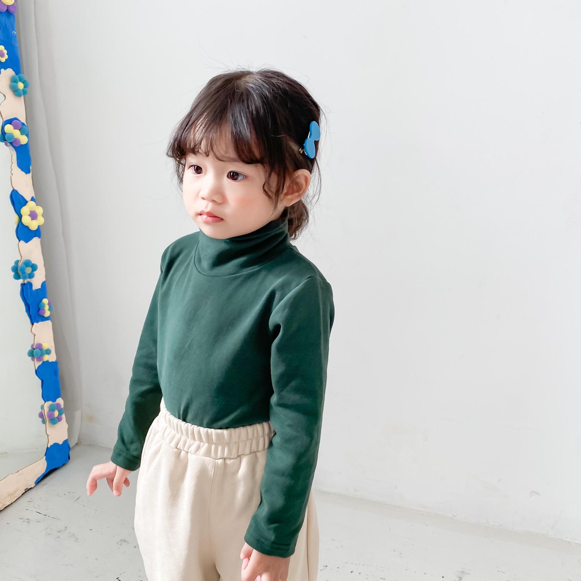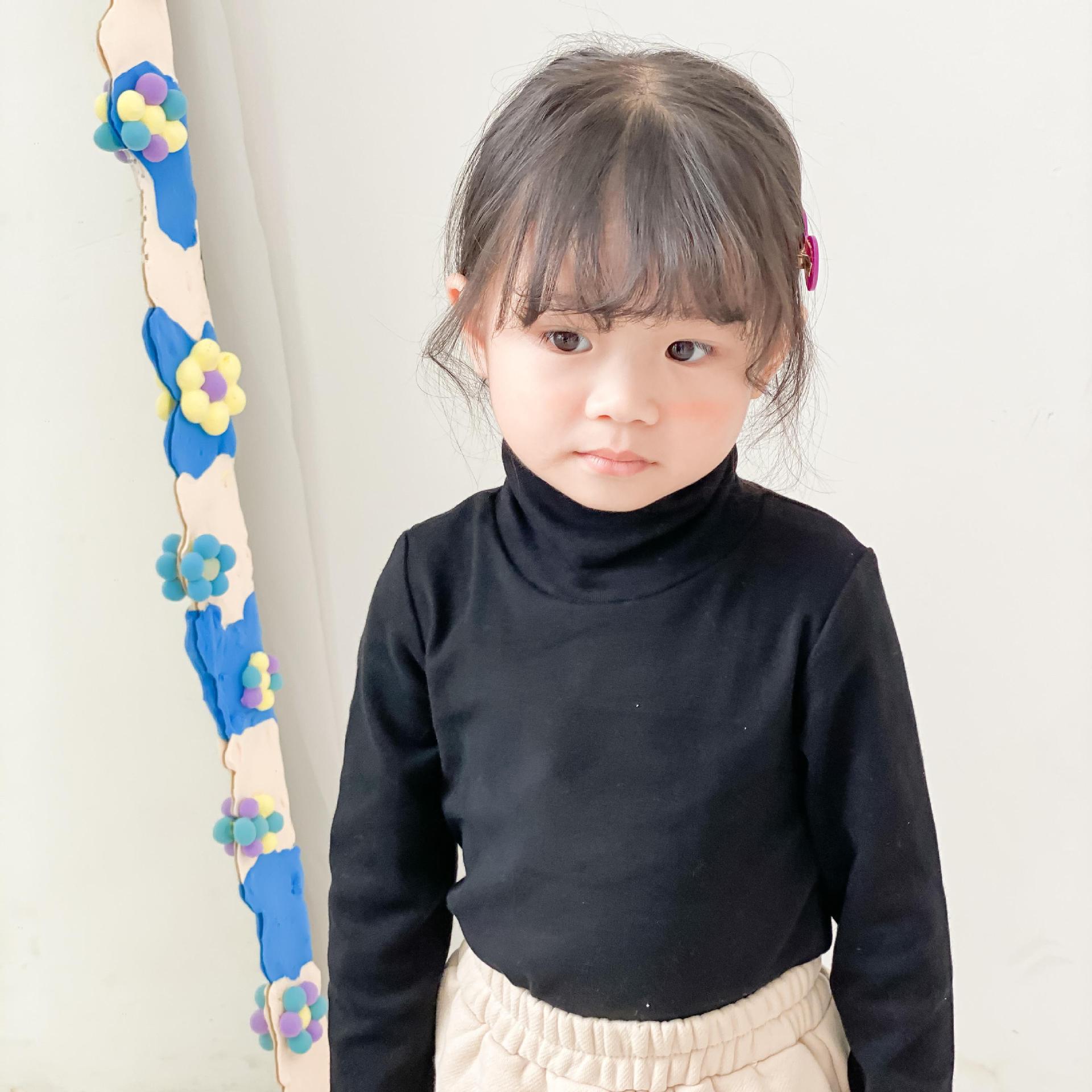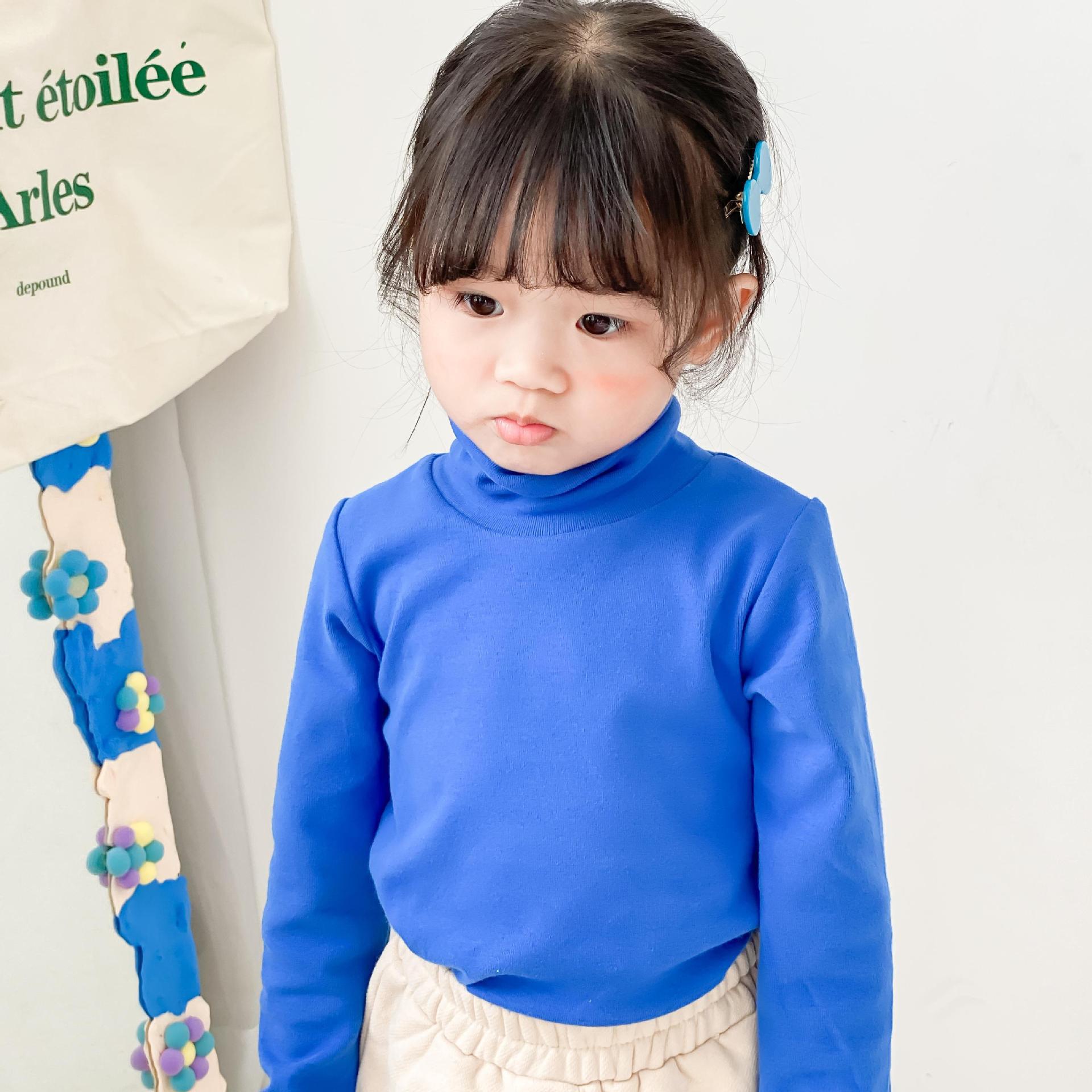 어린이 하이 칼라 베이스 셔츠 가을과 겨울 새로운 소년 소녀 단색 베이스 셔츠 아기의 스트레치 칼라 티셔츠 탑스토어 가기