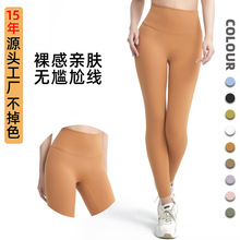 양면 기모 누드 느낌 요가 팬츠 하이웨이스트 힙업 여성용 봄 가을 복숭아힙 속건 타이츠 피트니스 운동복