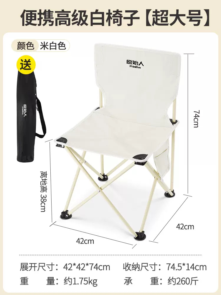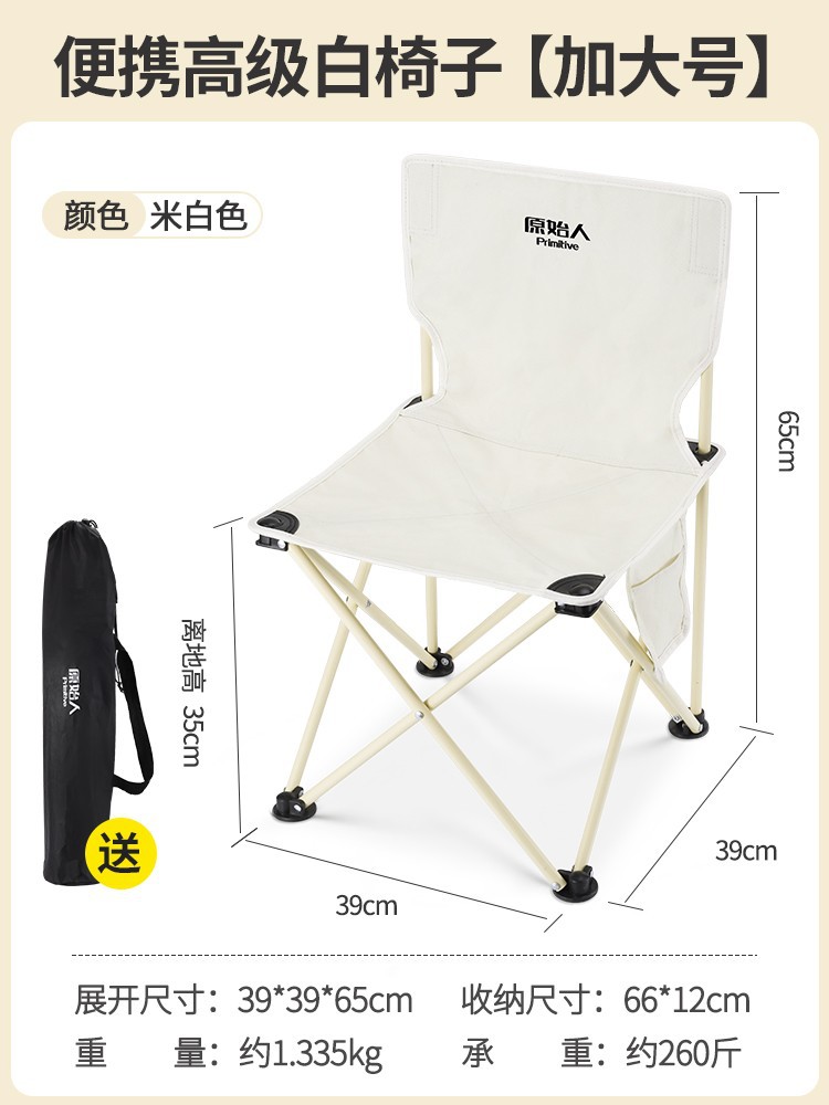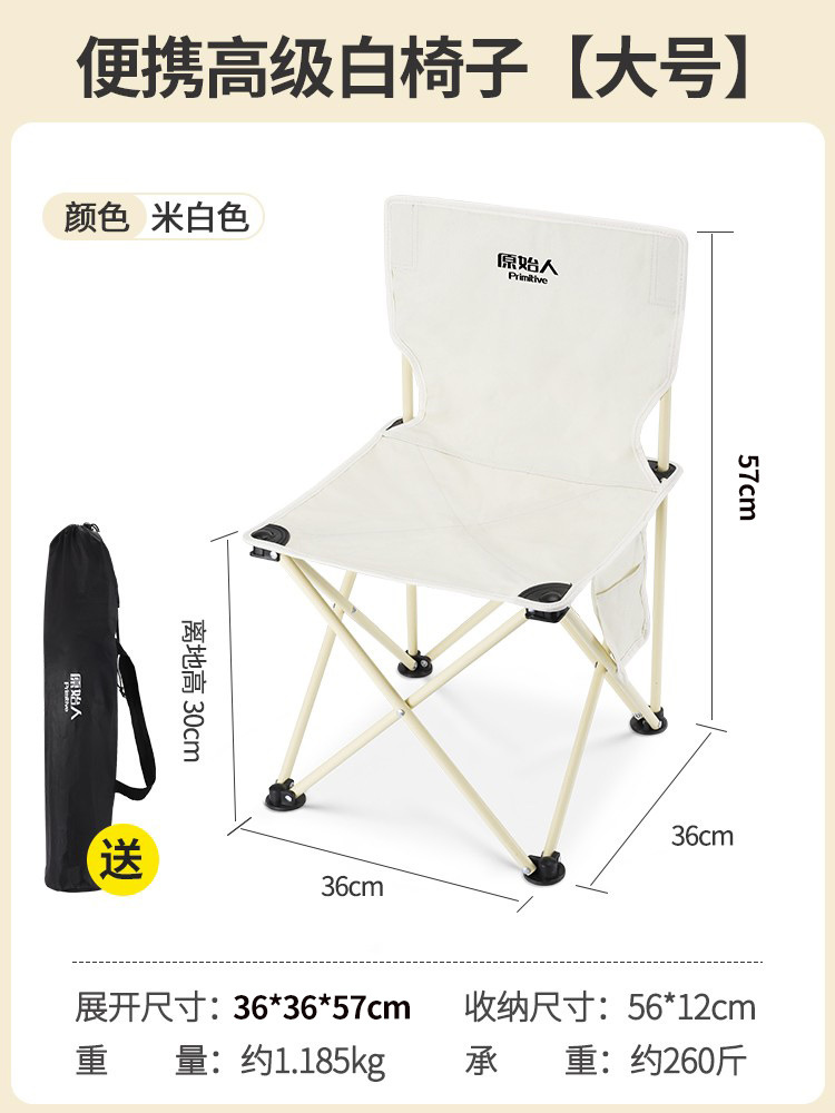 • 대형 쌀 흰색 접이식 의자 [수납 봉투 첨부]