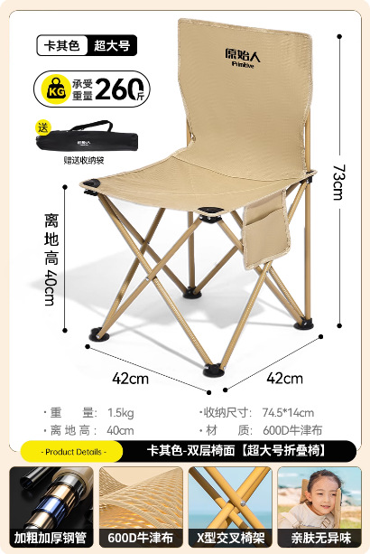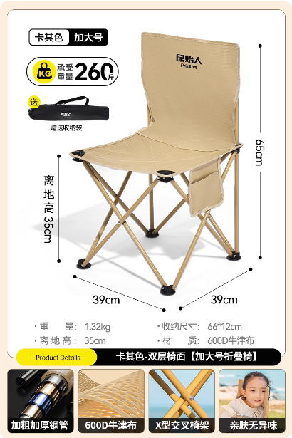 • 대형 카키 접이식 의자 [수납 가방 포함]