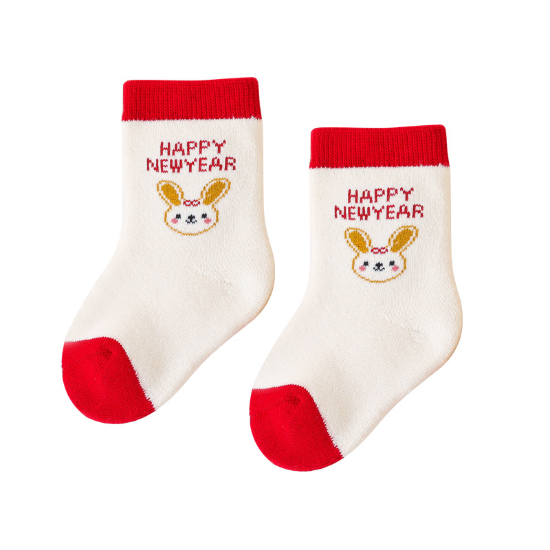 두꺼운 테리 겨울 아기 양말 토끼 새해 양말 100 일 된 아기 양말 빨간 양말 도매