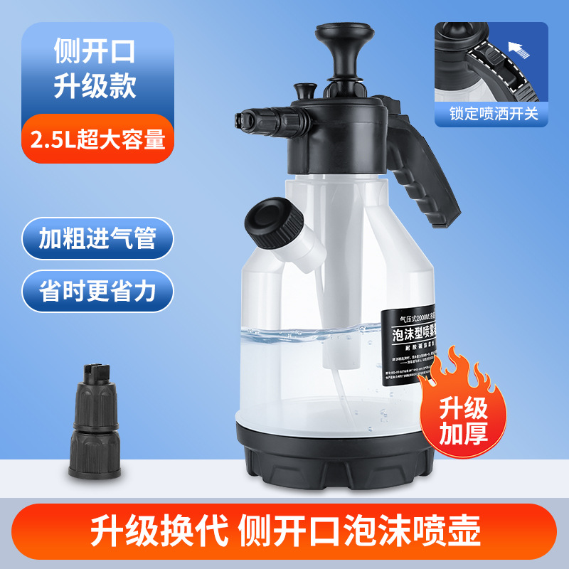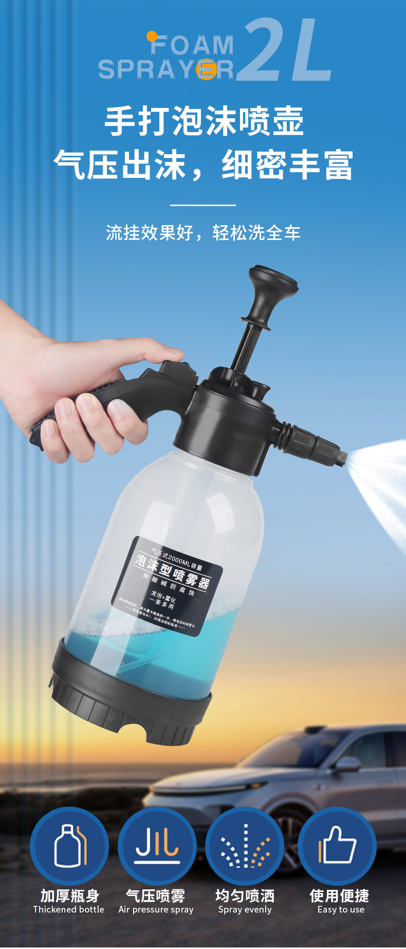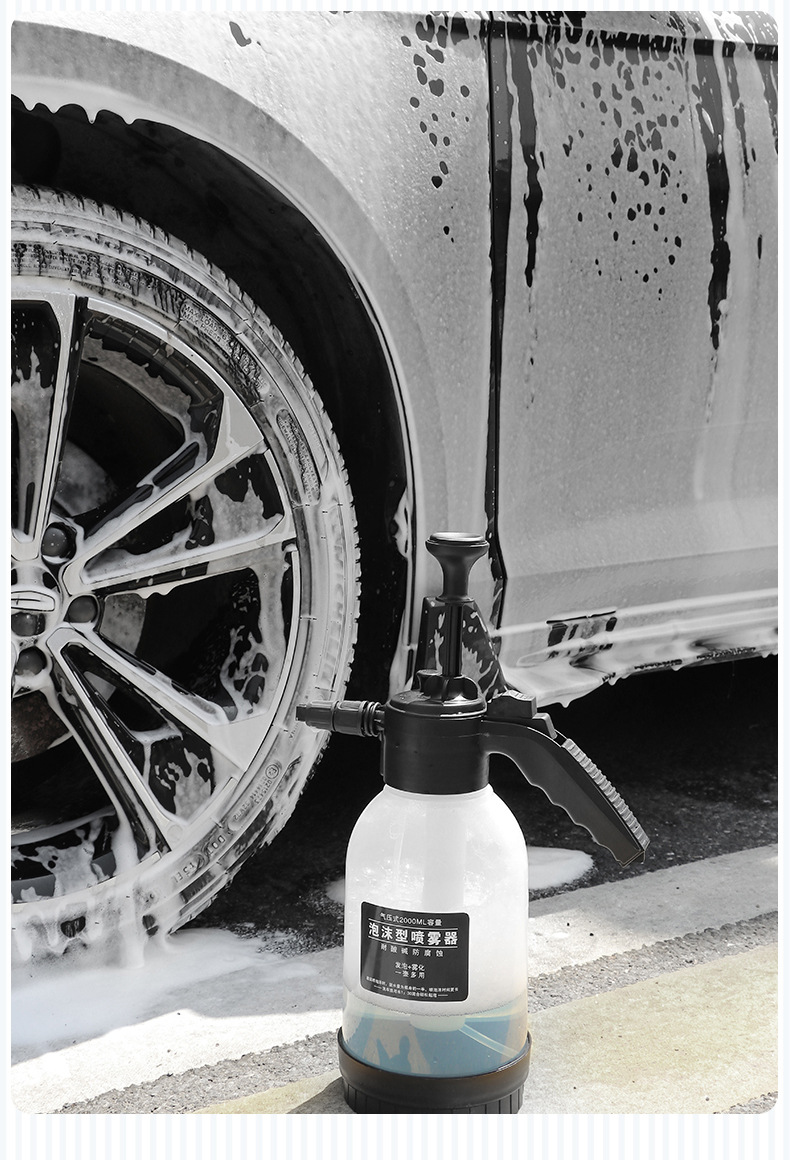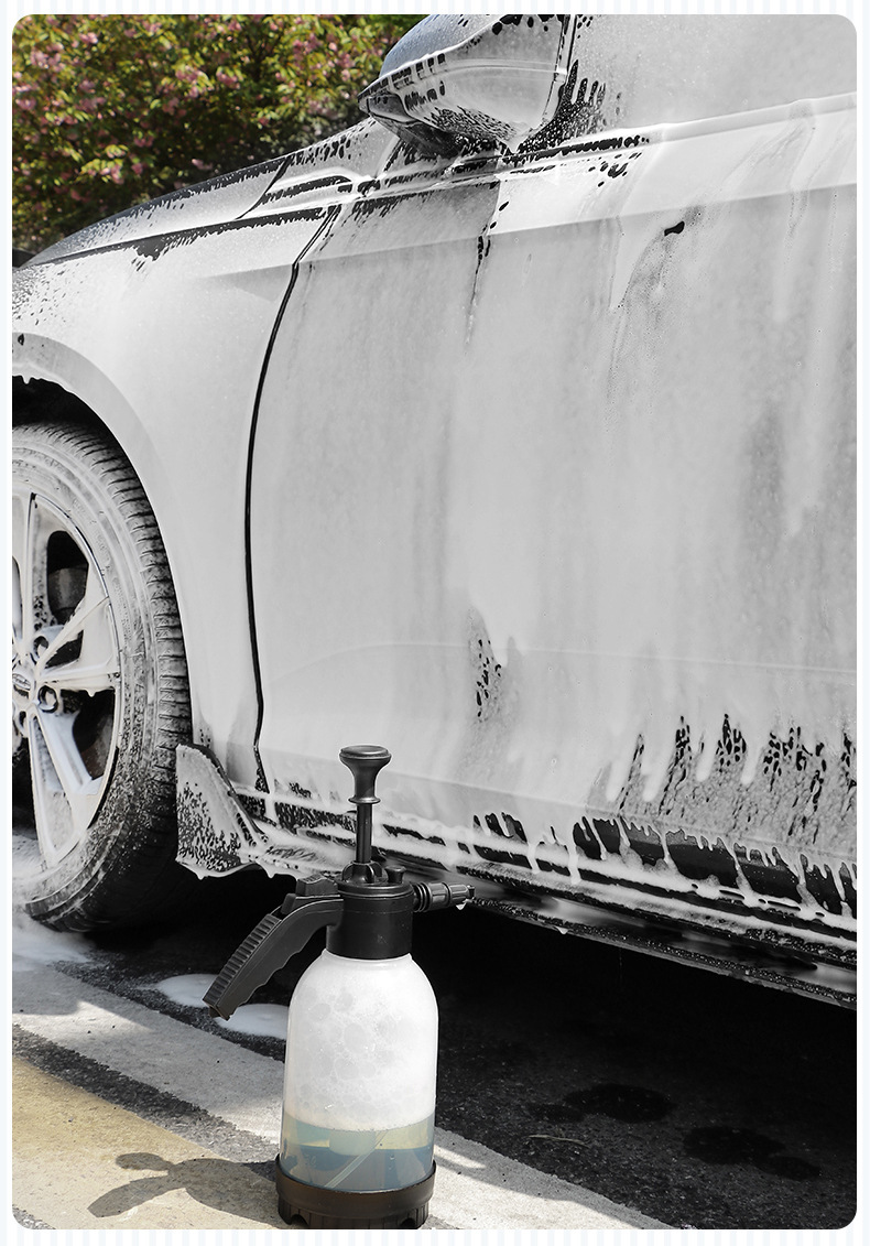 1、泡沫壶壶体有刻度线,加水不能超1.5L,建议加半壶水即可,洗车液和水比列1:30,气泡效果更佳。