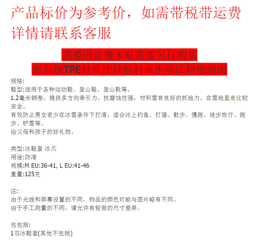 크로스 보더 아이언 체인 미끄럼 방지 신발 커버 TPE Crampon 야외 등산 제품 휴대용 경량 스노우 슈즈 미끄럼 방지 체인스토어 가기