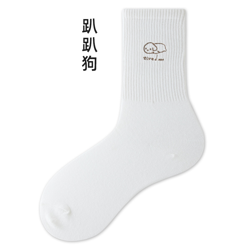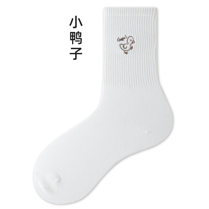 흰 양말 여성 양말 가을과 겨울 말뚝 양말 면화 자수 싱글 바늘 스포츠 양말 Zhuji 제조 업체 도매스토어 가기