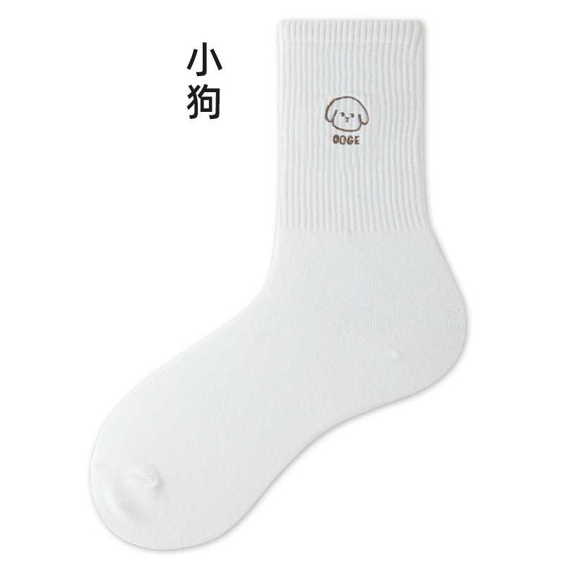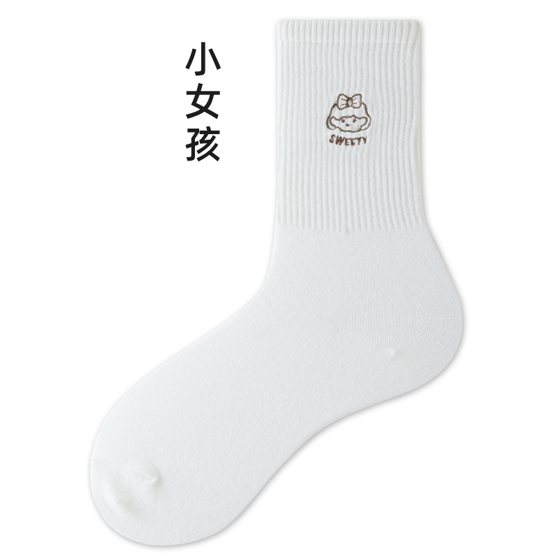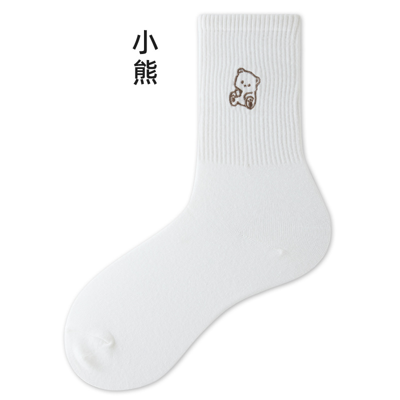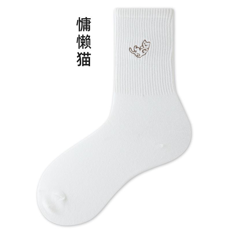 흰 양말 여성 양말 가을과 겨울 말뚝 양말 면화 자수 싱글 바늘 스포츠 양말 Zhuji 제조 업체 도매