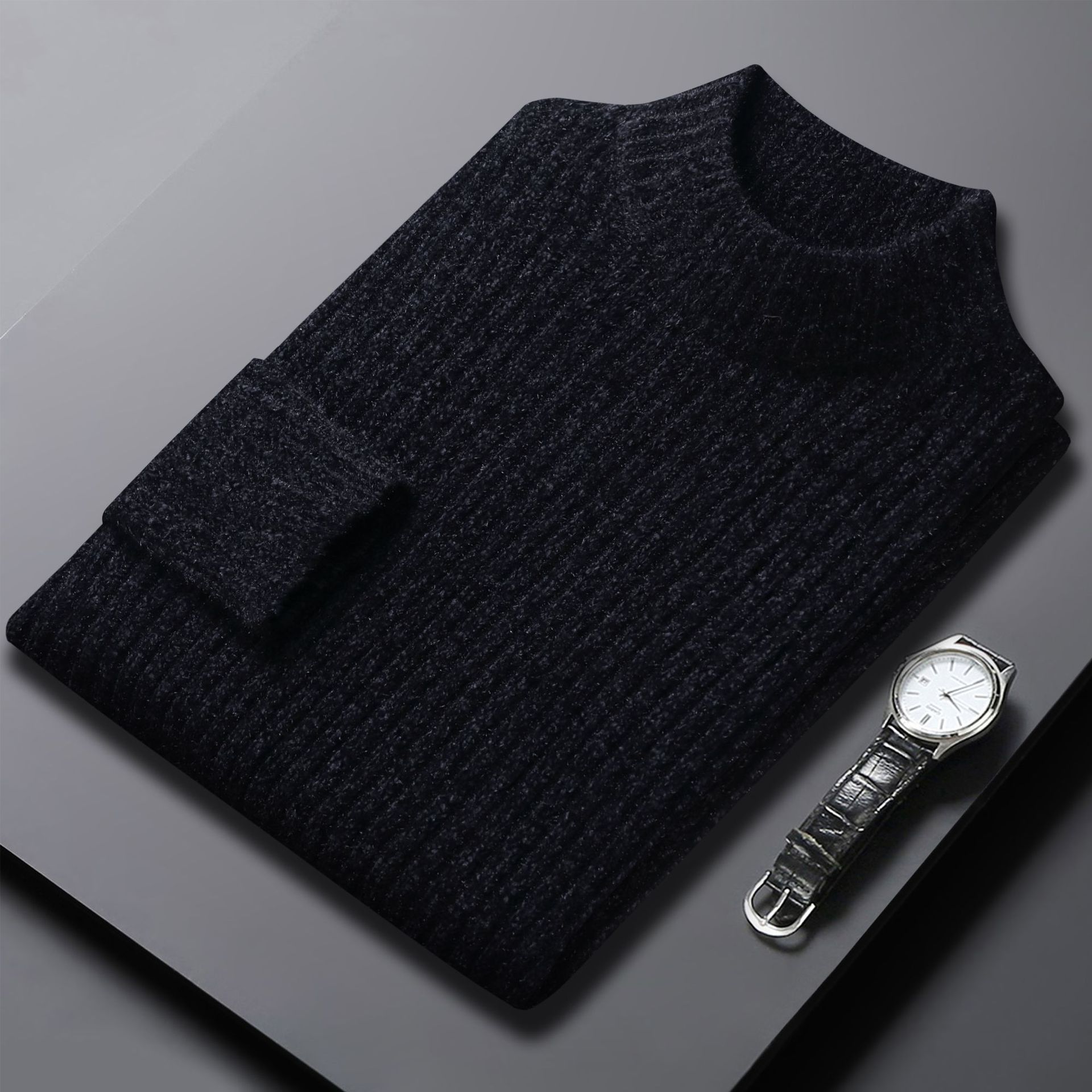 가을과 겨울 니트 두꺼운 바늘 스웨터 중년 및 젊은 남성용 하프 터틀넥 셔닐 실 모조 밍크 따뜻한 탄성 스웨터